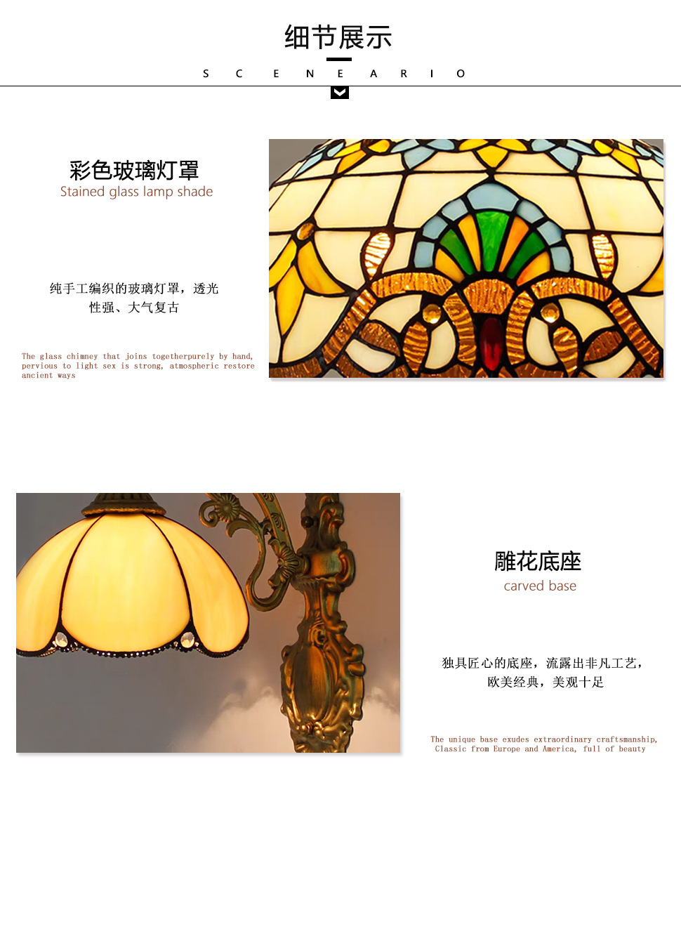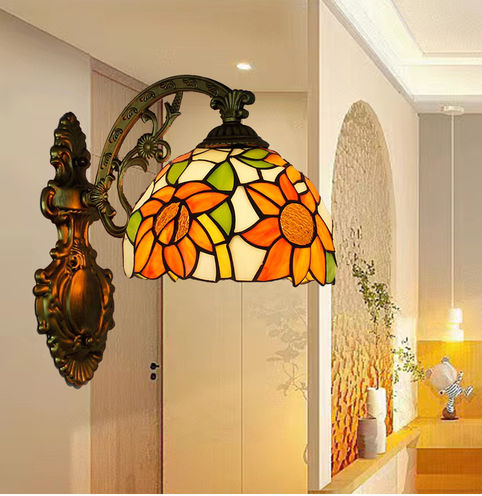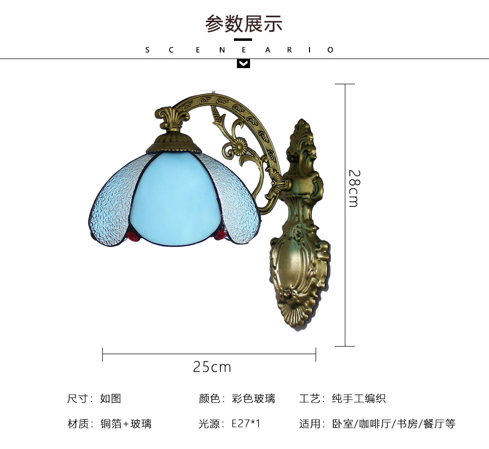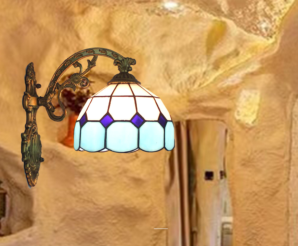 Ouhao Tiffany 유럽 벽 램프 침실 침실 램프 복고풍 창조적 인 거실 다이닝 룸 발코니 통로 계단 램프