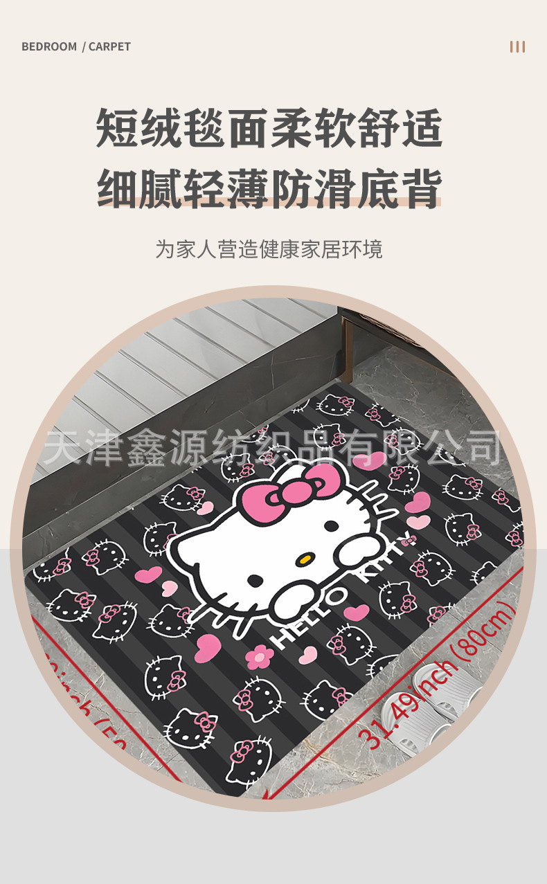 국경 간 크리스탈 벨벳 바닥 매트 헬로 키티 귀여운 흡수성 좋은 발 매트 가정용 먼지 방지 낙하 방지 미끄럼 방지 매트스토어 가기