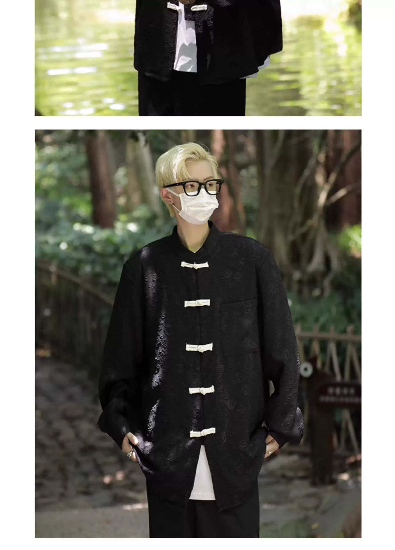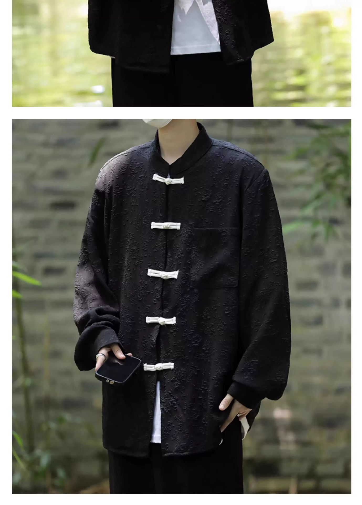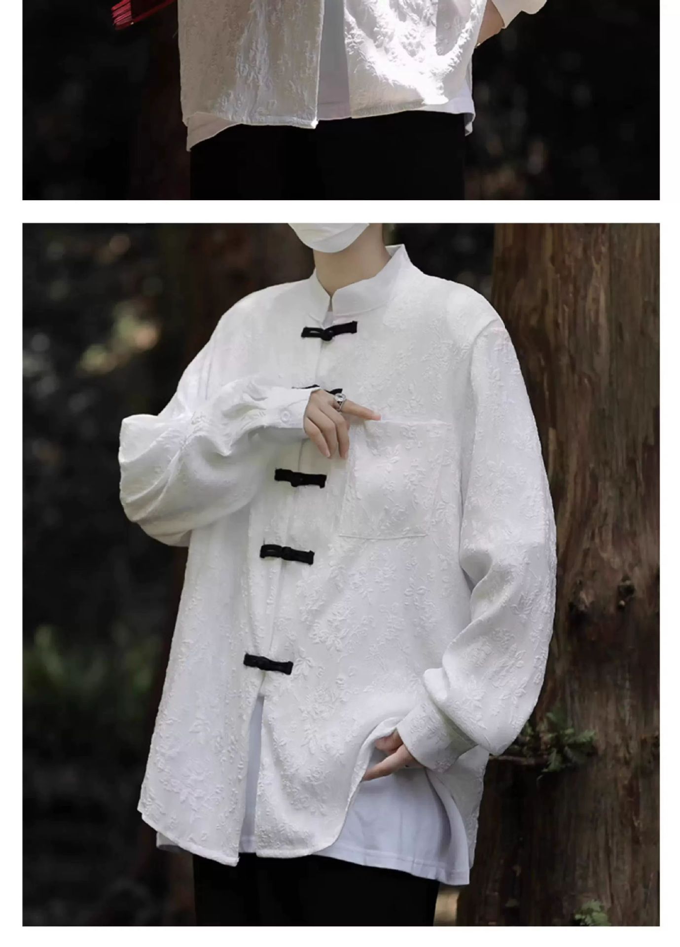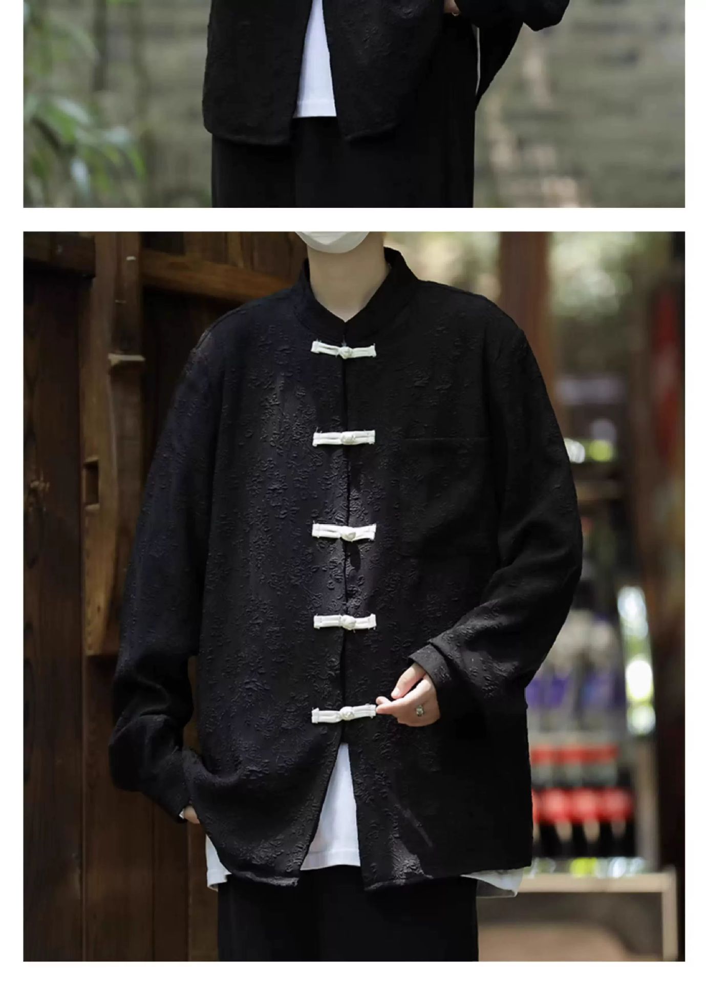 새로운 중국 스타일 칼라 자카드 셔츠 남자 긴팔 국가 스타일 당나라 코트 가을 새로운 유행 느슨한 버클 셔츠스토어 가기
