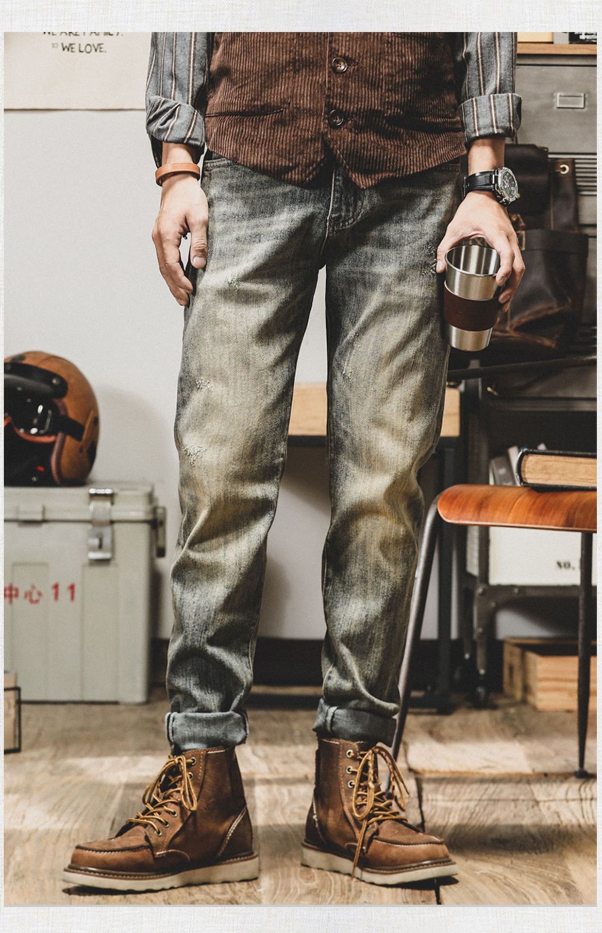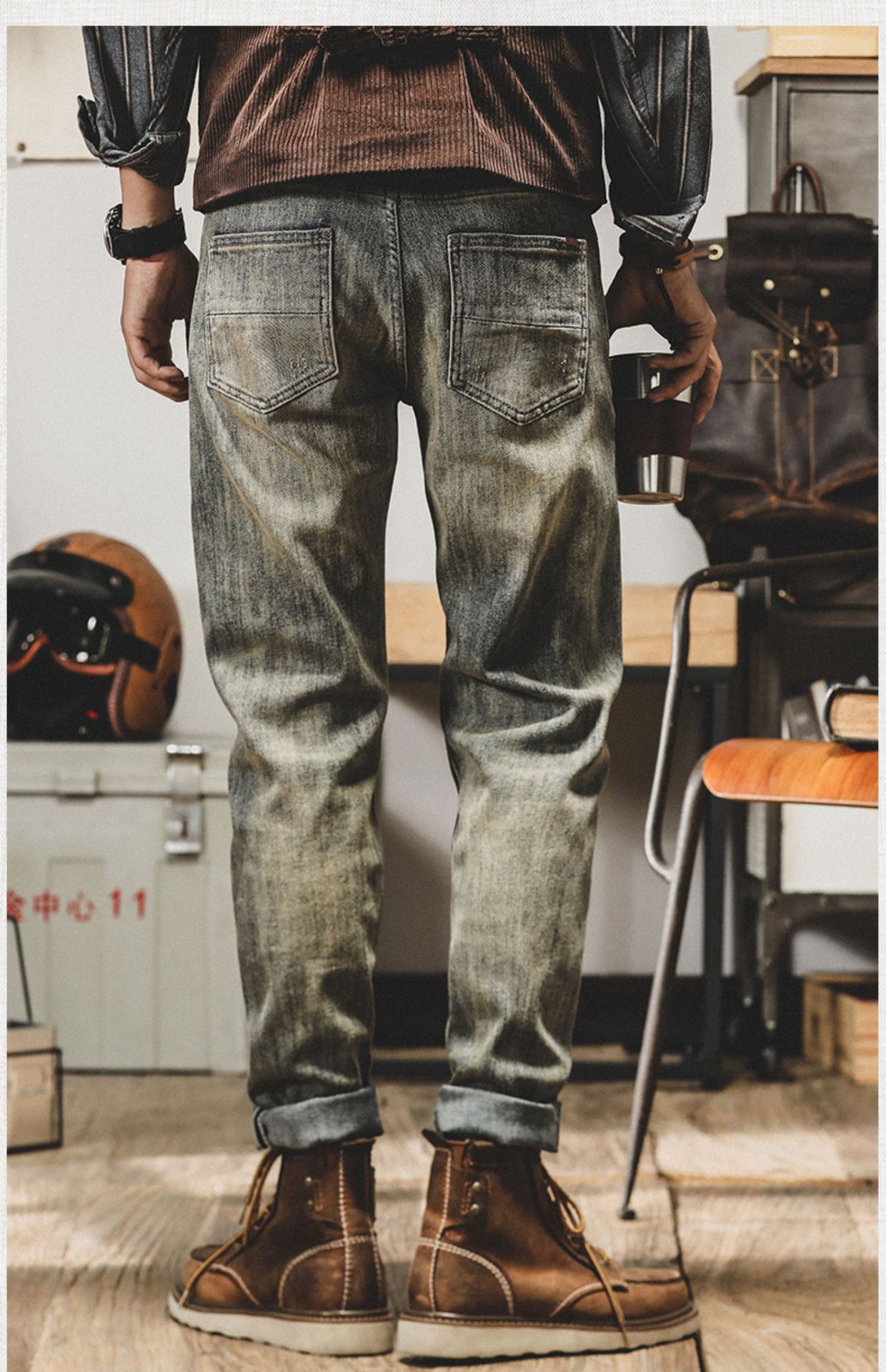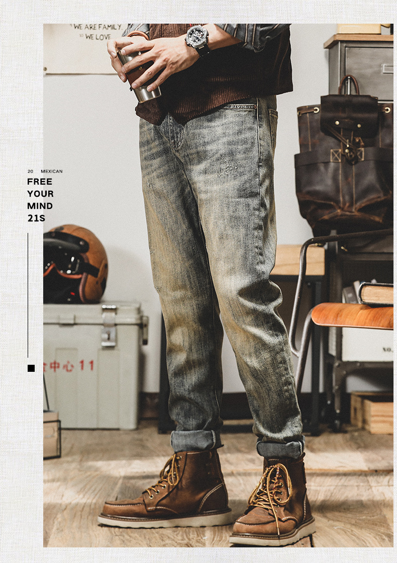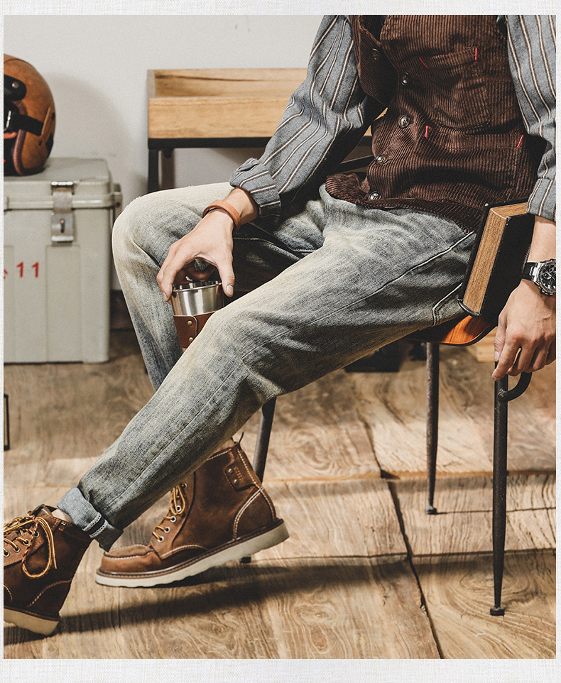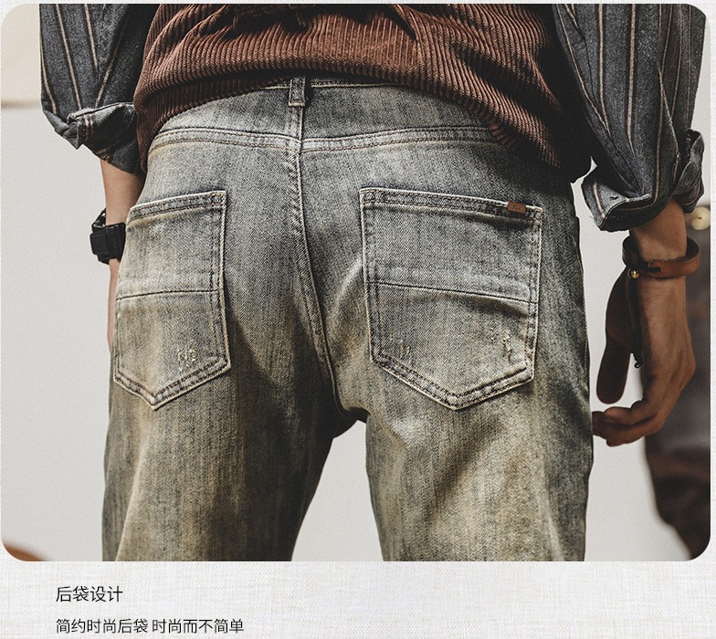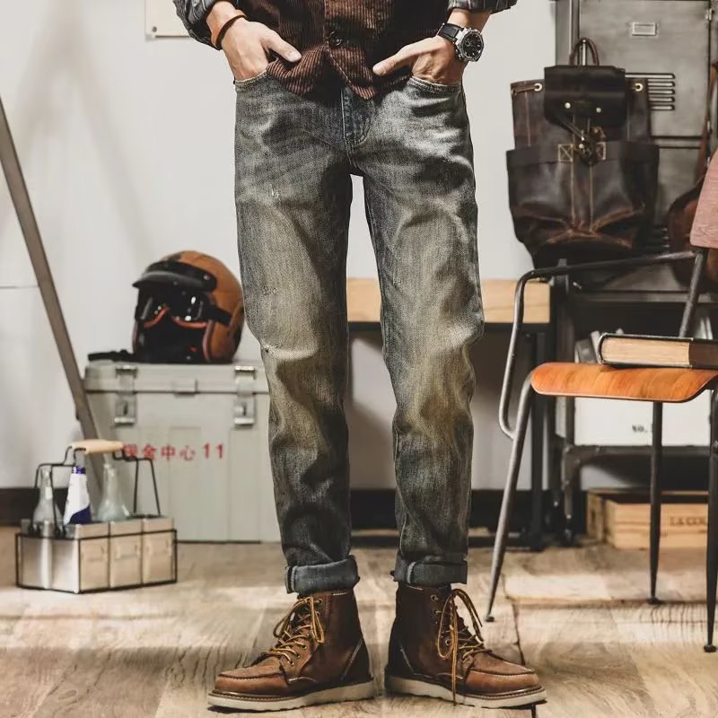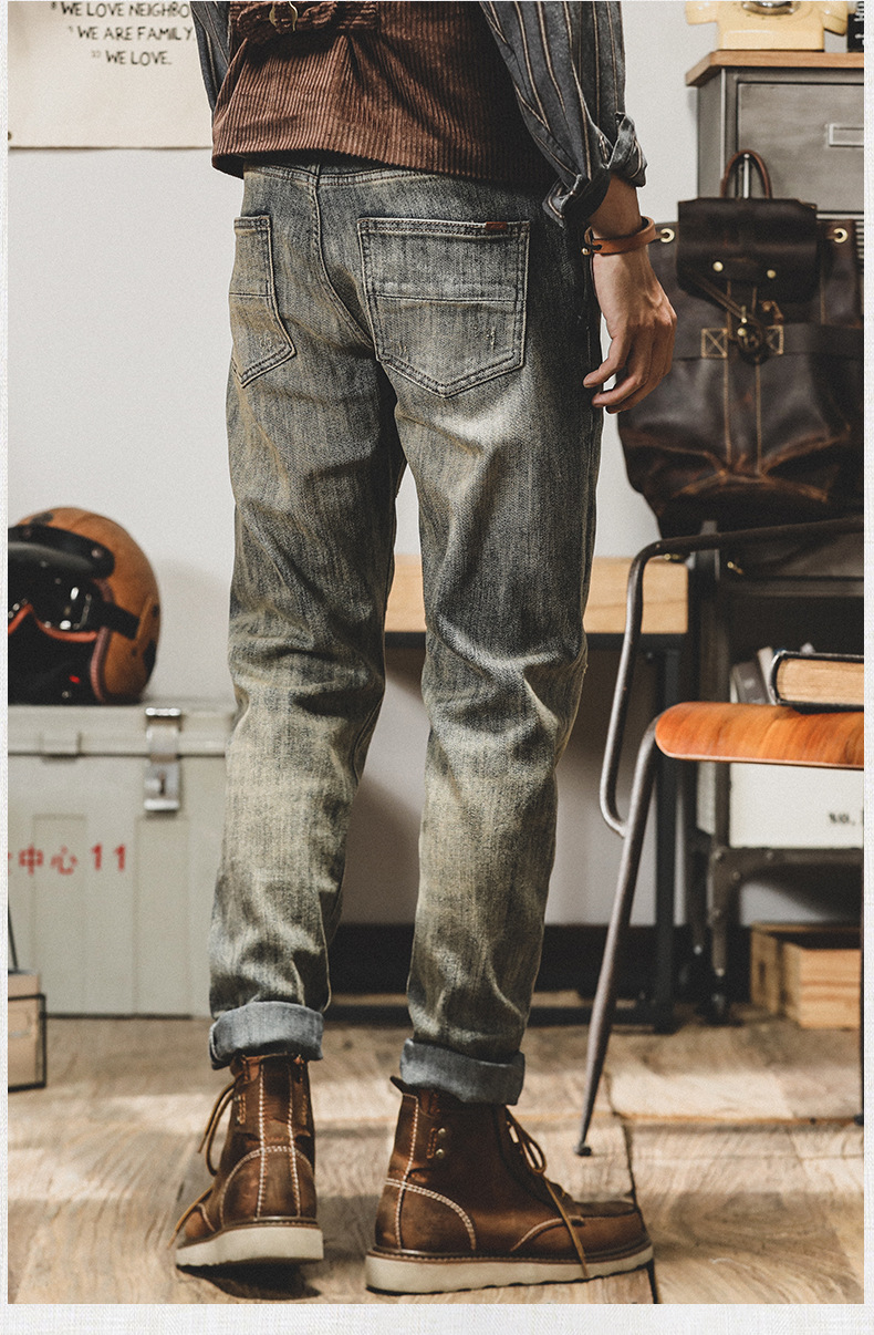 아메리칸 스타일 레트로 Ami Khaji 청바지 남자 스트레이트-다리 느슨한 바지 남자 가을 남자 캐주얼 올드 바지스토어 가기