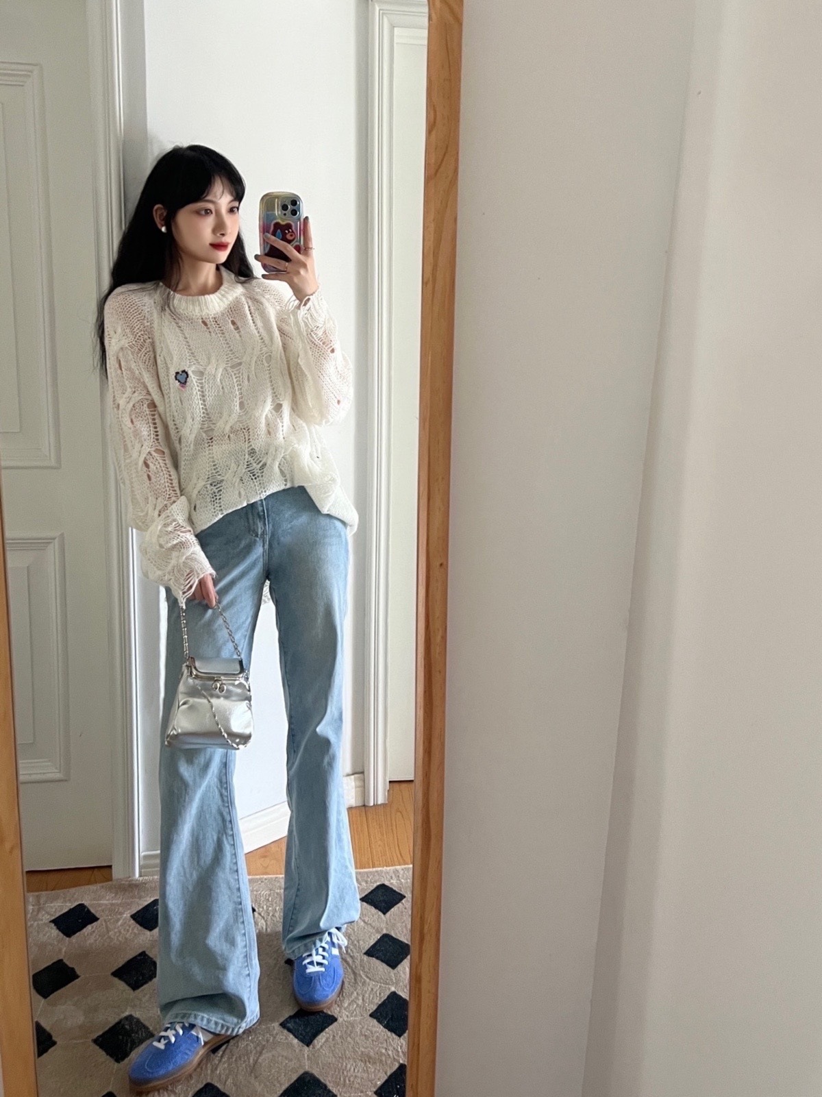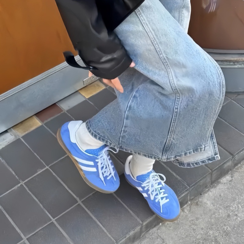 빈티지 클래식 블루 독일어 트레이닝 슈즈 여성의 2024 새로운 플랫 올 매치 레이스 업 캐주얼 스니커즈 가죽 포레스트 검프 슈즈스토어 가기
