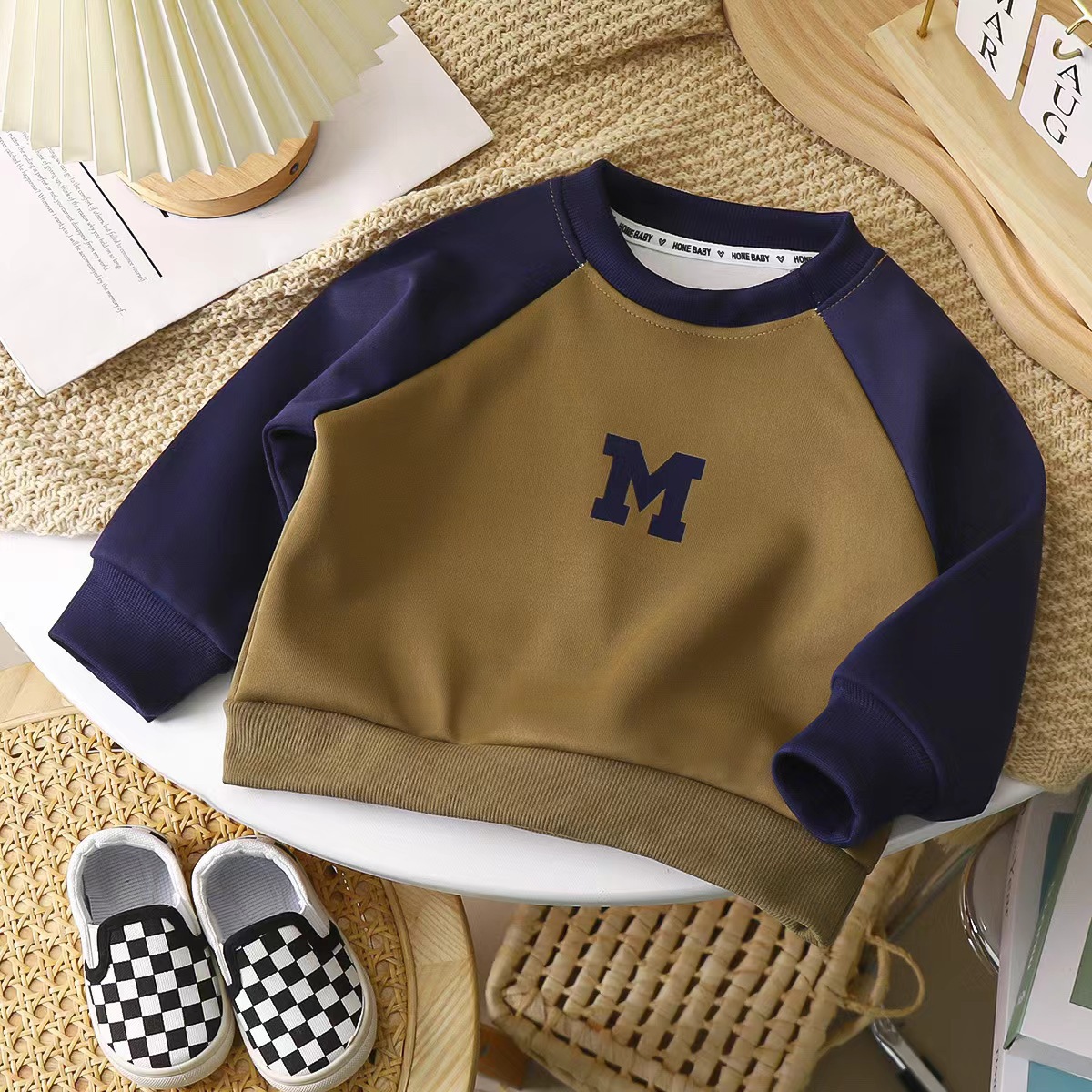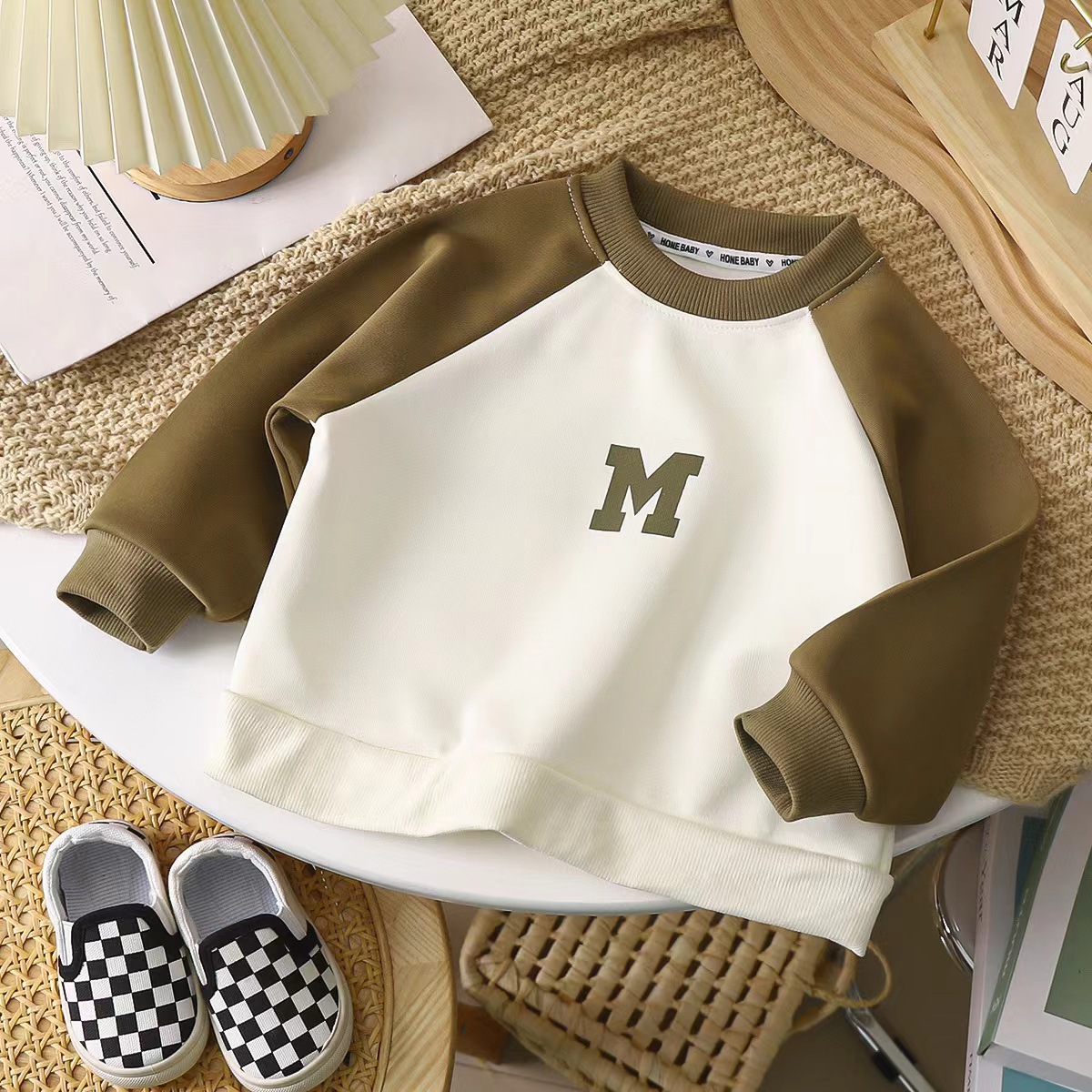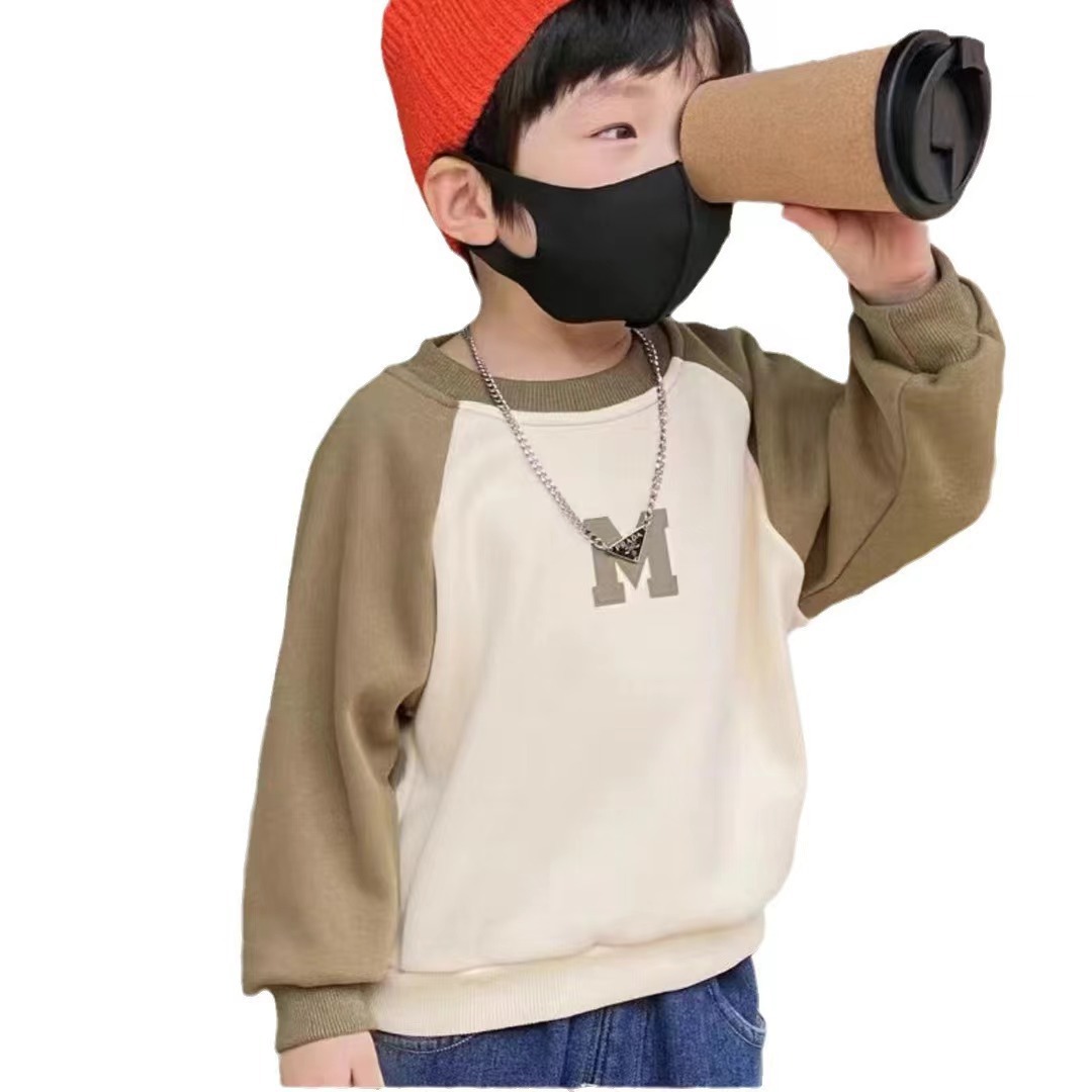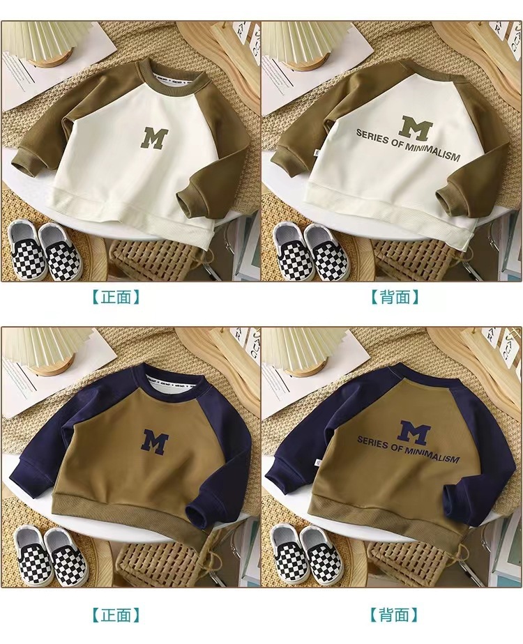 가을 어린이 스웨터 2024 새로운 소년 단가 소녀 한국 최고 큰 어린이 라글란 컬러 매칭 인쇄