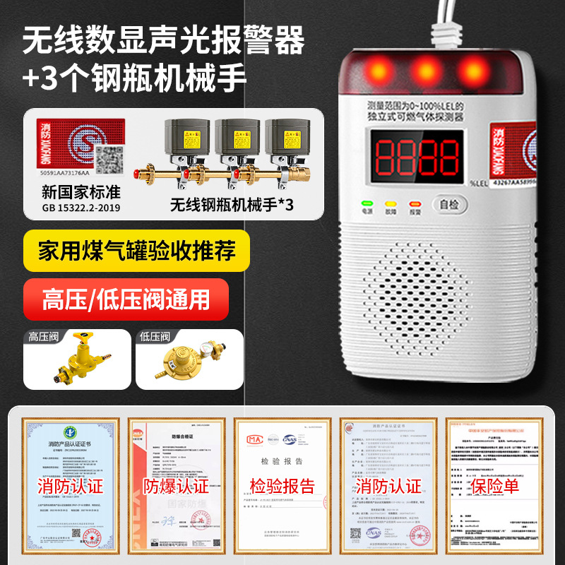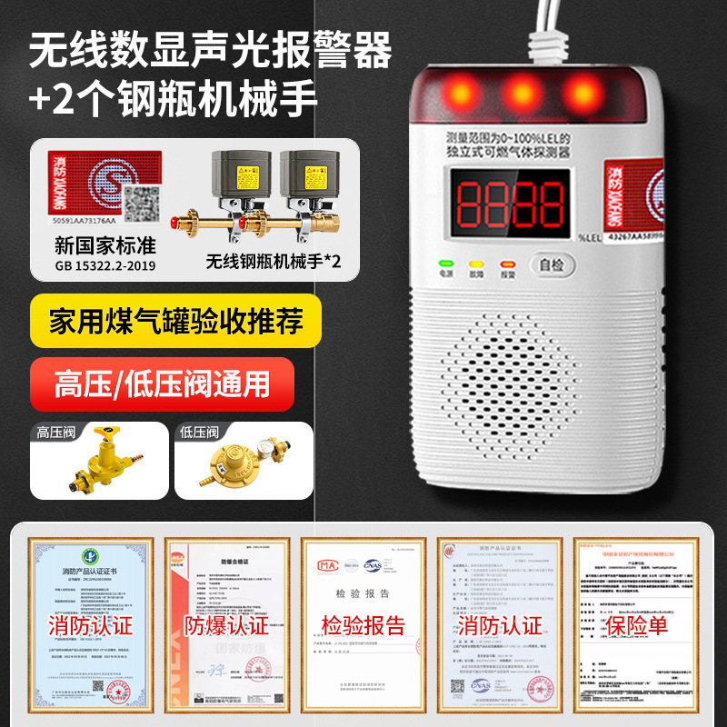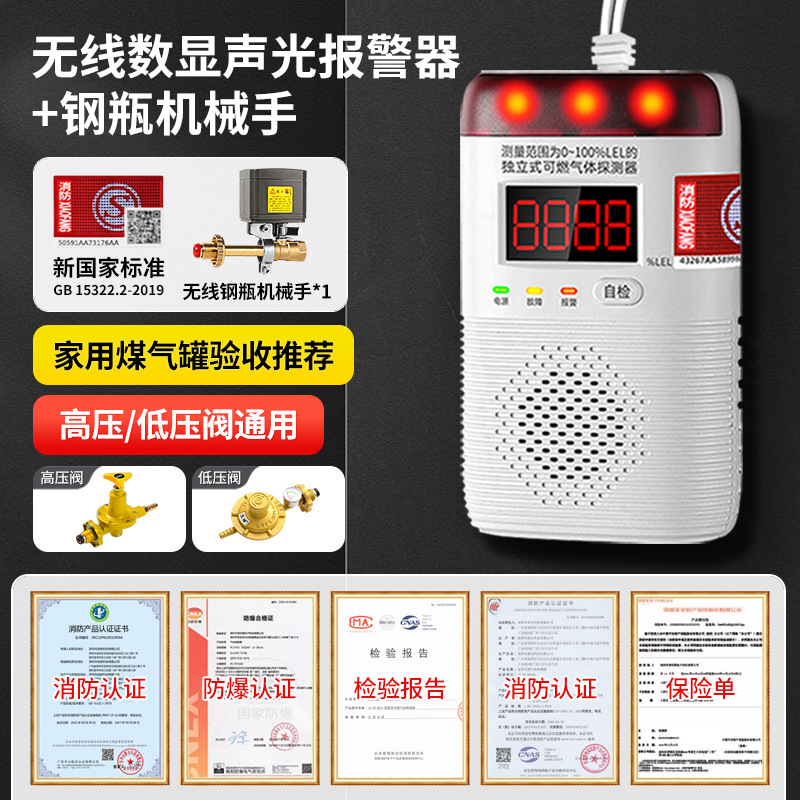 • 새로운 국가 표준 화재 음성 디지털 디스플레이 모델: 액화 가스 경보기 + 길고 두꺼운 실린더 기계