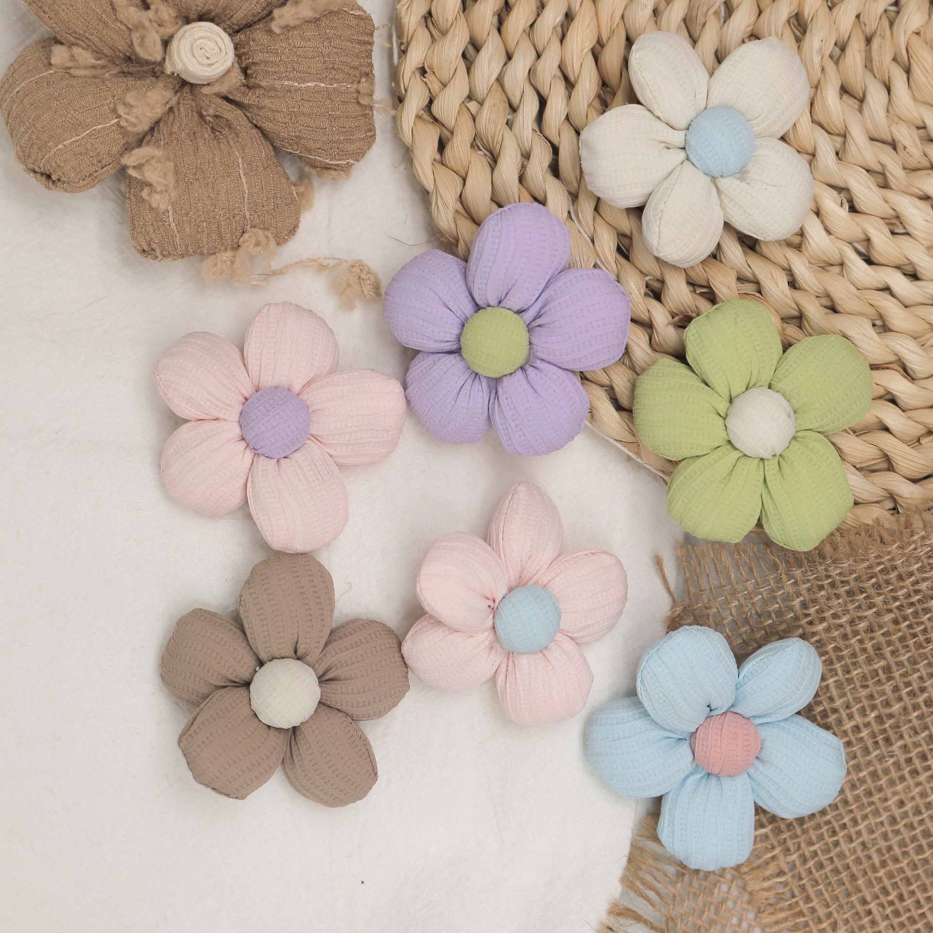 새로운 일본 스타일 신선한 캔디 컬러 5 꽃잎 꽃 원단 채워진 액세서리 소녀 헤어 액세서리 소녀 의류 신발 가방 액세서리스토어 가기