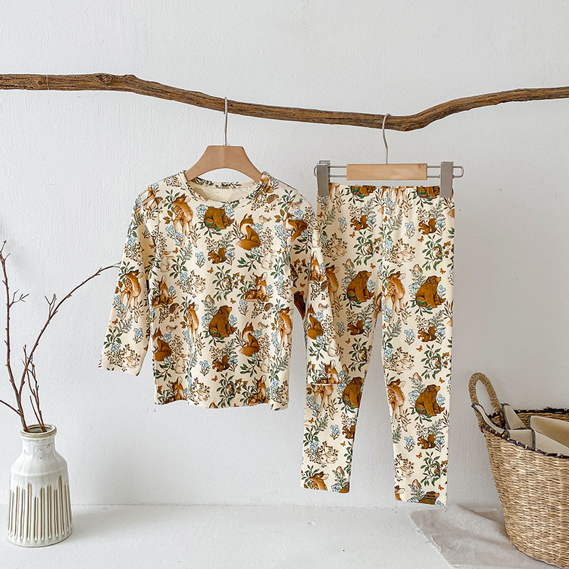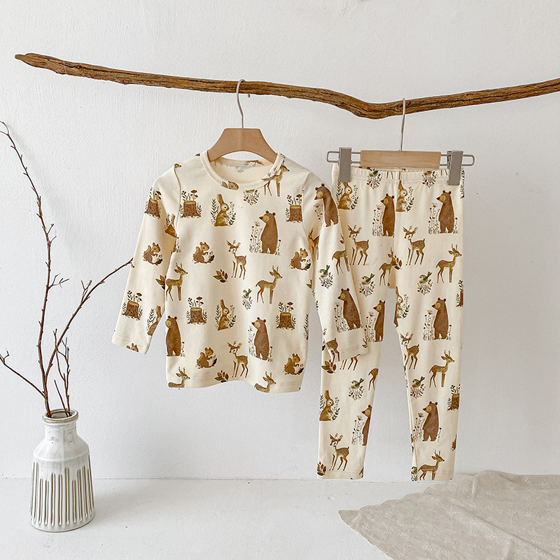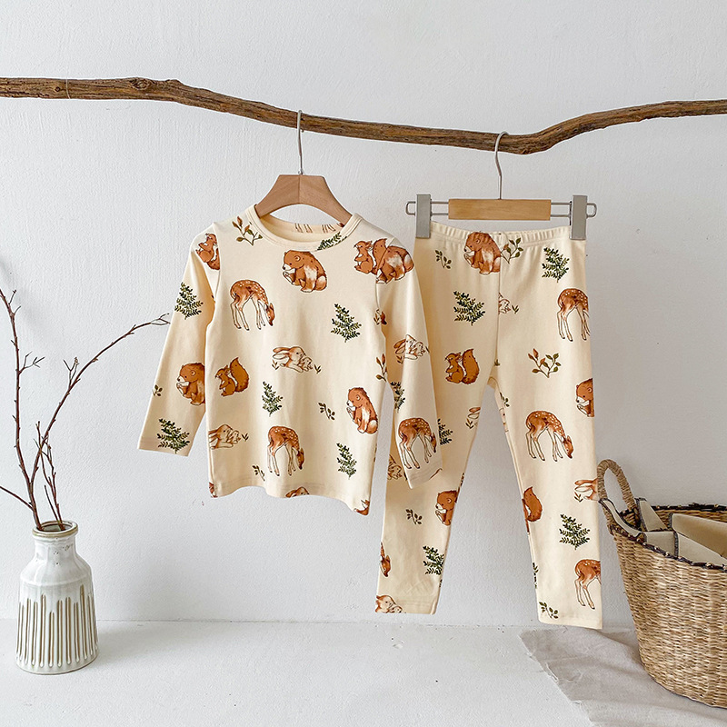 봄과 가을 어린이 가정 의류 ins 스타일 아기 잠옷 세트 어린이 기본 속옷 어린이 면화 잠옷스토어 가기