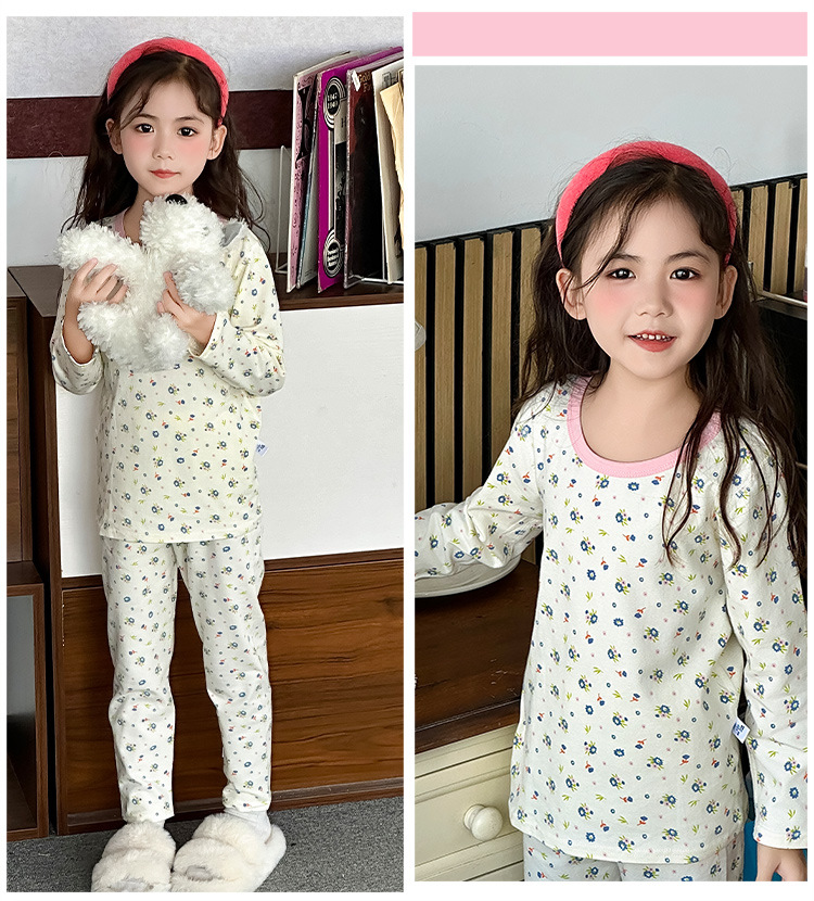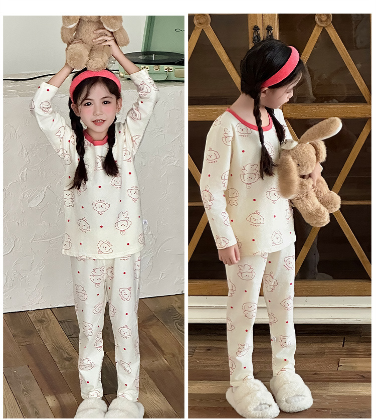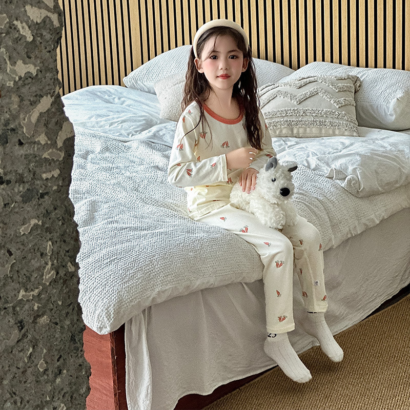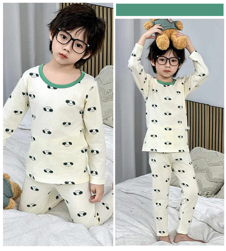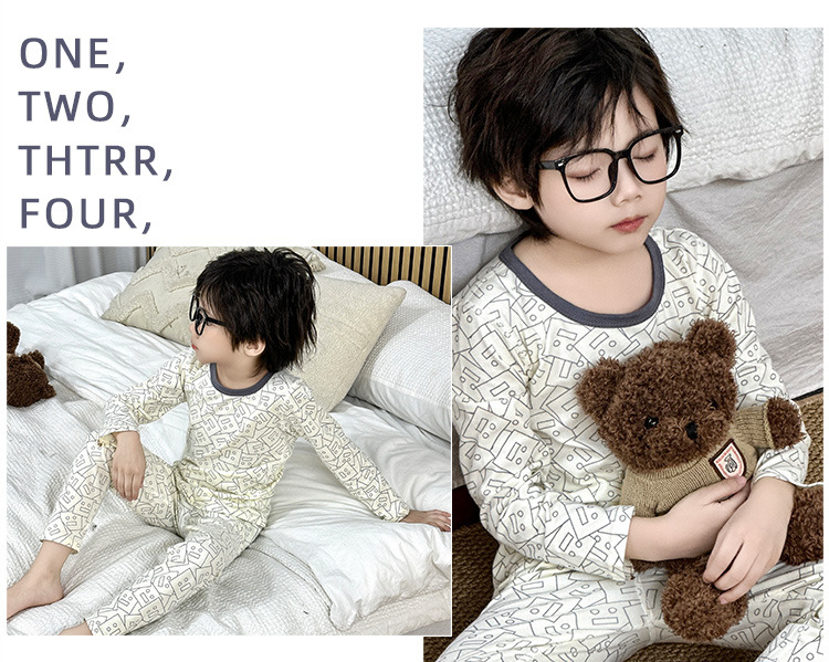 가을, 겨울 새로운 어린이 잠옷 세트 가을 옷과 가을 바지 뼈없는 라이크라 소년과 소녀 순수 코튼 클래스 A 가정 의류스토어 가기