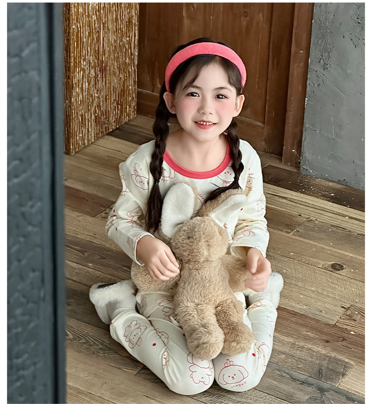 가을, 겨울 새로운 어린이 잠옷 세트 가을 옷과 가을 바지 뼈없는 라이크라 소년과 소녀 순수 코튼 클래스 A 가정 의류