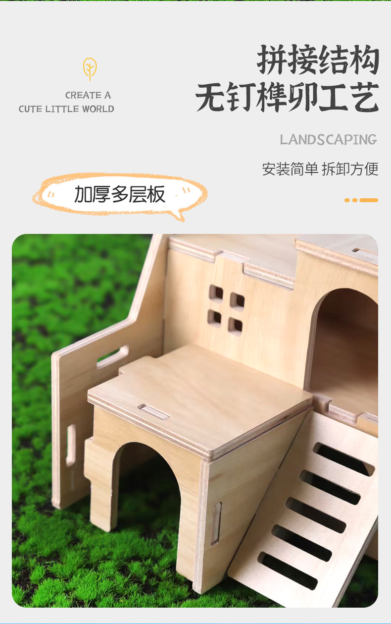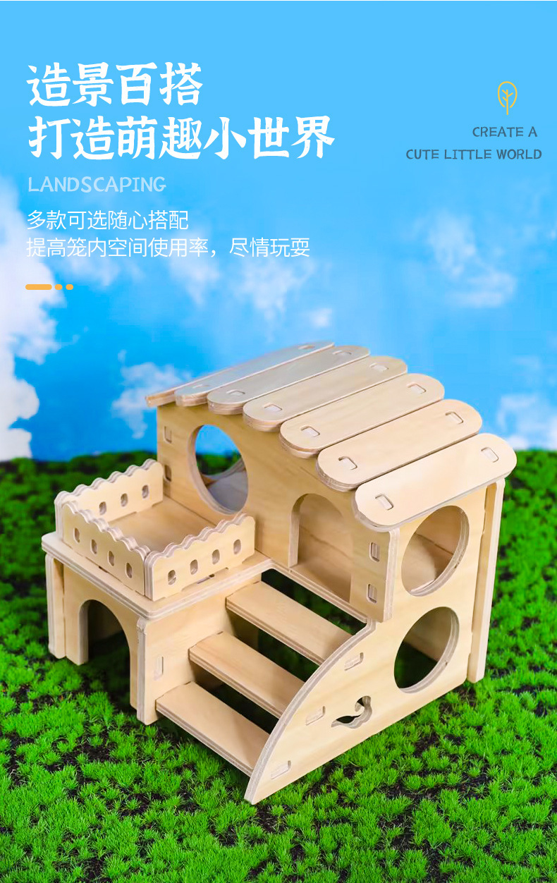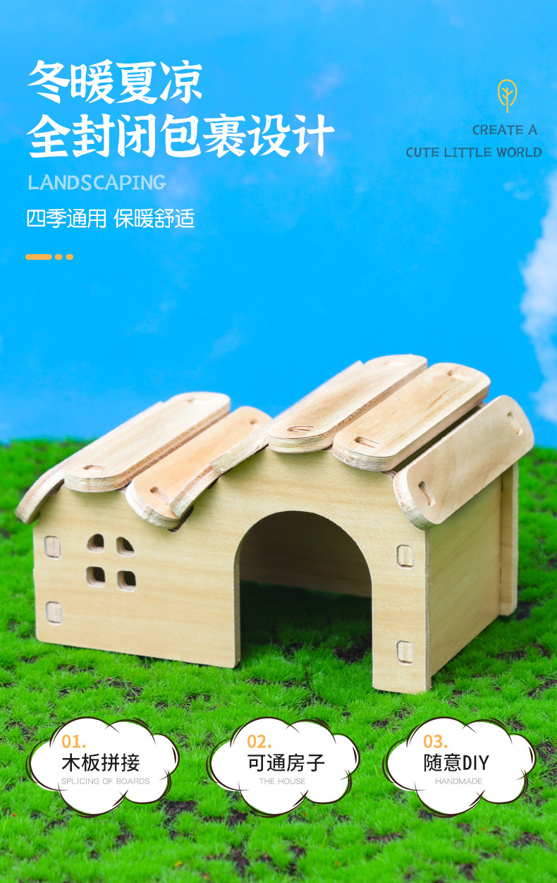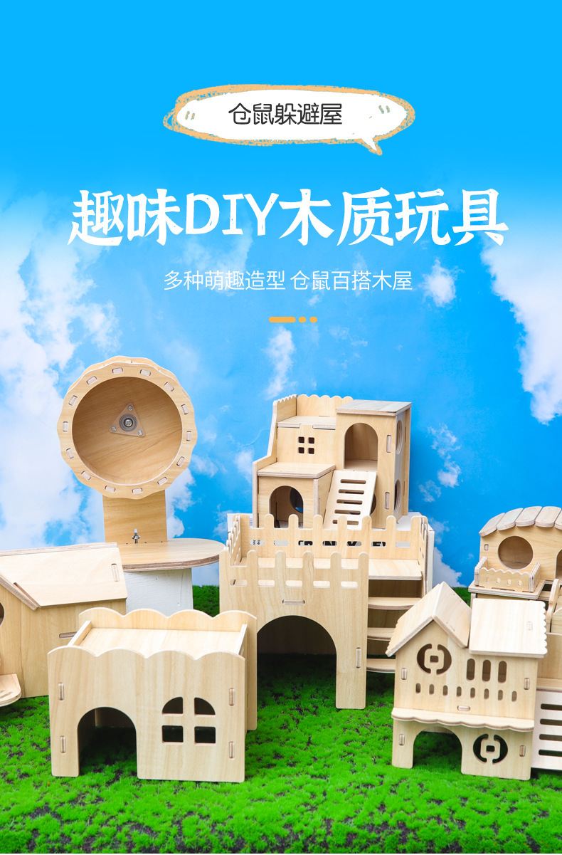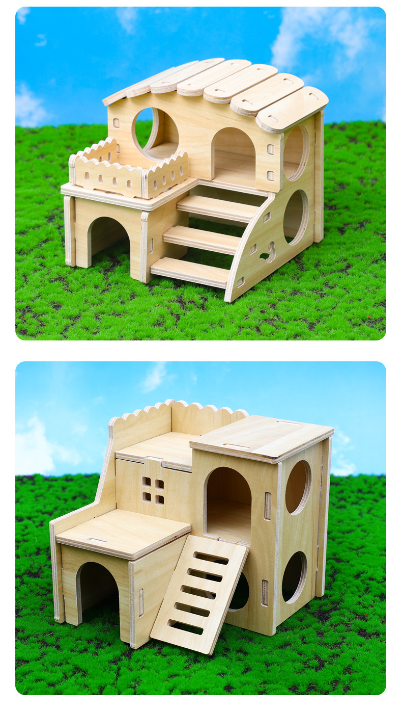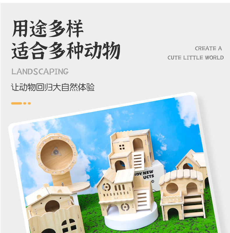 나무 햄스터 둥지 장난감 햄스터 다람쥐 단단한 나무 햄스터 케이지 공급 나무 러닝 휠 빌라 장식품 조경 만들기 장난감스토어 가기