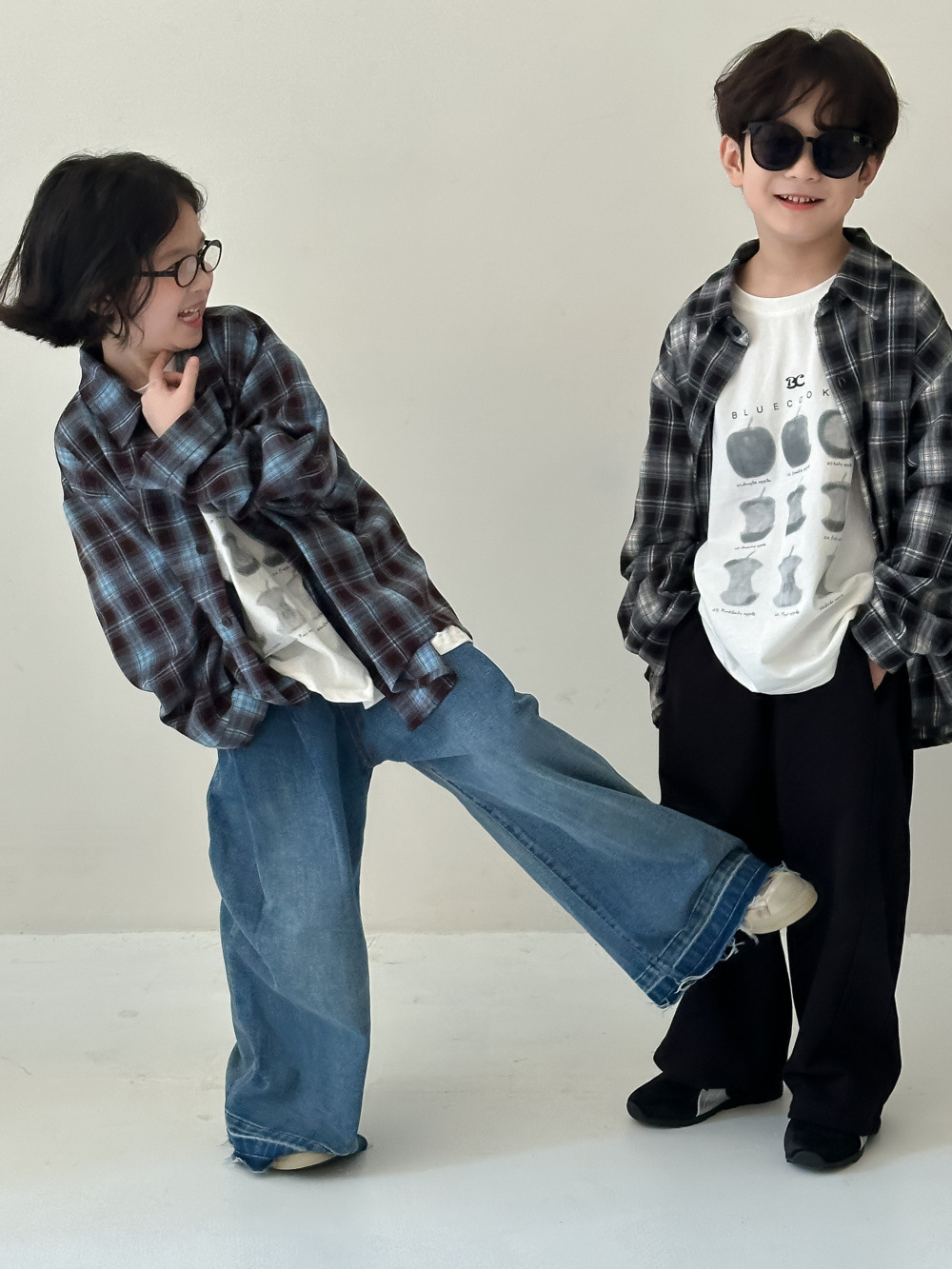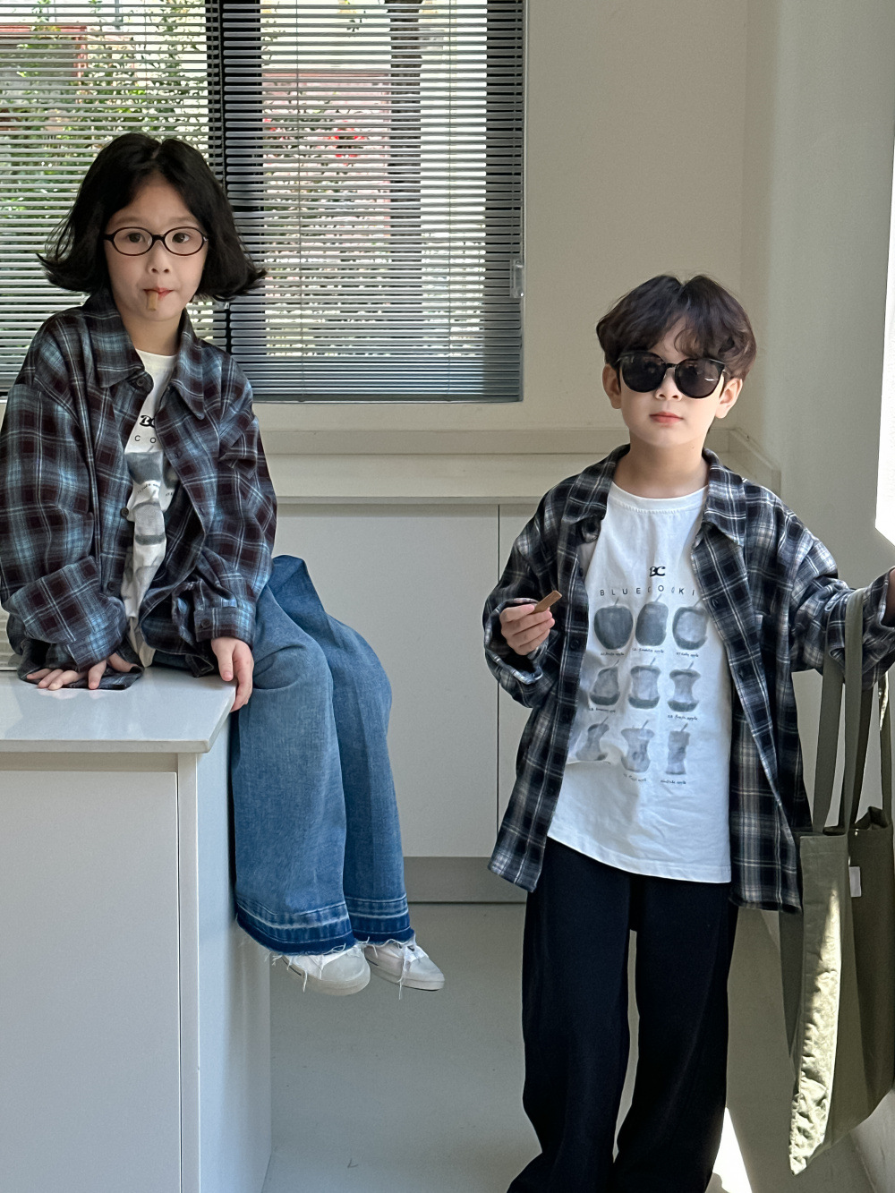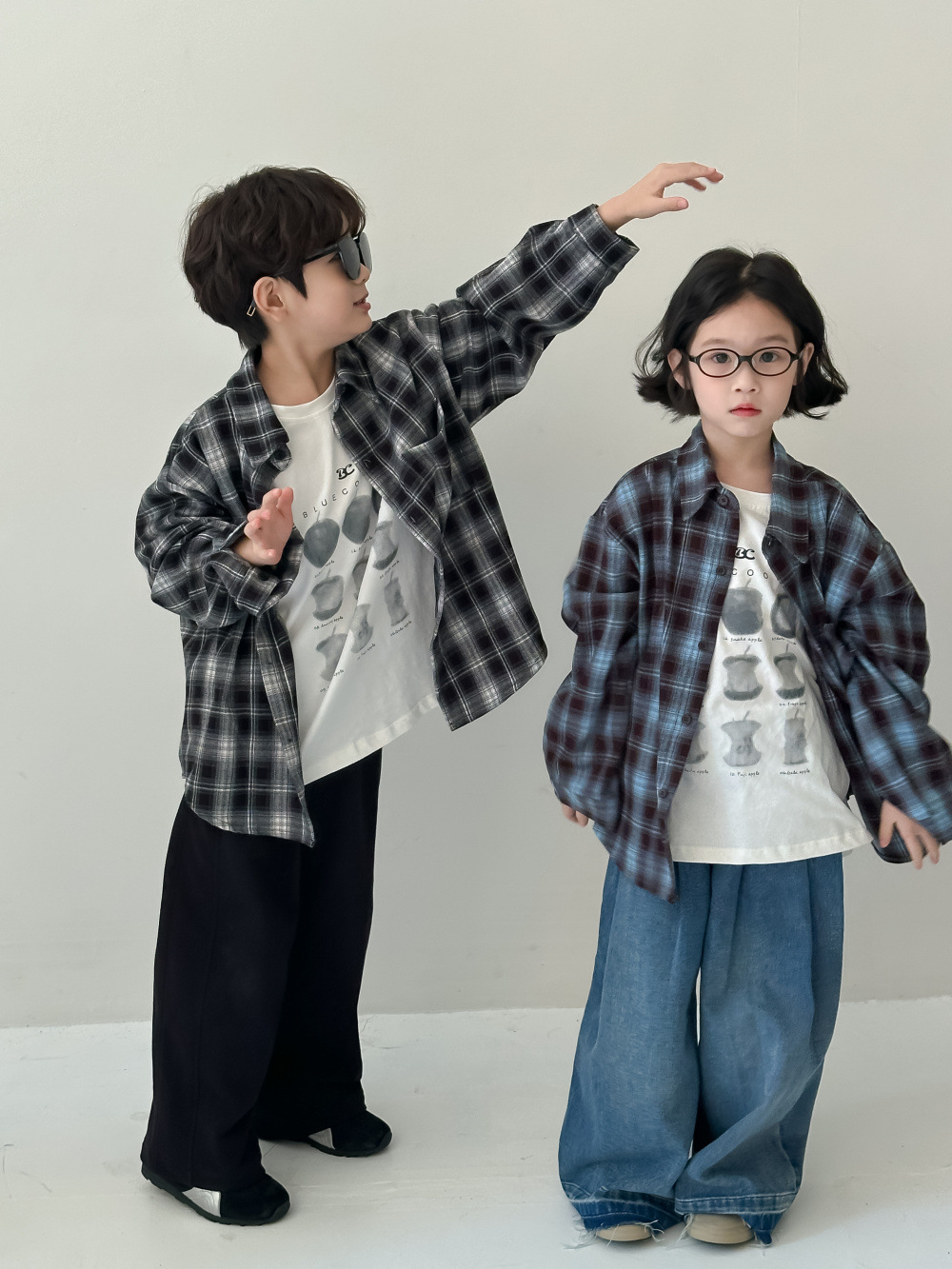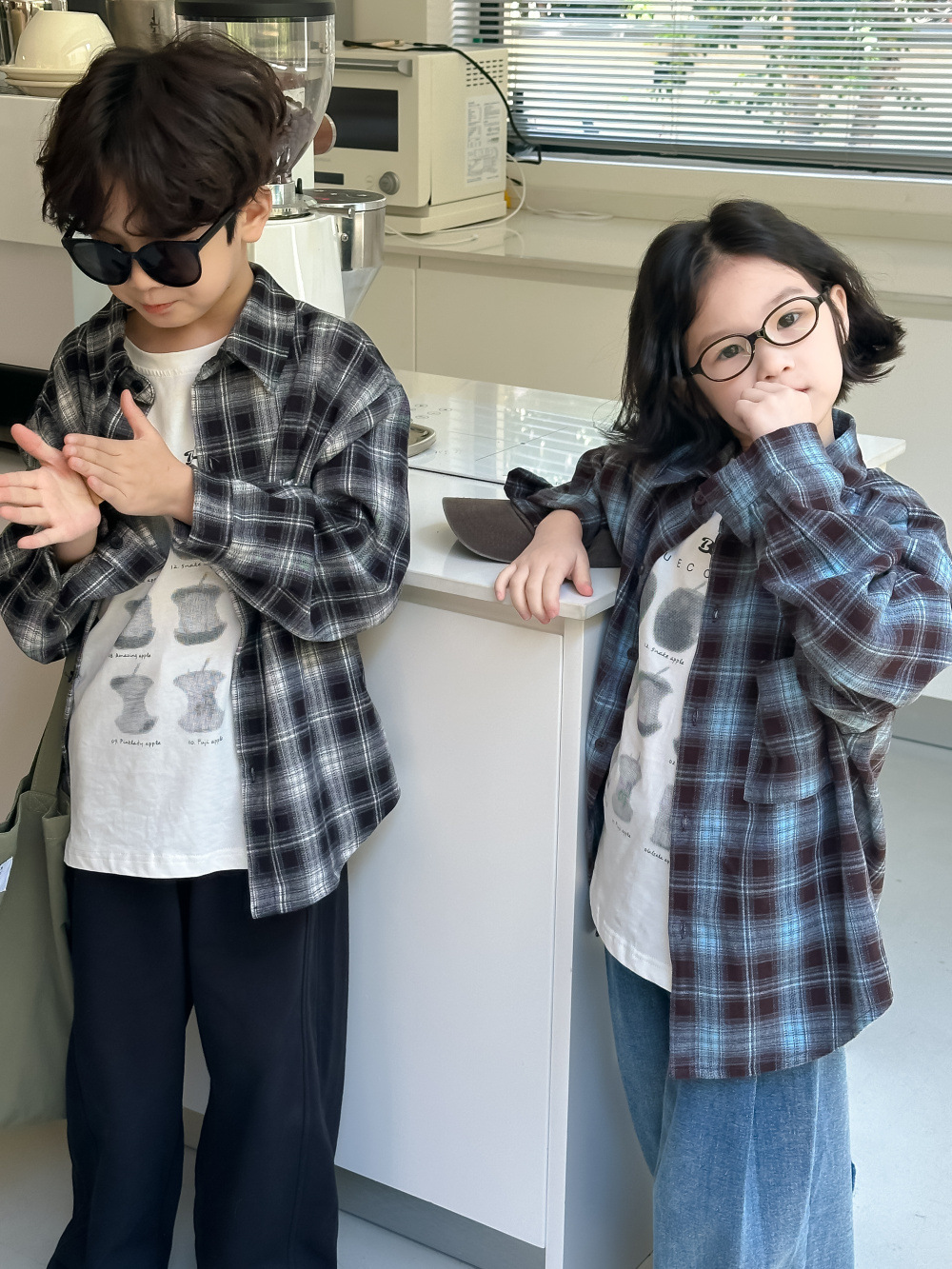 어린이 셔츠 국경 2025 가을 스타일 한국 스타일 벨벳 격자 무늬 셔츠 소년과 소녀를위한 어린이 캐주얼 루즈 긴팔 탑스토어 가기