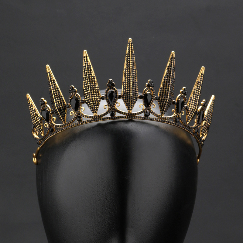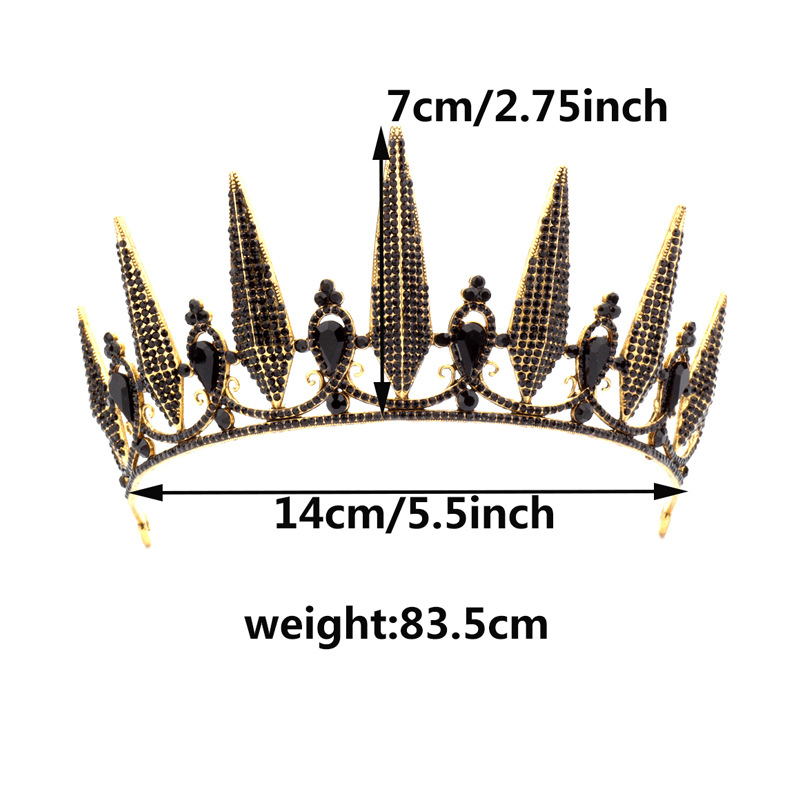 2024 합금 라인스톤 할로윈 블랙 하프 서클 빅 크라운 여신 생일 헤어 액세서리 신부 보석 크로스 국경 핫 세일스토어 가기