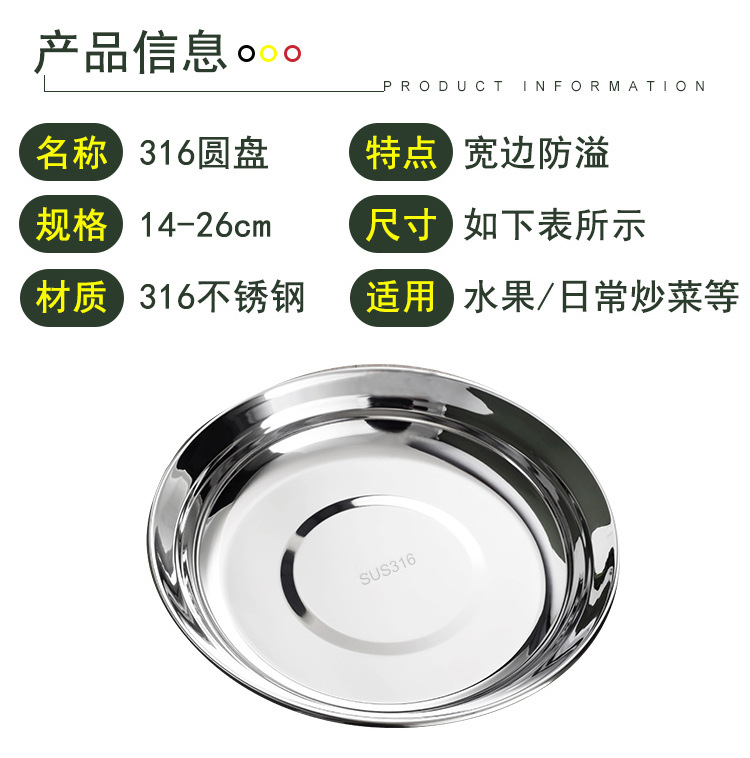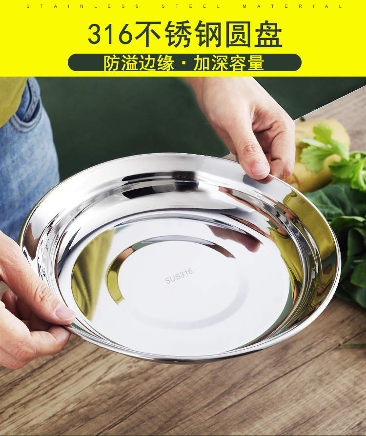 식품 학년 316 스테인레스 스틸 플레이트 디스크 유치원 접시 접시 용 가정용 두꺼운 접시 접시 접시스토어 가기