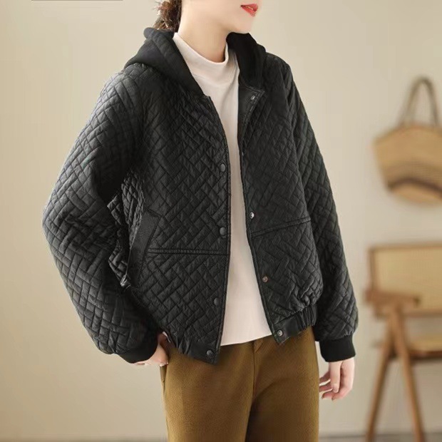 2024 가을과 겨울 새로운면 가죽 여성 한국어 버전의 느슨한 플러스 사이즈 패딩 PU 가죽면 패딩 후드 단색 코트스토어 가기
