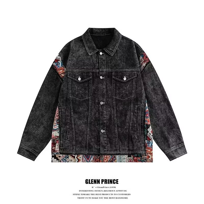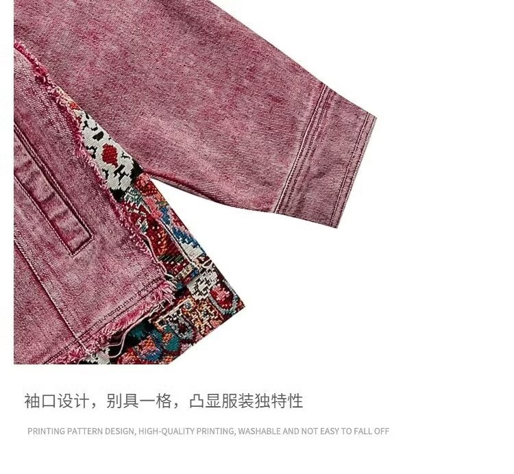일본 데님 아메리칸 스타일 민족 스타일 바느질 가짜 투피스 재킷 남성 디자인 센스 틈새 핑크 데님 재킷