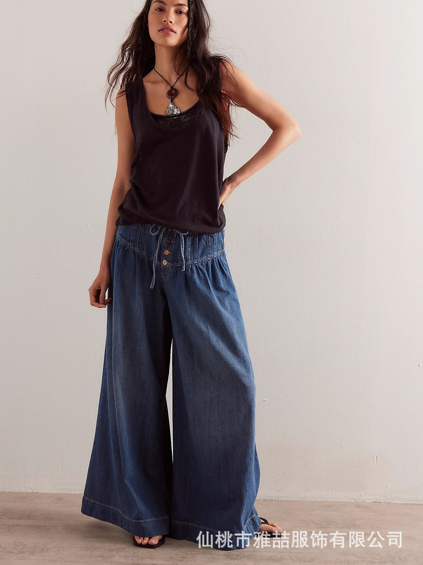2024 독립 스테이션 여성을위한 새로운 Pleated Mid-Waist 레이스 업 느슨한 와이드 레그 청바지스토어 가기