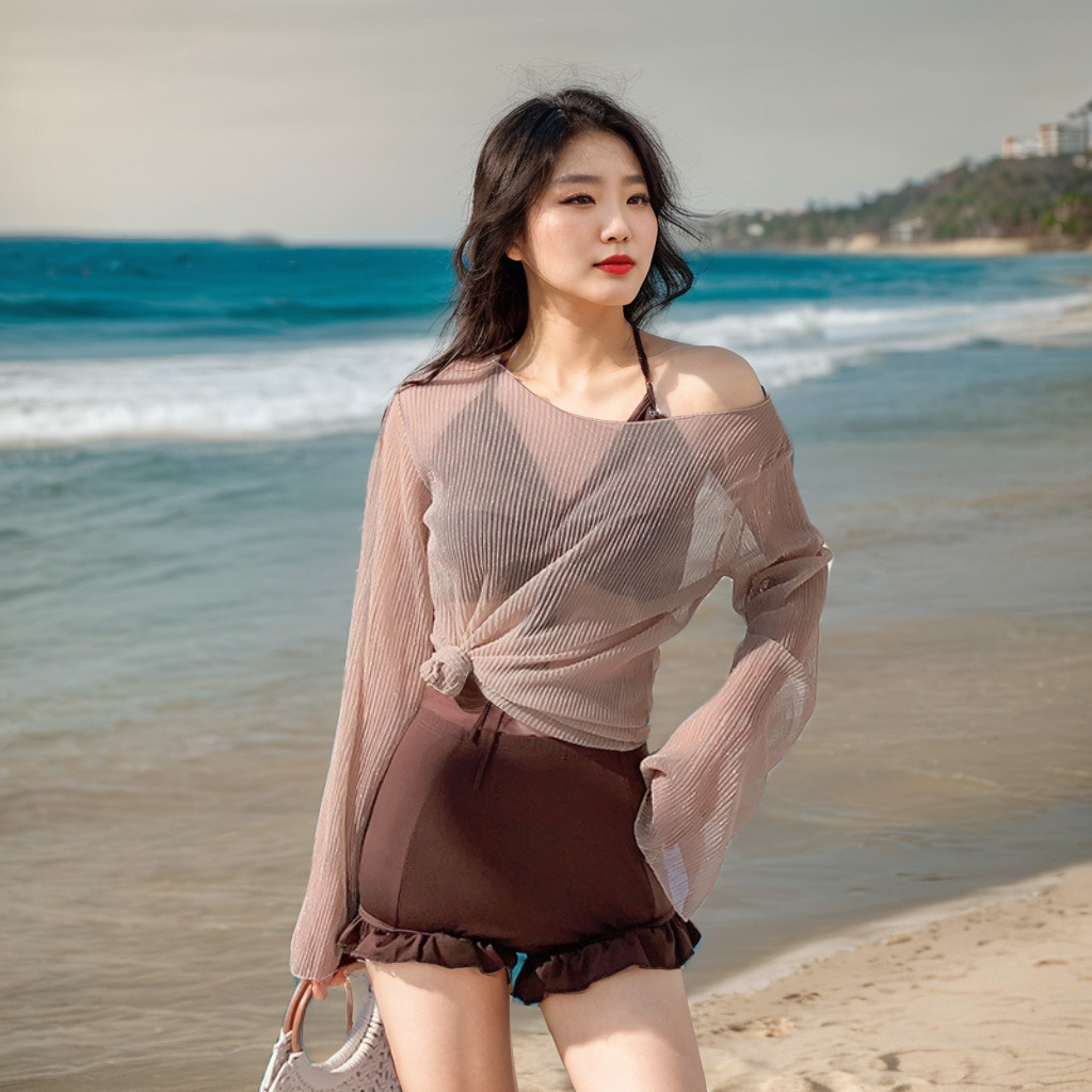 수영 세트 여자 섹시 솔리드 컬러 수영 세트 벨리 커버 슬림 휴가 비치 플러스 사이즈 온천 수영복