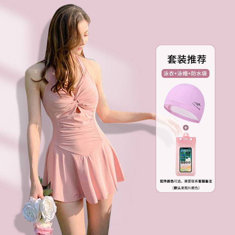 • 핑크 (수영복 + PU 수영모 + 휴대폰 방수가방)