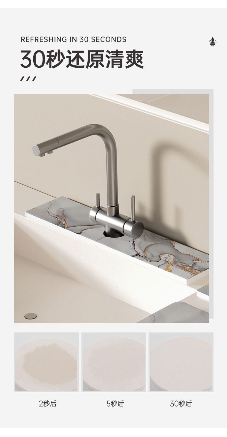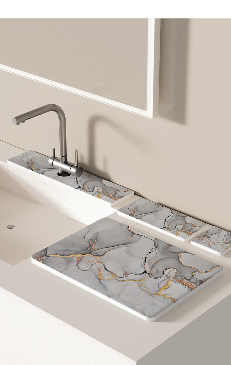 Diatom 진흙 흡수성 주방 욕실 싱크 워시 데스크 화장실 매트 좁은 사이드 수도꼭지 매트 카운터 탑 흡수 매트스토어 가기