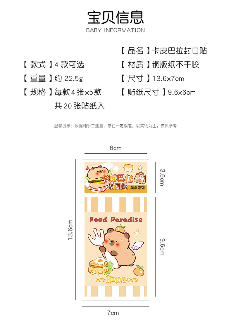 카피 발라 씰 스티커 귀여운 카피 바라 손 계정 스티커 창조적 인 포장 카드 포장 장식 페이스트스토어 가기