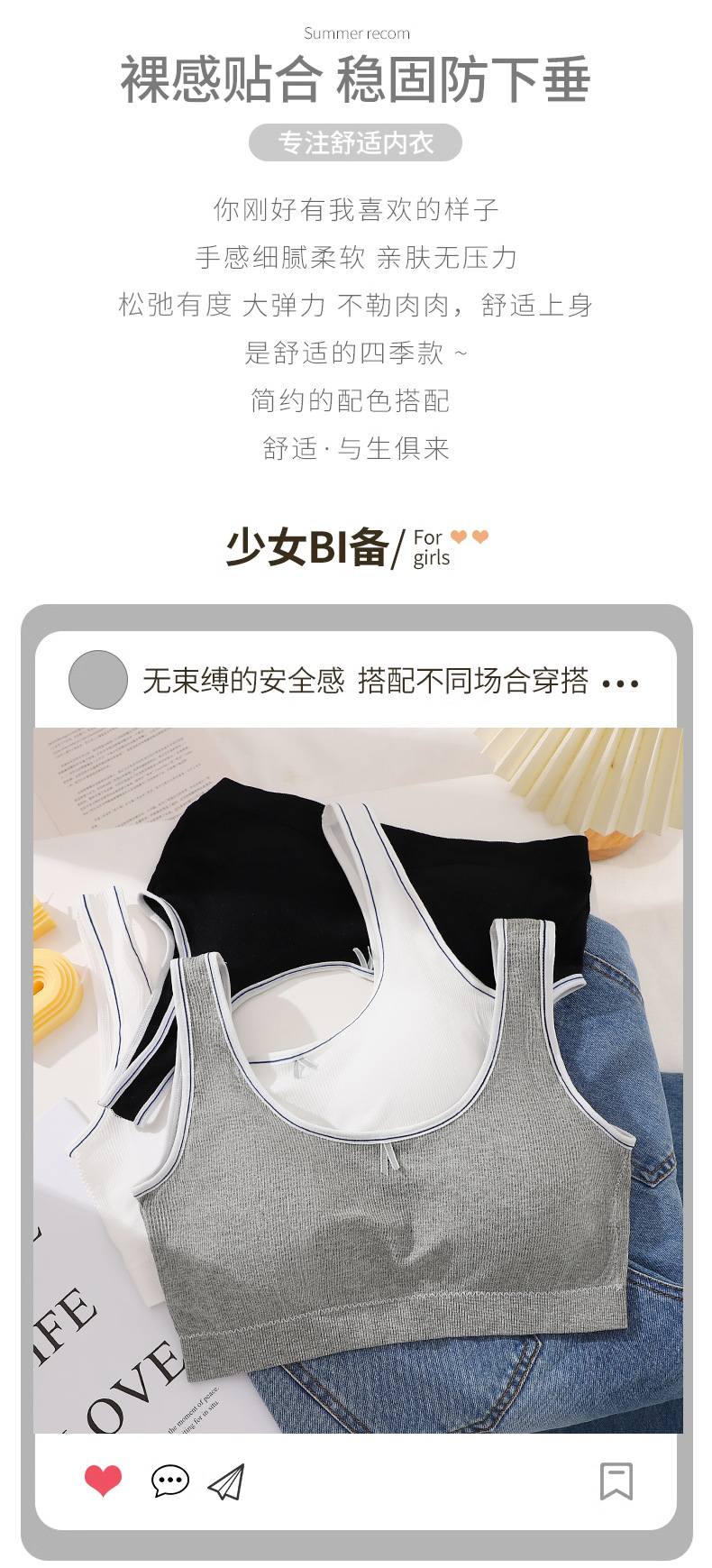 면 속옷 중학생 여중생 큰아이 발달 작은 조끼 여자 10 세 브래지어 스포츠