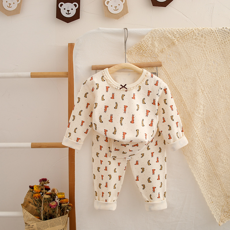 아기 가을 옷 세트, 가을 바지, 봄 가을 가정복, 속옷, 기모 옷, 울 스트레치 아동 잠옷, 중소형 아동용
