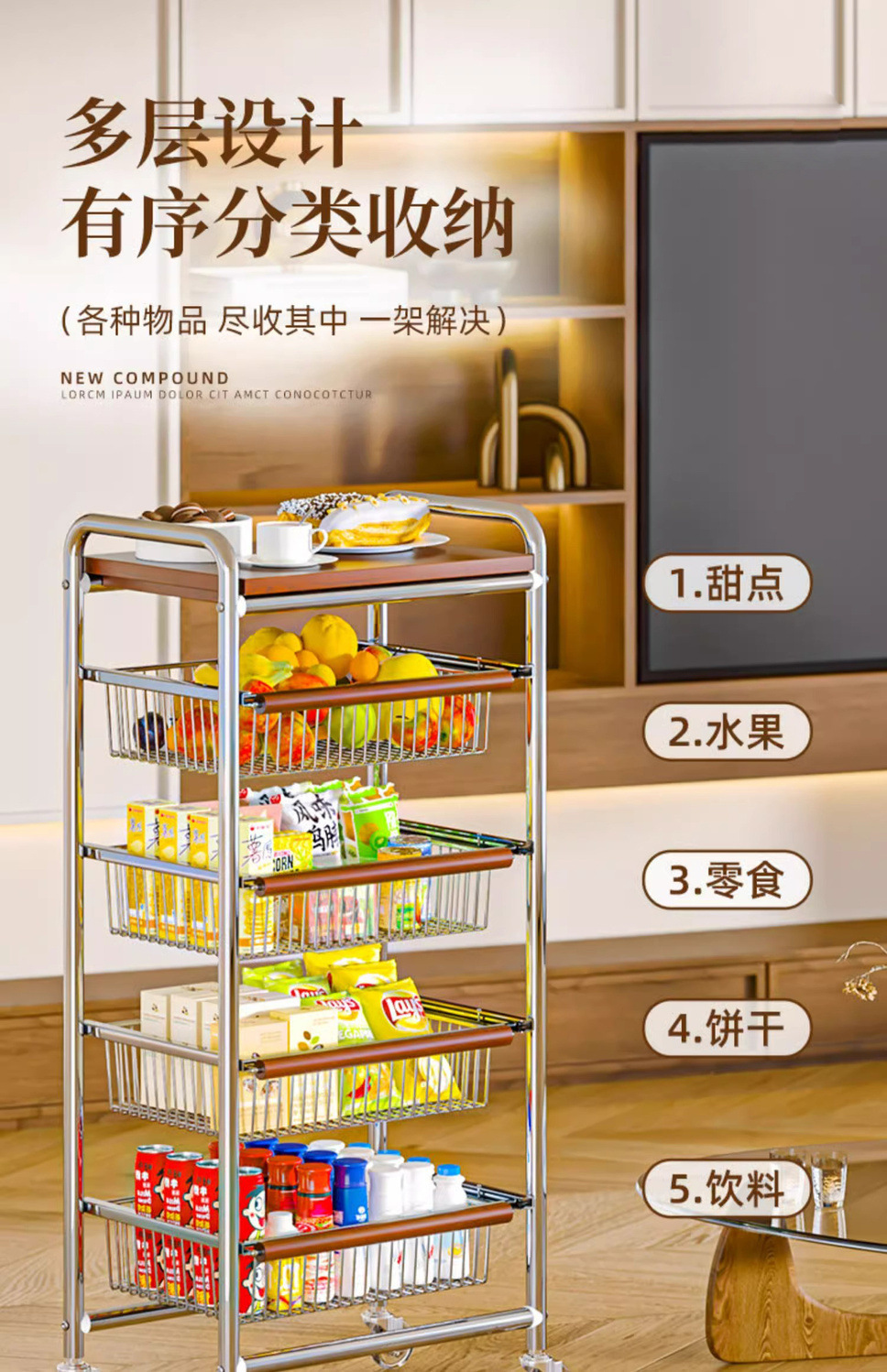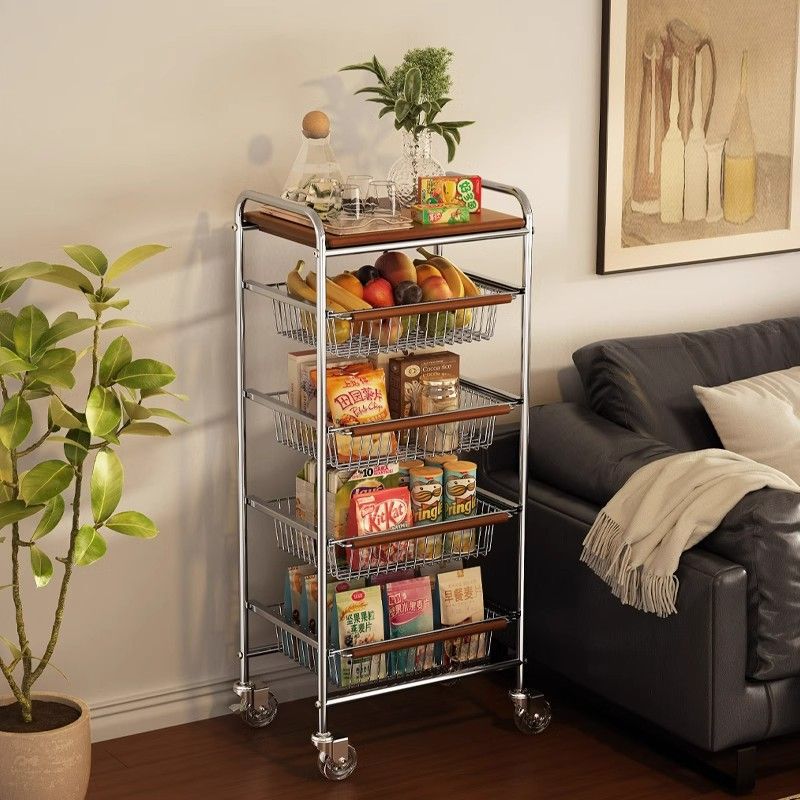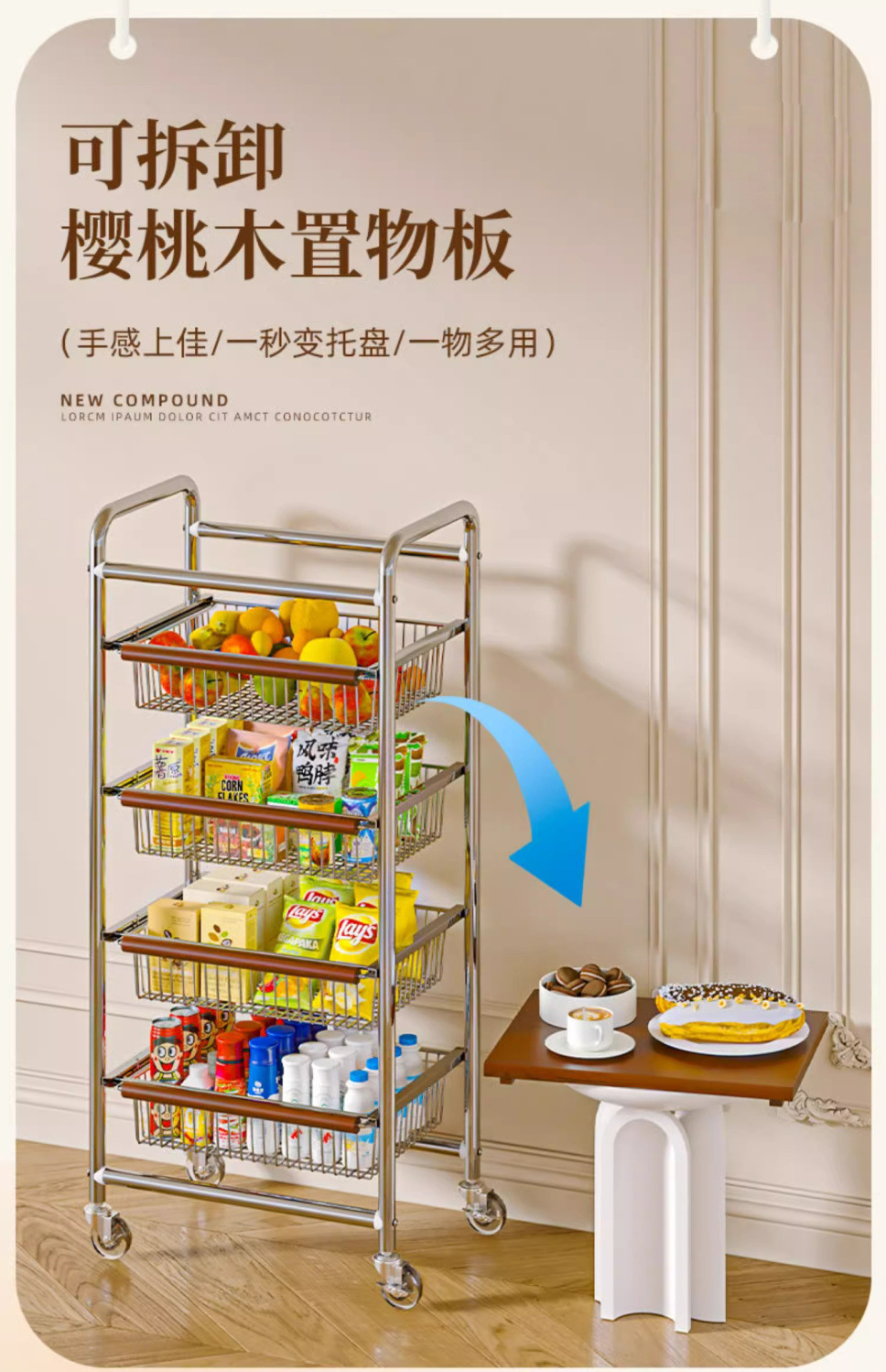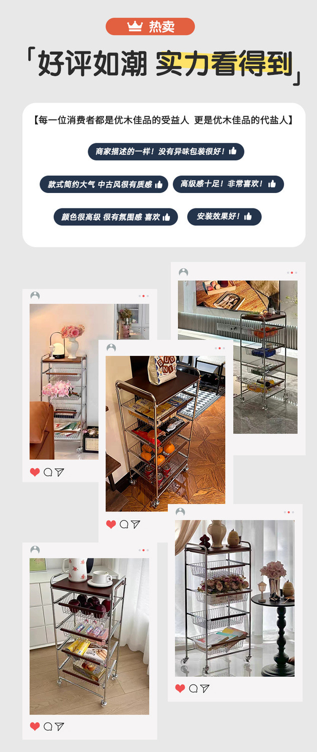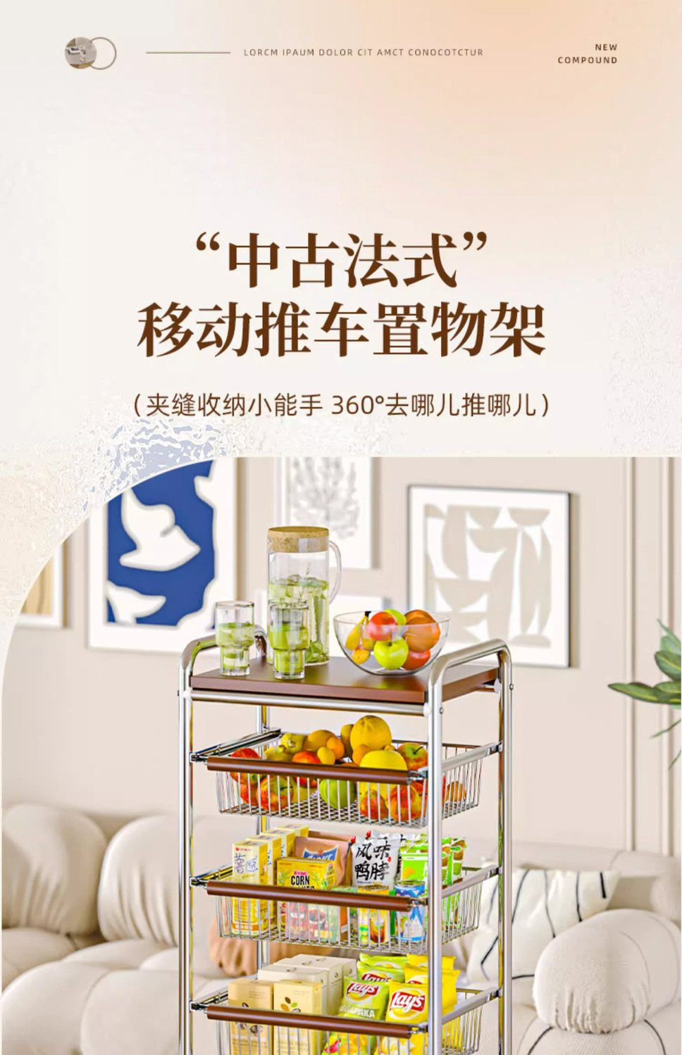 골동품 스타일 작은 카트 스토리지 랙 가정용 거실 스낵 스토리지 랙 다층 이동식 사이드 테이블 주방 피팅 랙