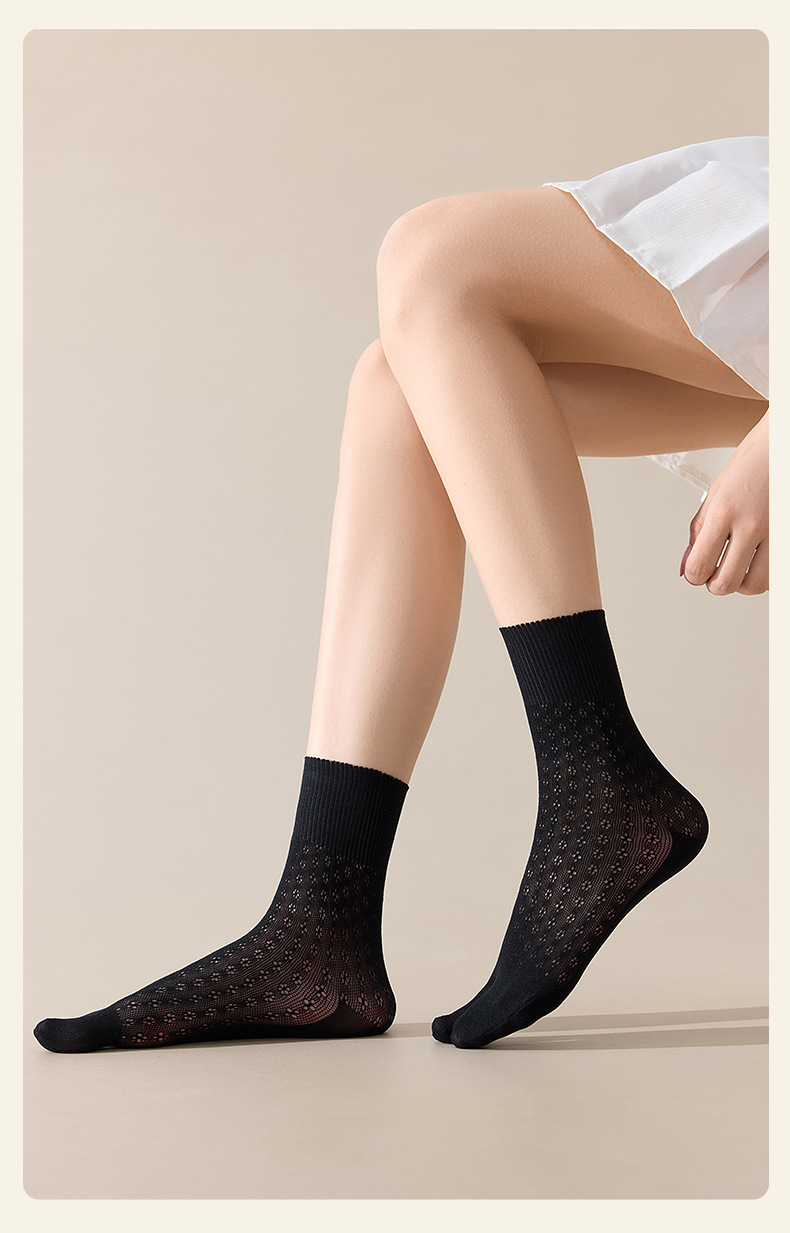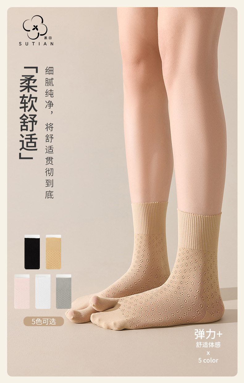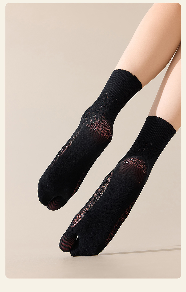 발가락 양말 여성용 미드 풋 양말 Ins 트렌디 한 여성용 양말 중공 꽃 엄지 두 발가락 양말 소녀 돼지 신발 양의 발 양말