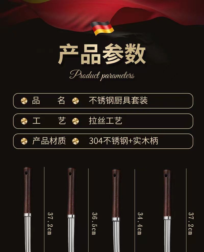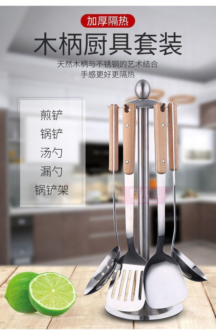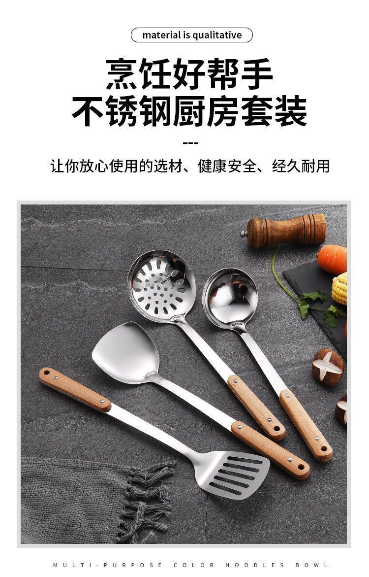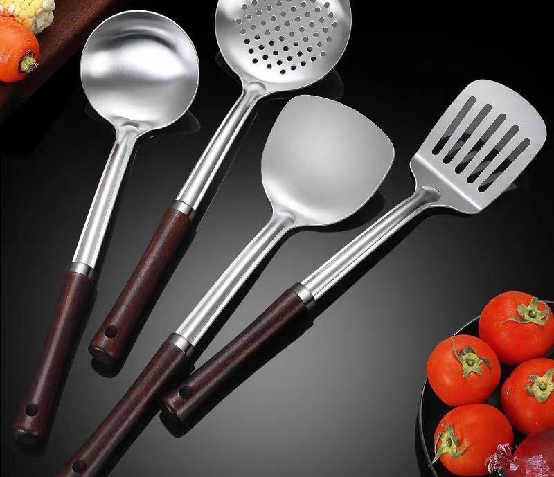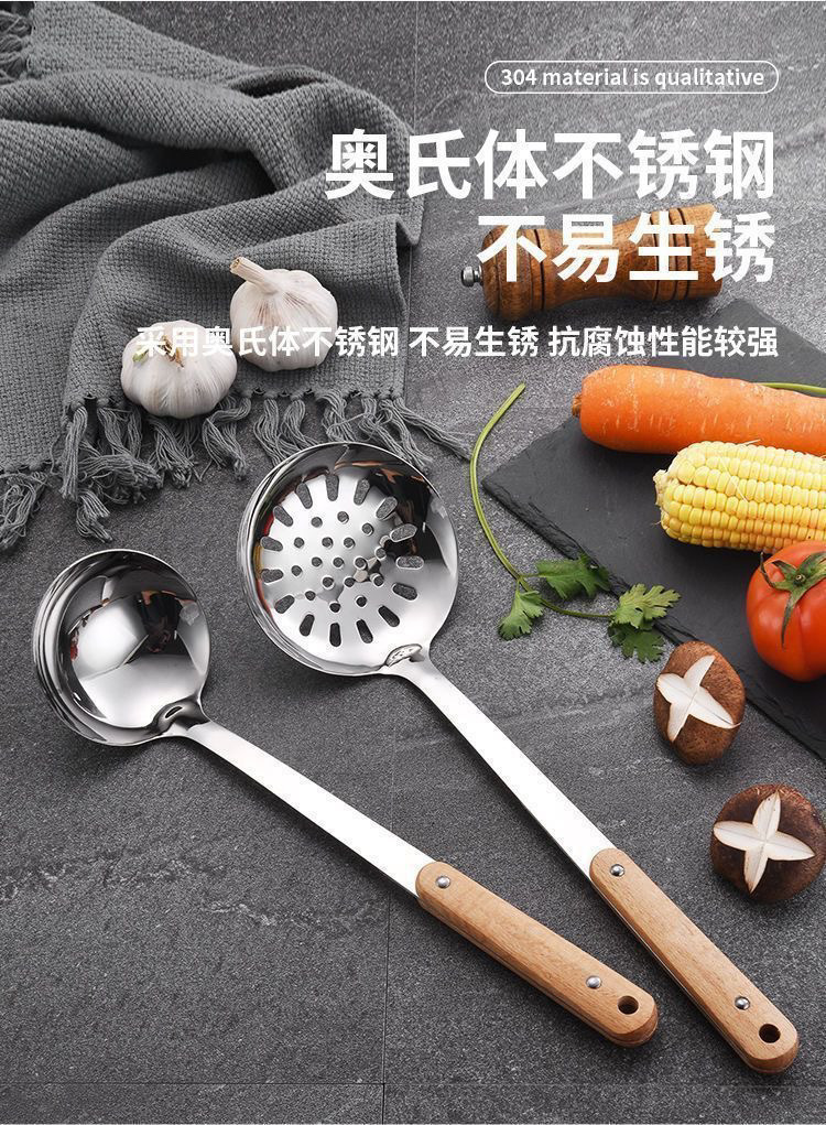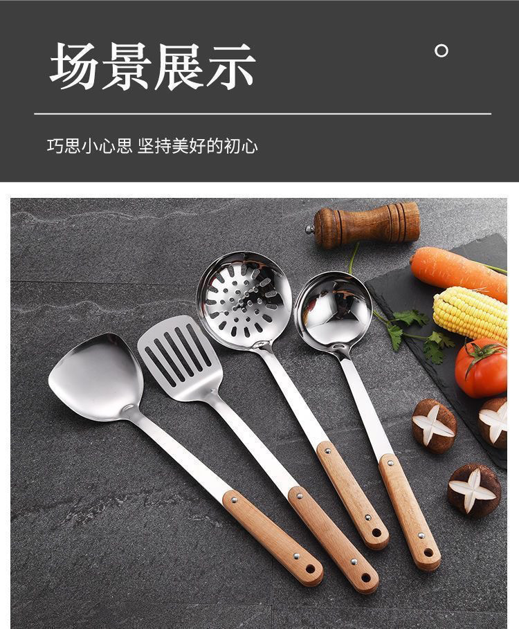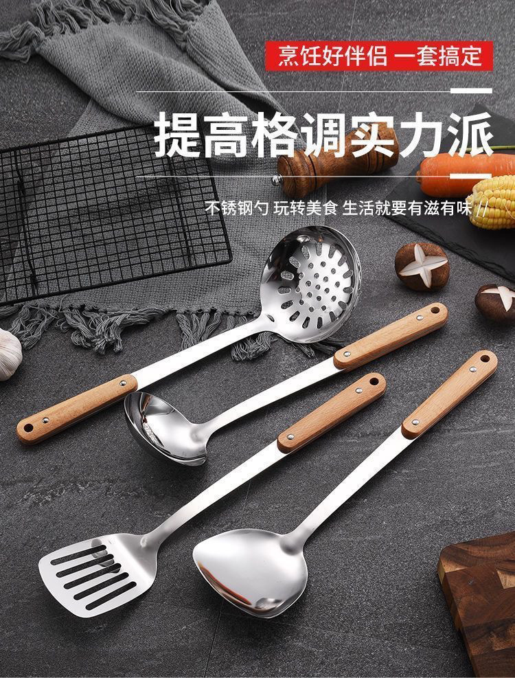 304 나무 손잡이 냄비 볶음 삽 가정용 스테인레스 스틸 냄비 삽 스푼 세트 주방 볶음 수프 스푼