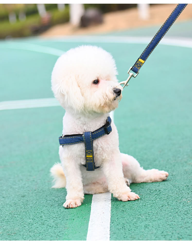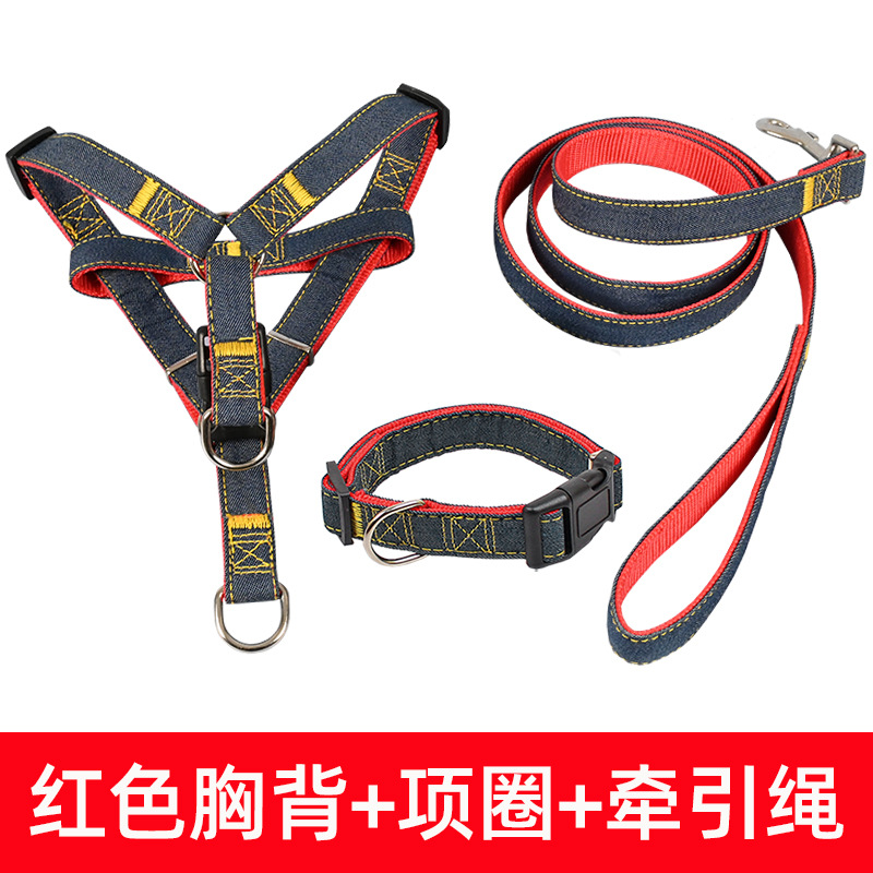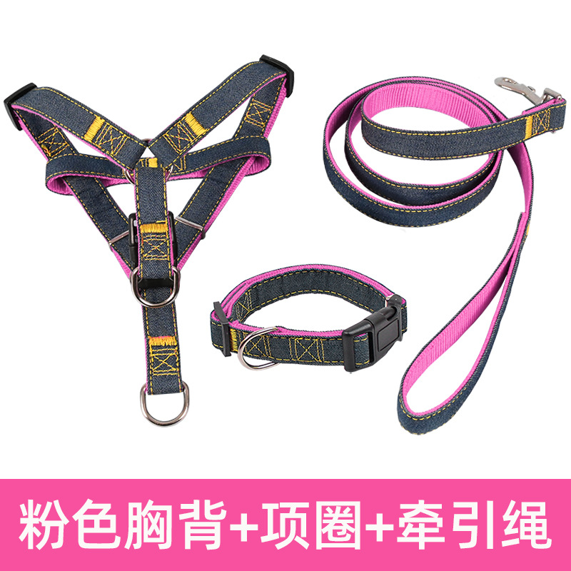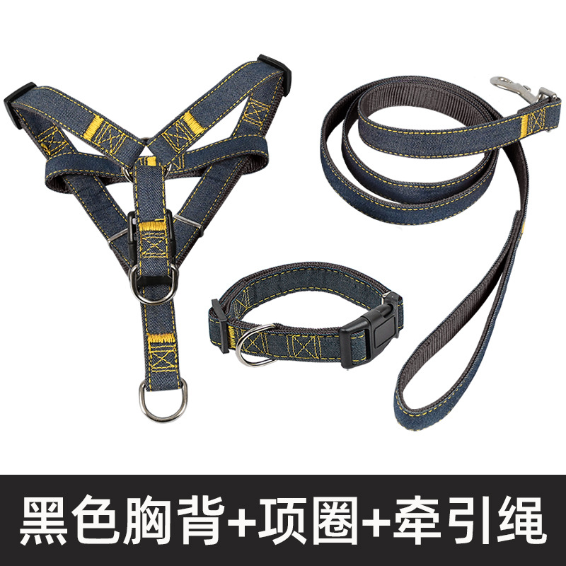 데님 개 가죽 큰 중간 작은 개 체인 개 목걸이 테디 개 걷는 밧줄 애완 동물 용품