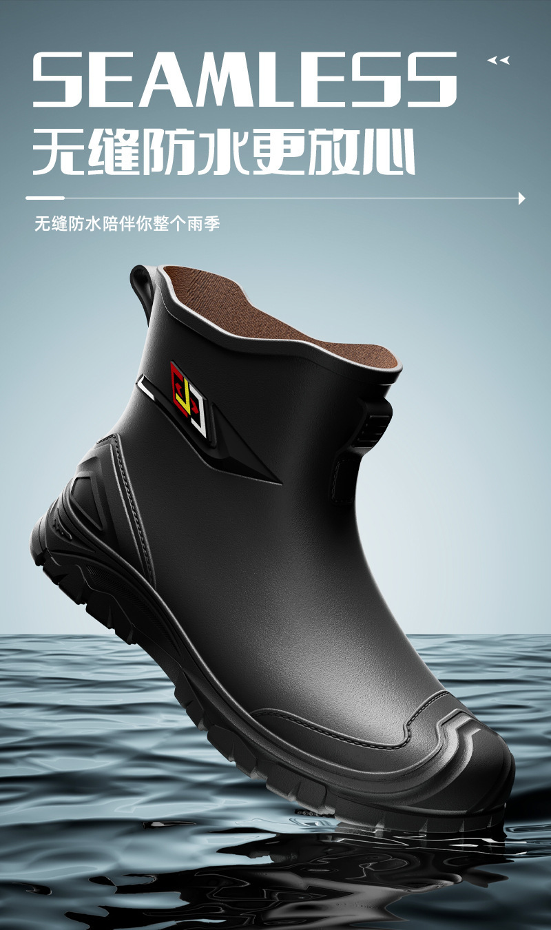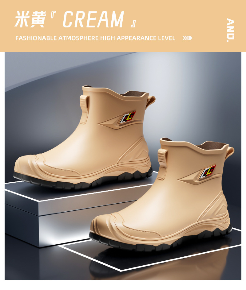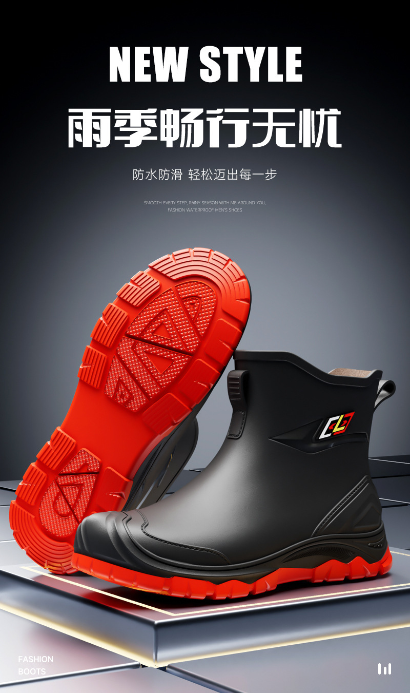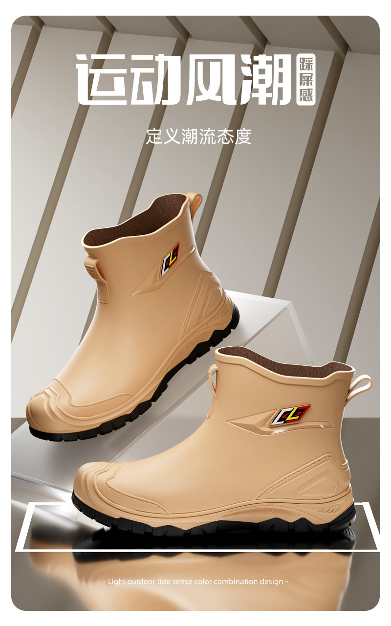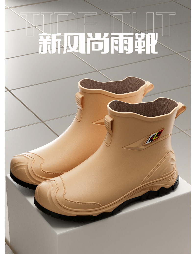 비 부츠 새로운 도착 미끄럼 방지 야외 트렌디 한 물 신발 2024 새로운 도착 장화 남성 낮은 짧은 튜브 레인 부츠 방수