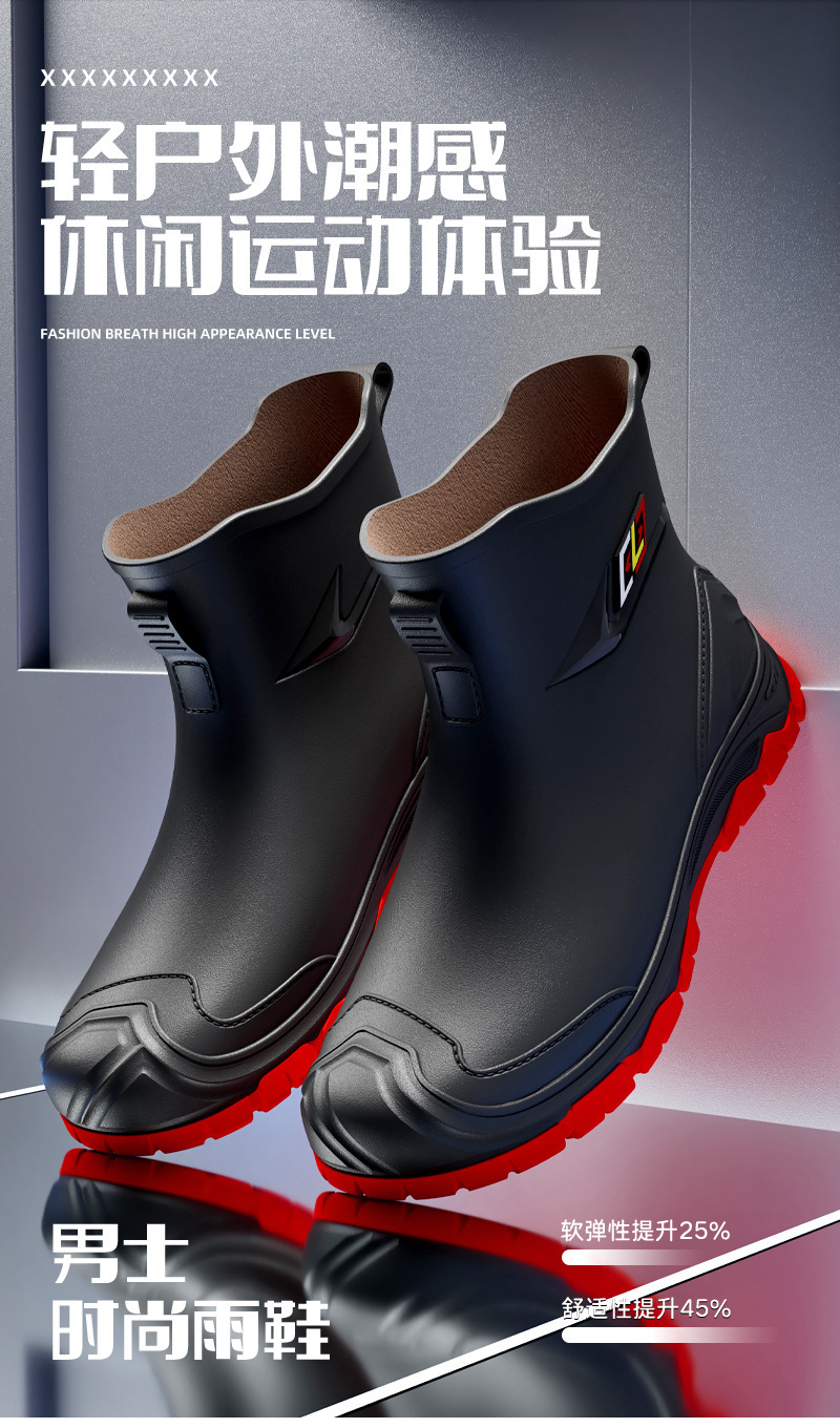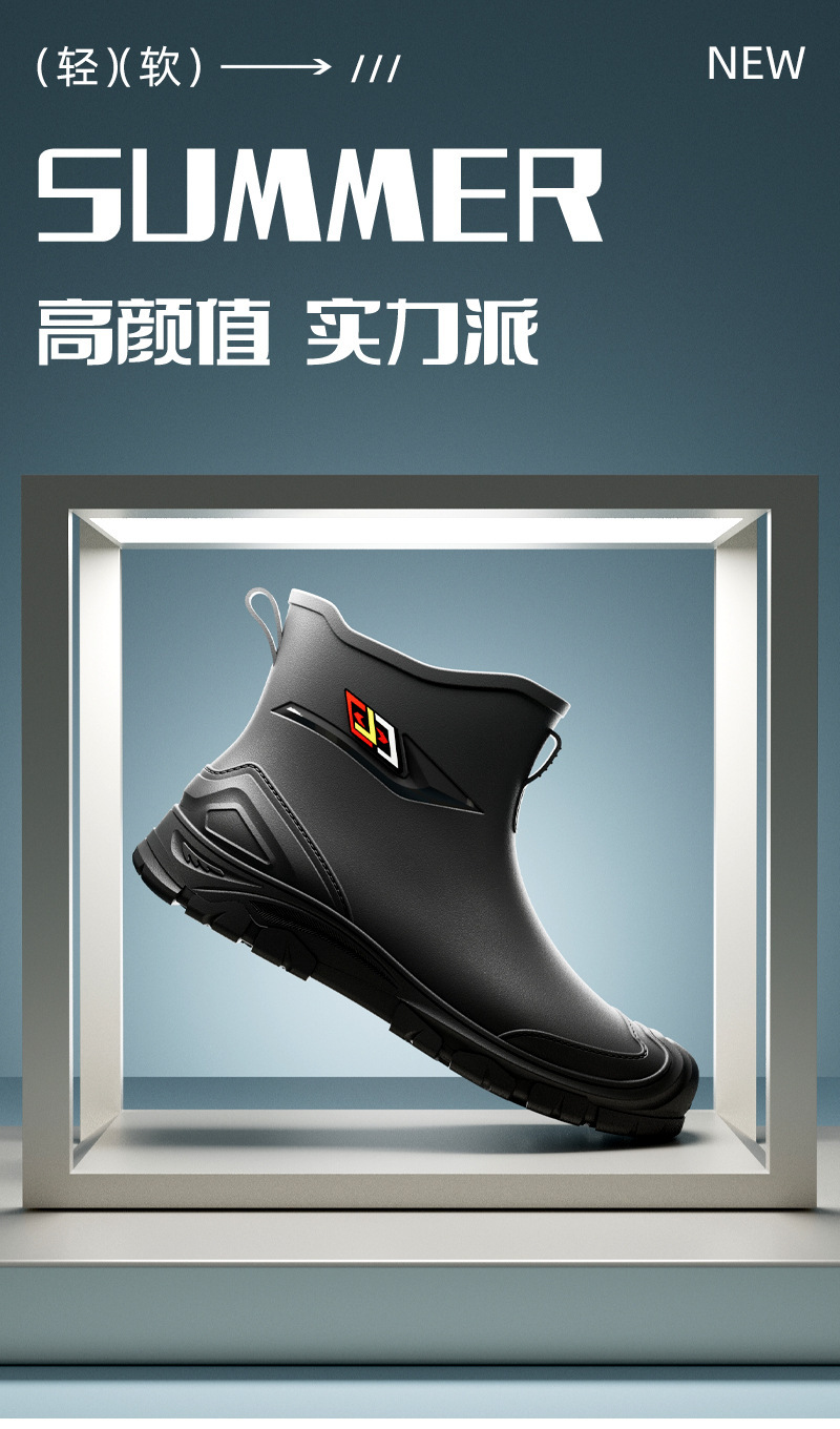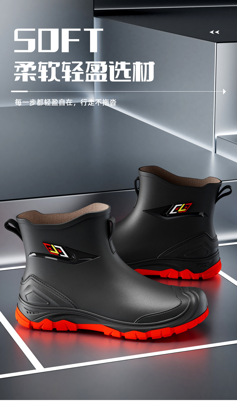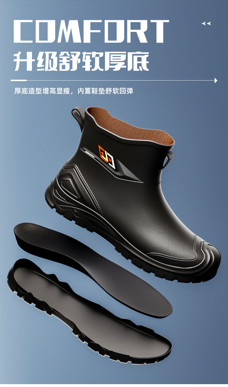 비 부츠 새로운 도착 미끄럼 방지 야외 트렌디 한 물 신발 2024 새로운 도착 장화 남성 낮은 짧은 튜브 레인 부츠 방수