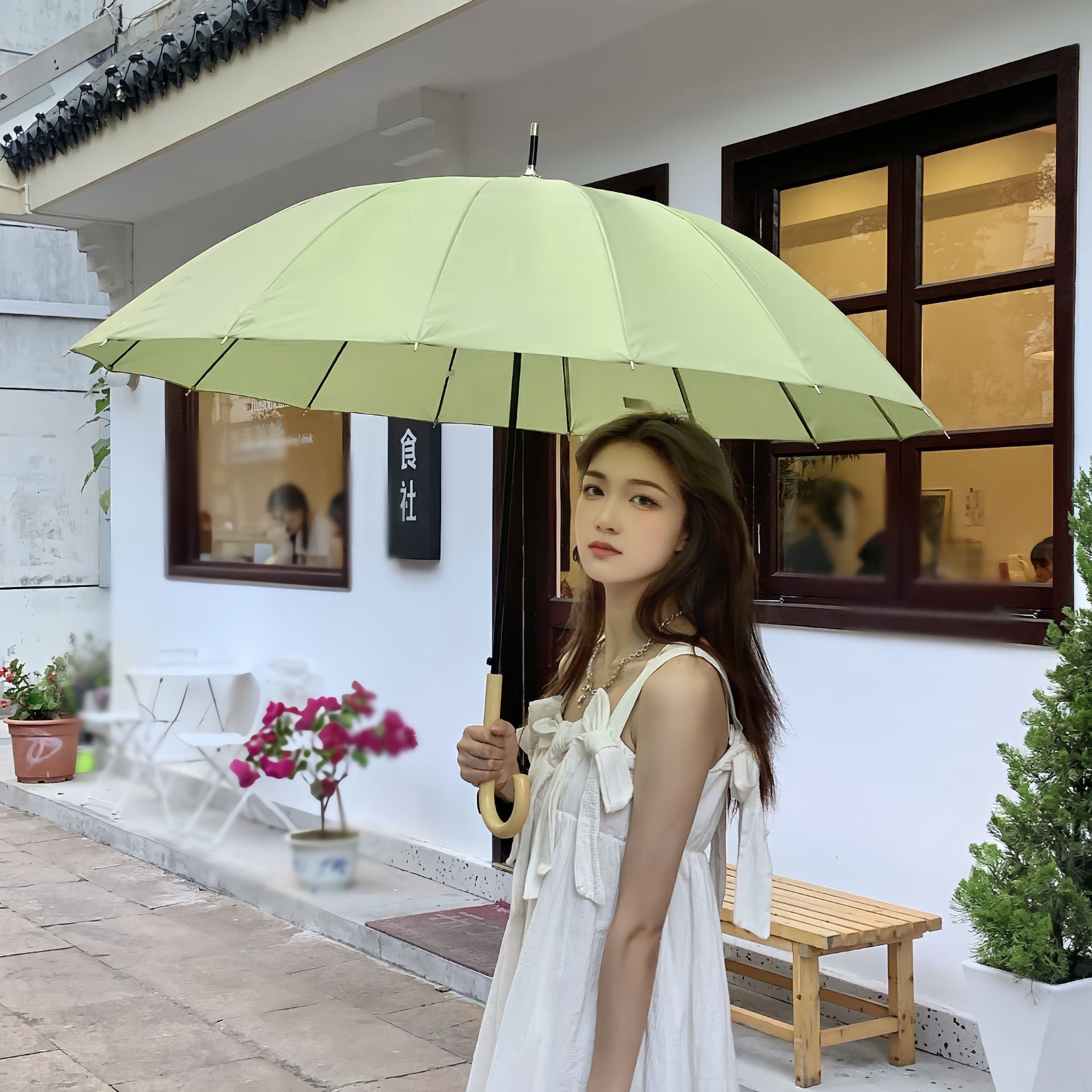 • 16가닥 검정색 가장자리 긴 손잡이 우산 - 두꺼운 우산 표면