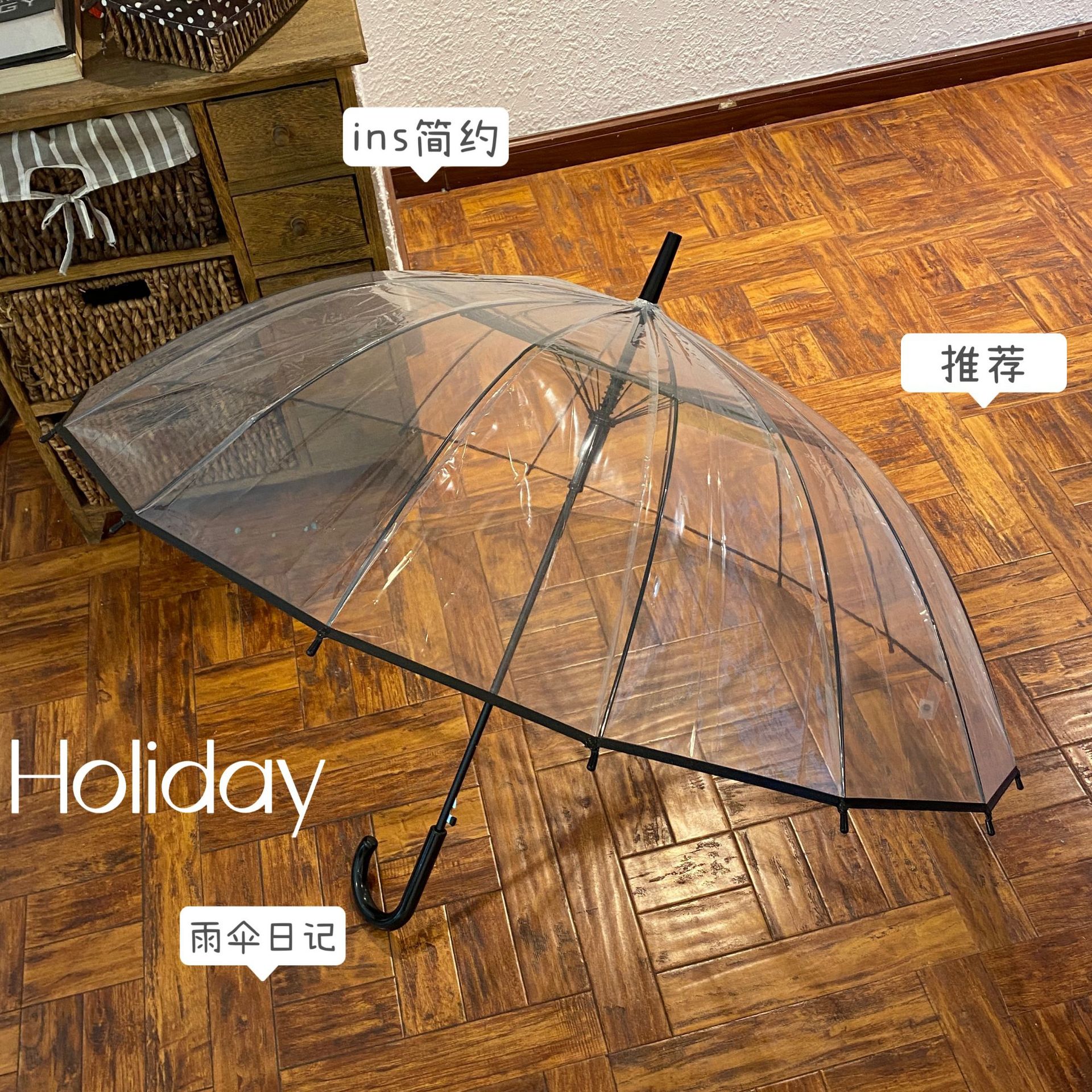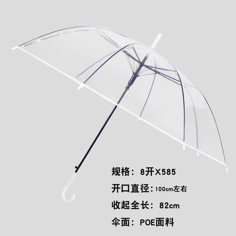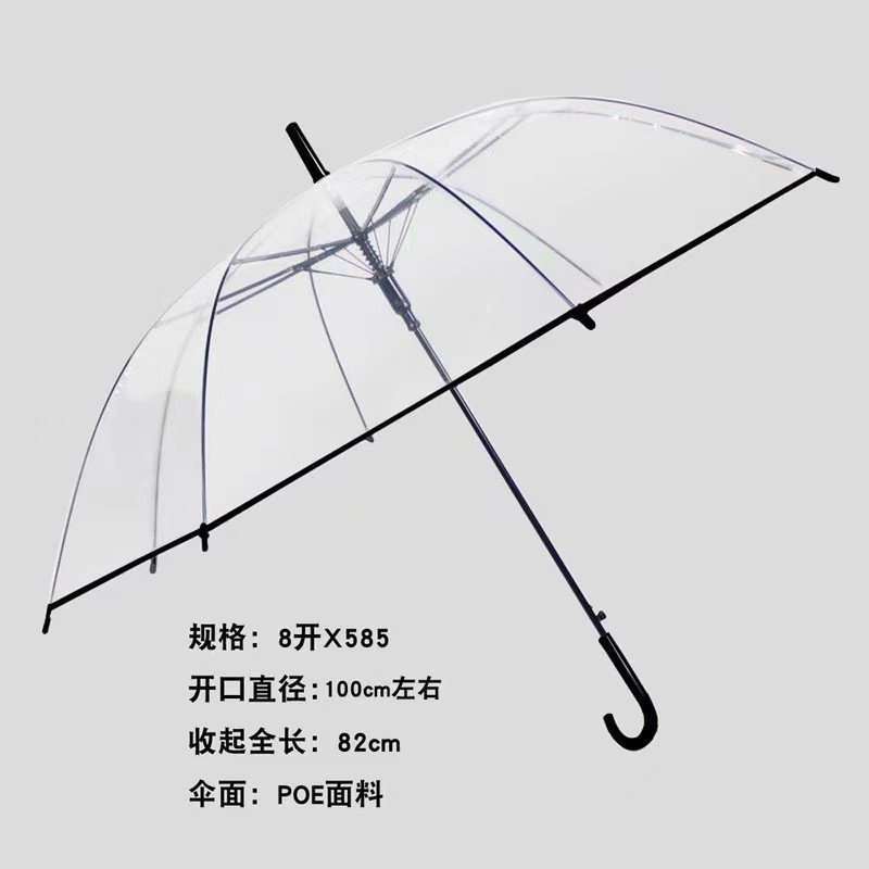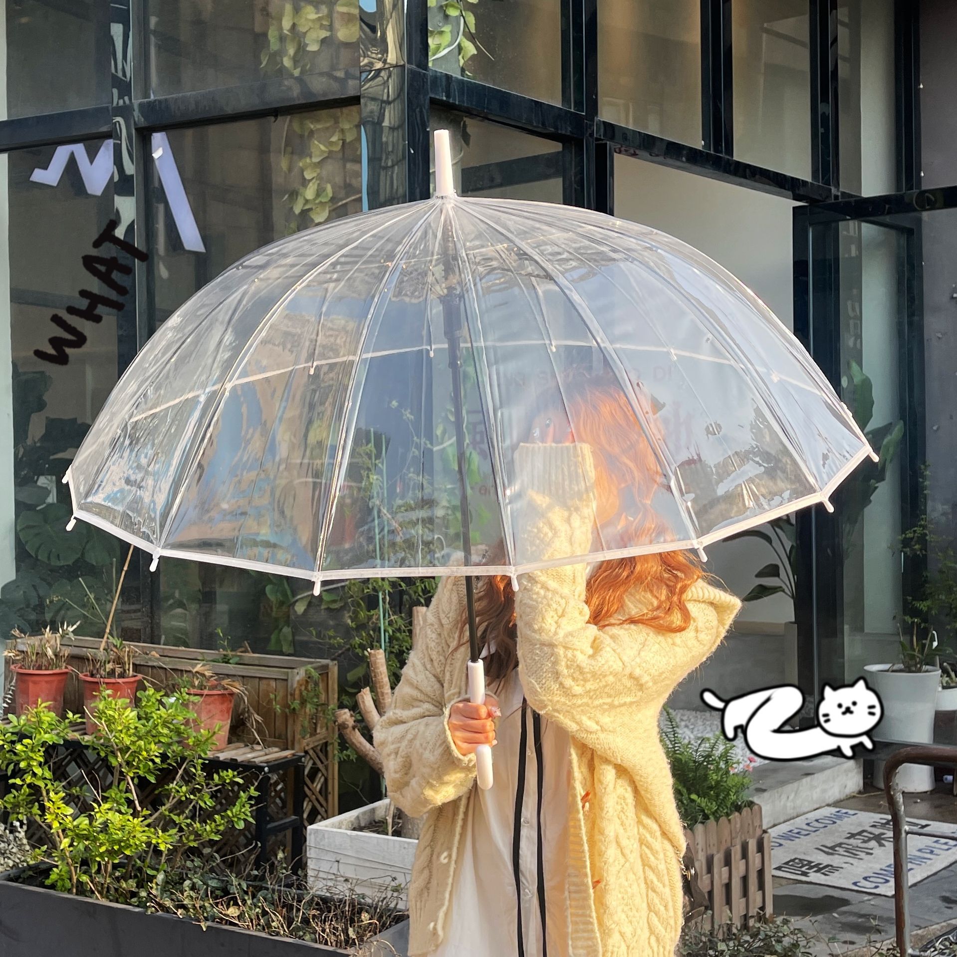• 8가닥 완전 투명 긴 손잡이 우산 - 두꺼운 우산 표면