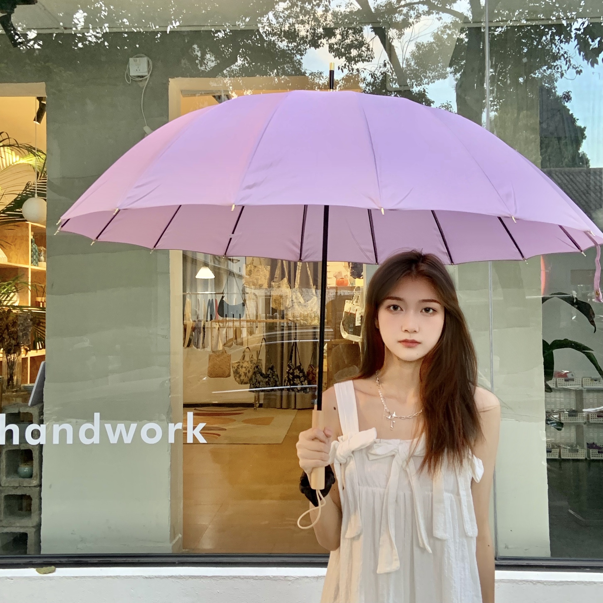 16 뼈 자동 긴 손잡이 우산 한국 작은 신선한 간단한 직선 손잡이 우산 도매 스트레이트 막대 광고 우산 로고