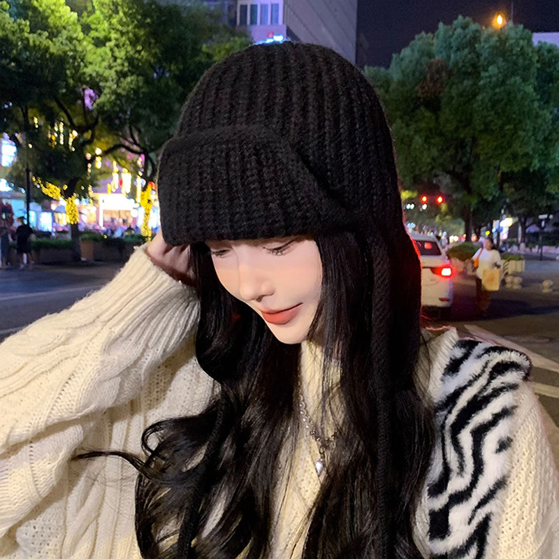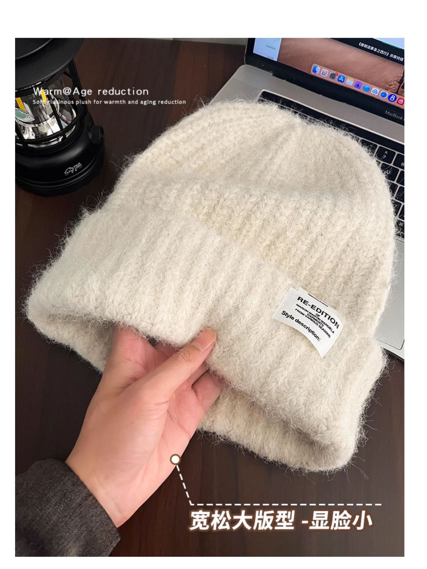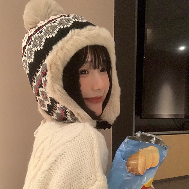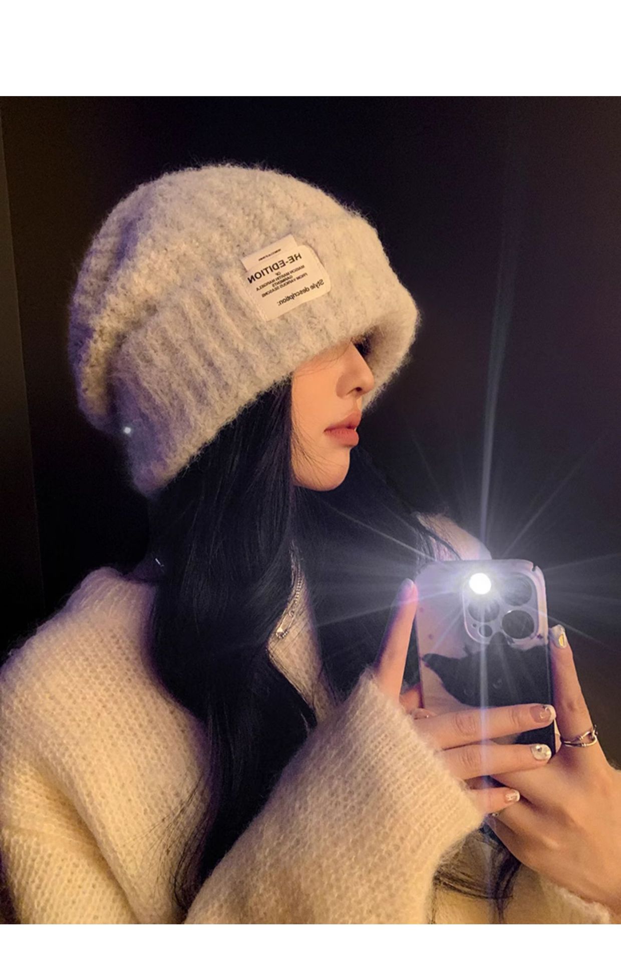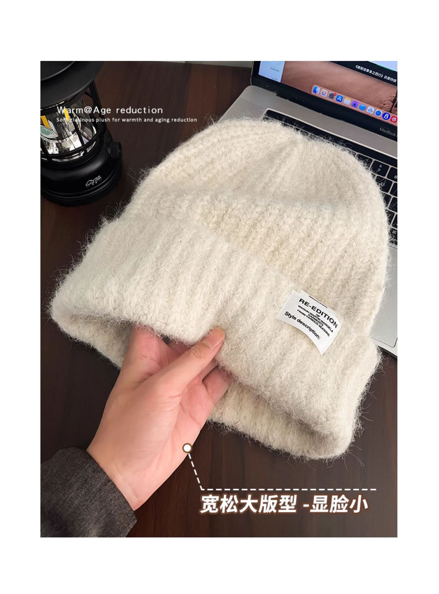 여성용 모자 2025 신상 겨울 따뜻한 푸티드 울 모자, 큰 머리둘레, 얼굴이 보이는 작고 루즈한 귀 보호 니트 모자, 트렌디스토어 가기