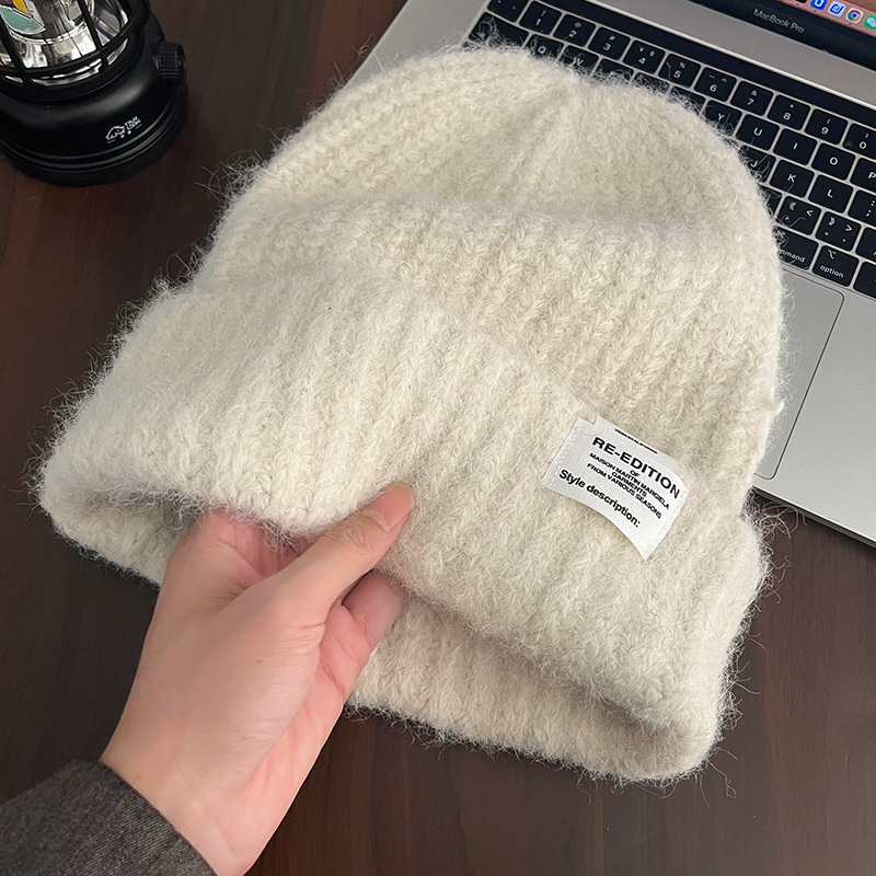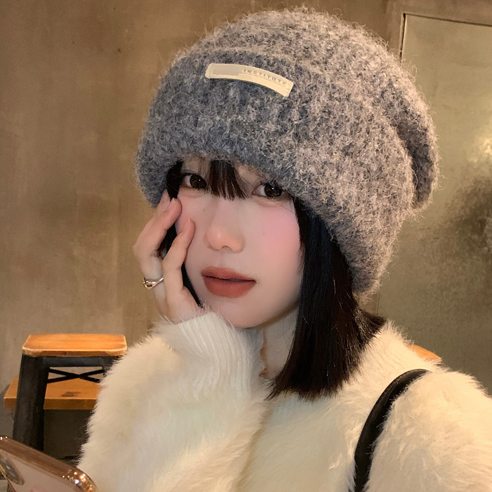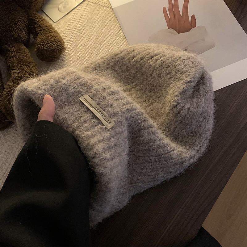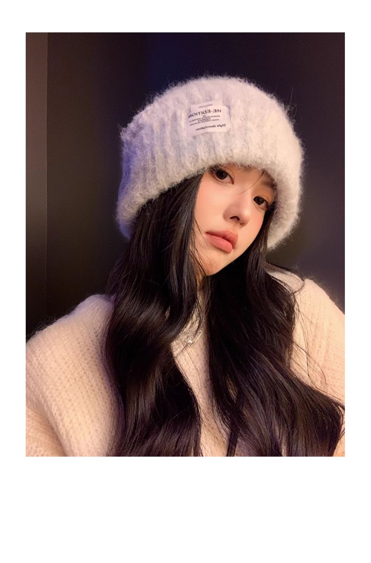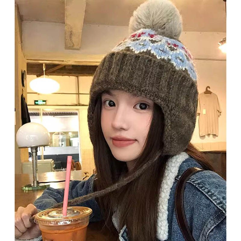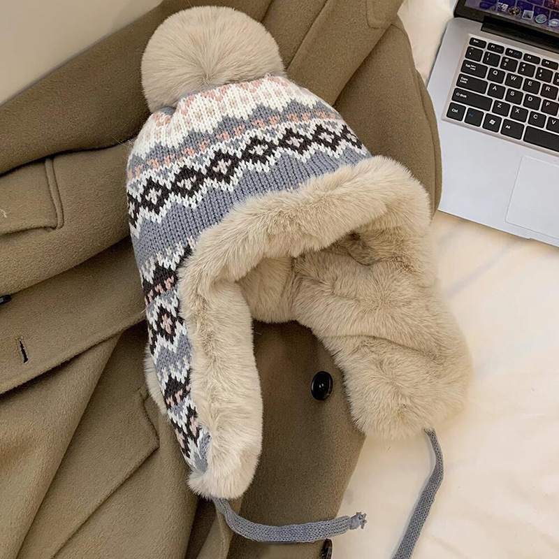 여성용 모자 2025 신상 겨울 따뜻한 푸티드 울 모자, 큰 머리둘레, 얼굴이 보이는 작고 루즈한 귀 보호 니트 모자, 트렌디스토어 가기