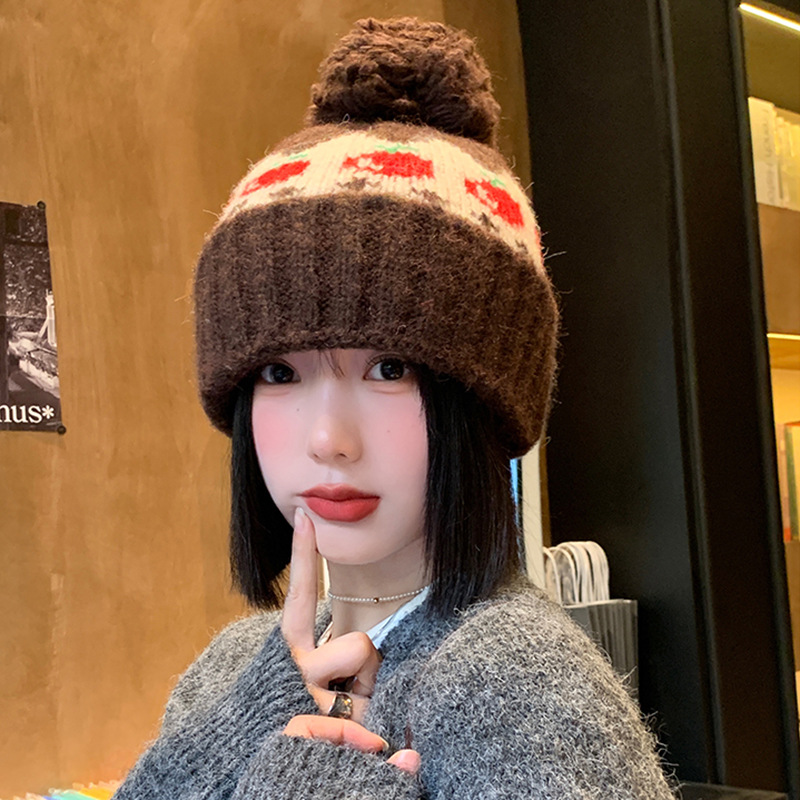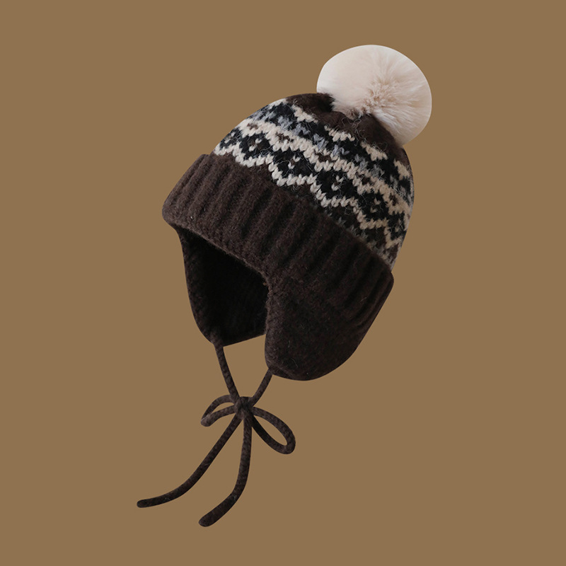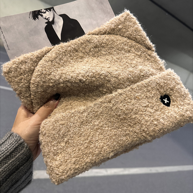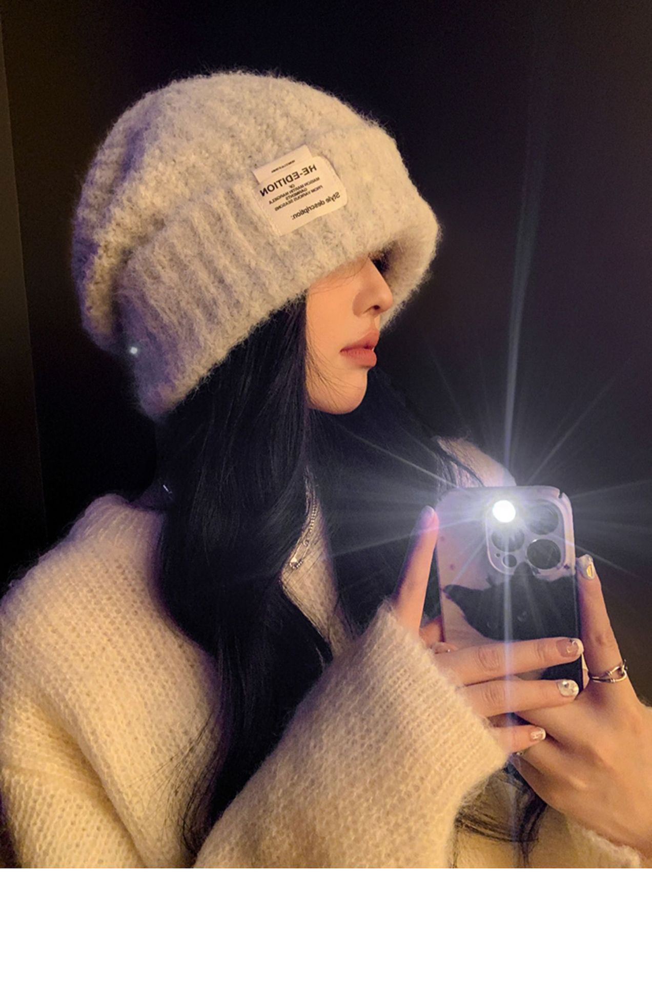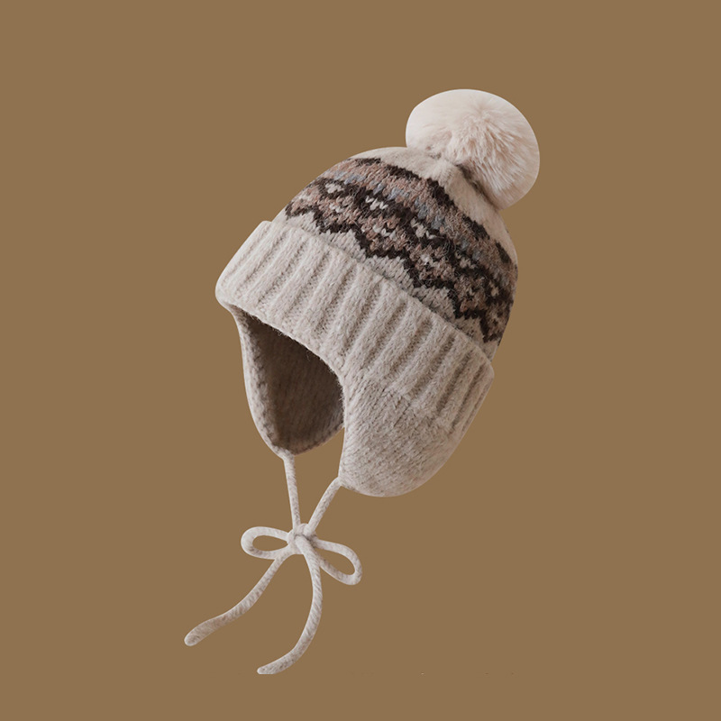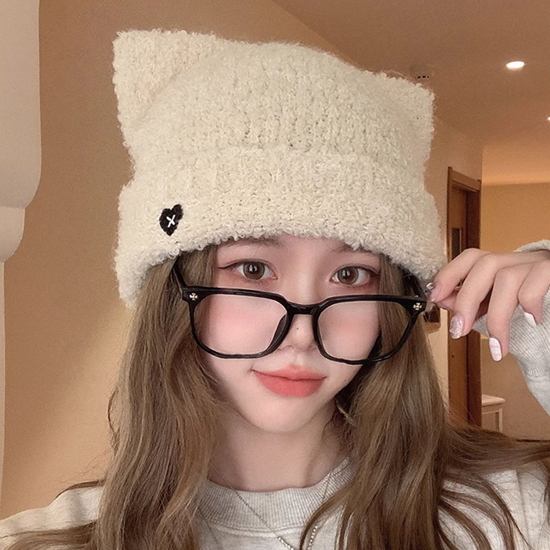 여성용 모자 2025 신상 겨울 따뜻한 푸티드 울 모자, 큰 머리둘레, 얼굴이 보이는 작고 루즈한 귀 보호 니트 모자, 트렌디스토어 가기