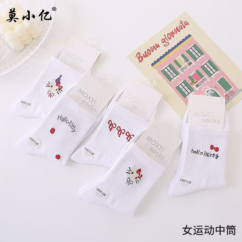 새로운 여성 양말 일본 패션 스포츠 양말 만화 INS 조수 흰색 양말 Liaoyuan 양말 제조 업체 도매스토어 가기