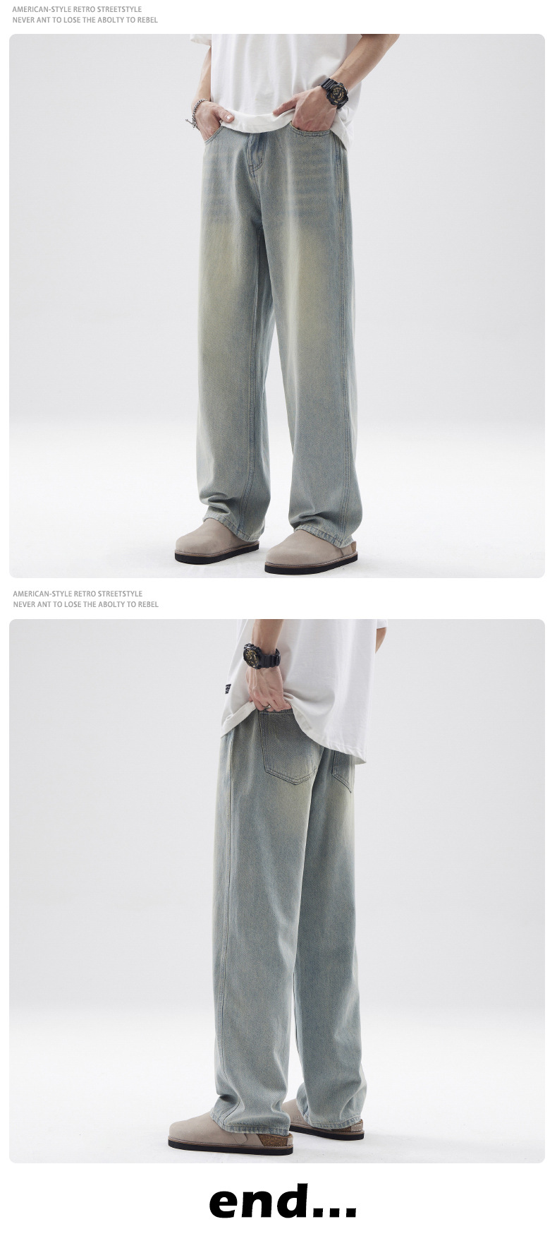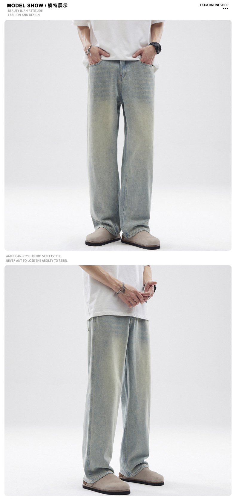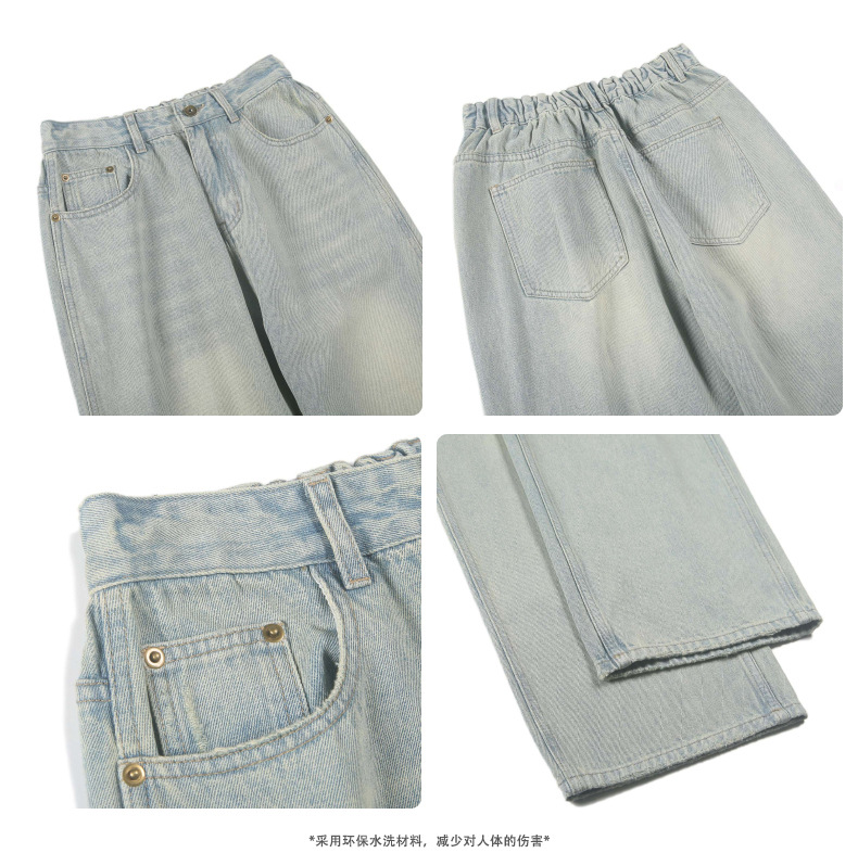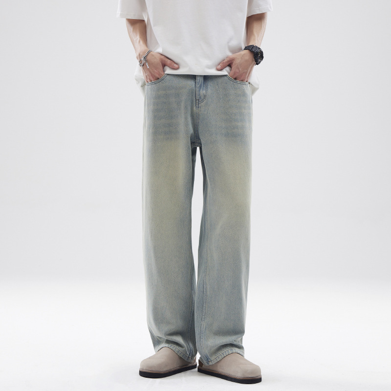 JIAMU 아메리칸 오버사이즈 레트로 워싱 디스트레스드 청바지 남성용 배기 청바지 스트레이트 루즈 와이드 레그스토어 가기