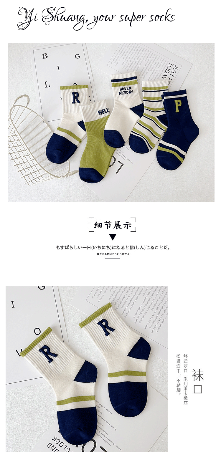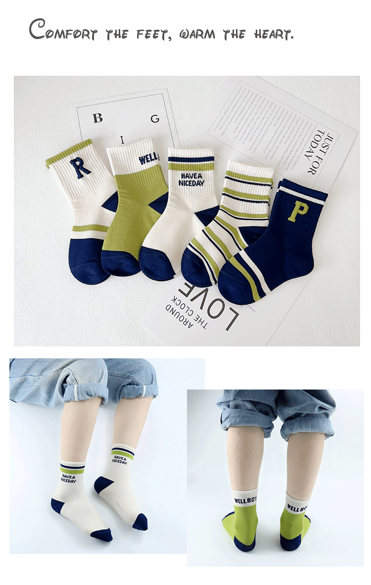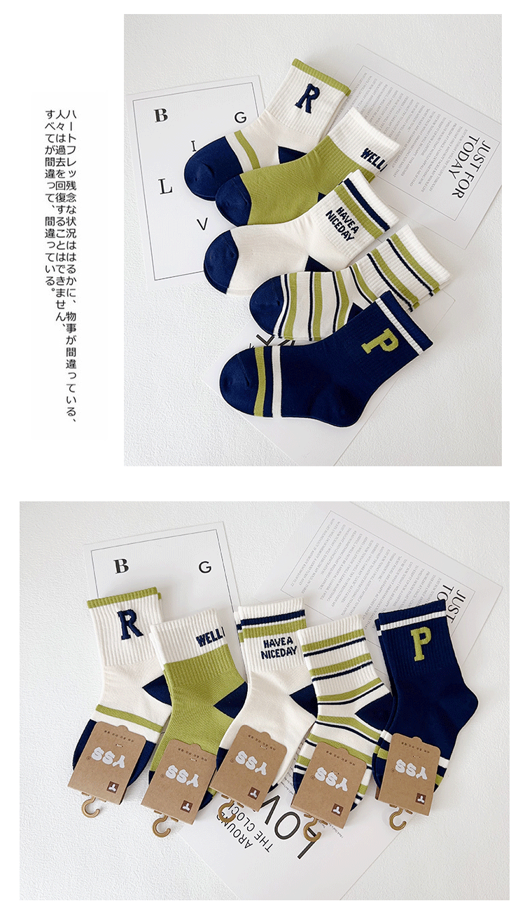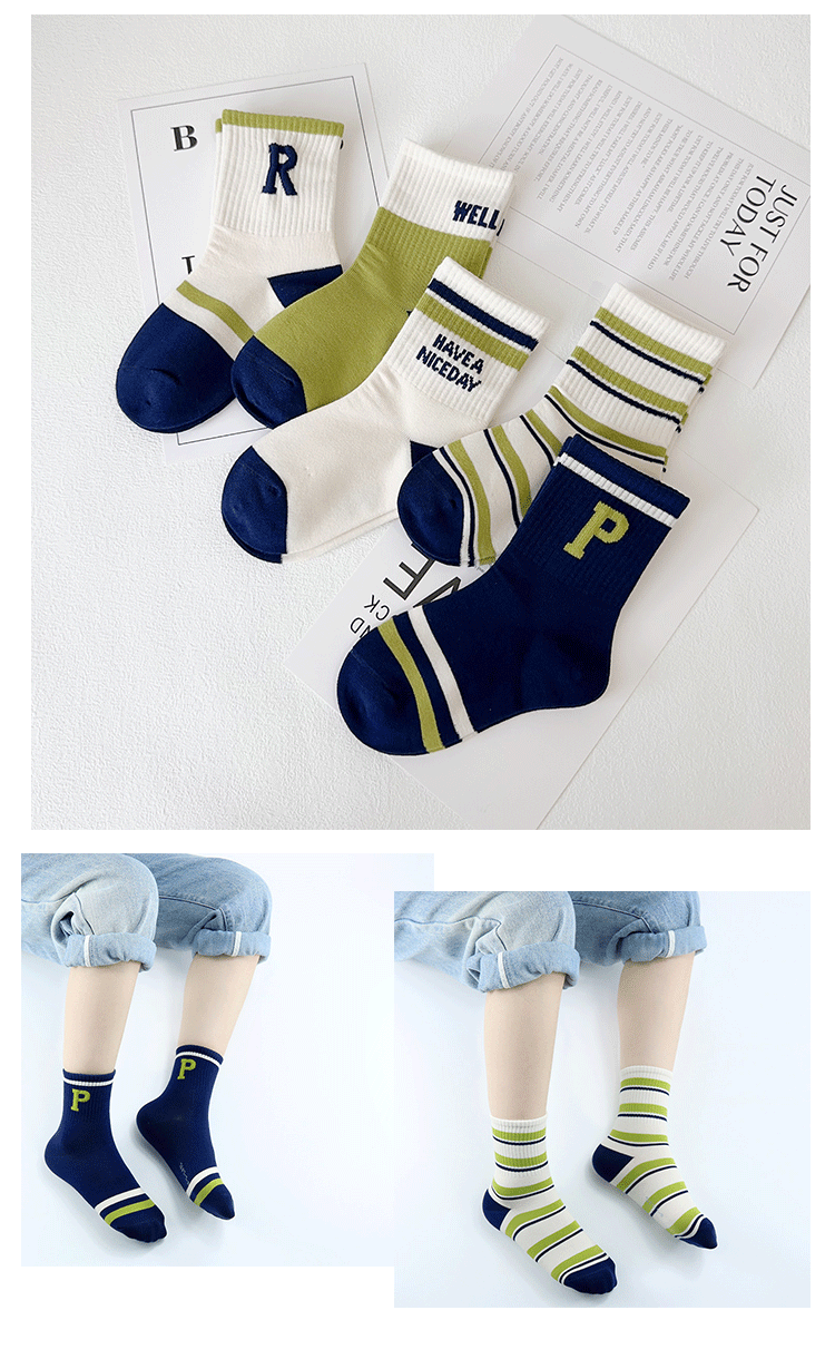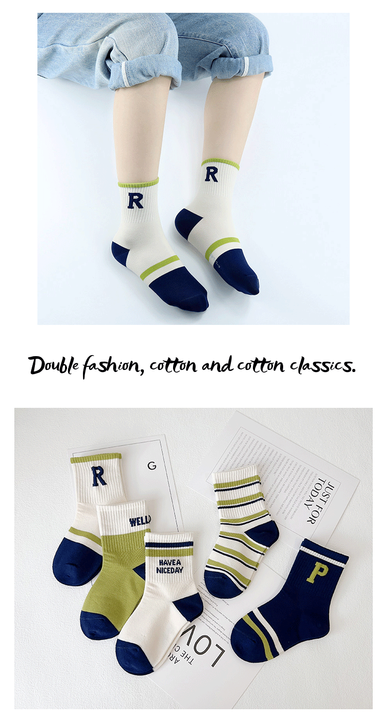 Yi Pair 어린이 양말 가을과 겨울 새로운 유행 브랜드 편지 중간 튜브 양말 빗 코튼 보이즈 스포츠 양말 학생 면화 양말