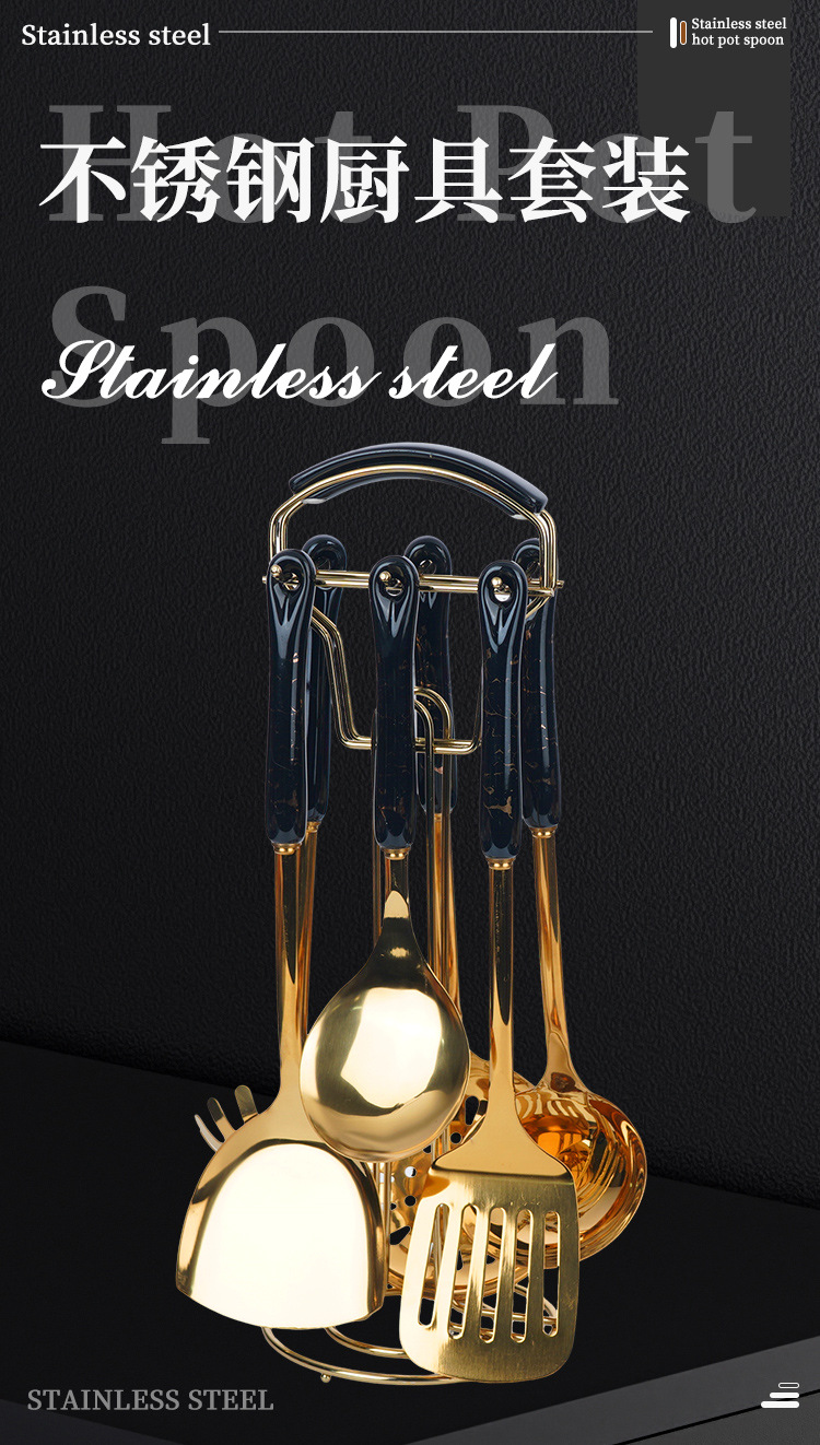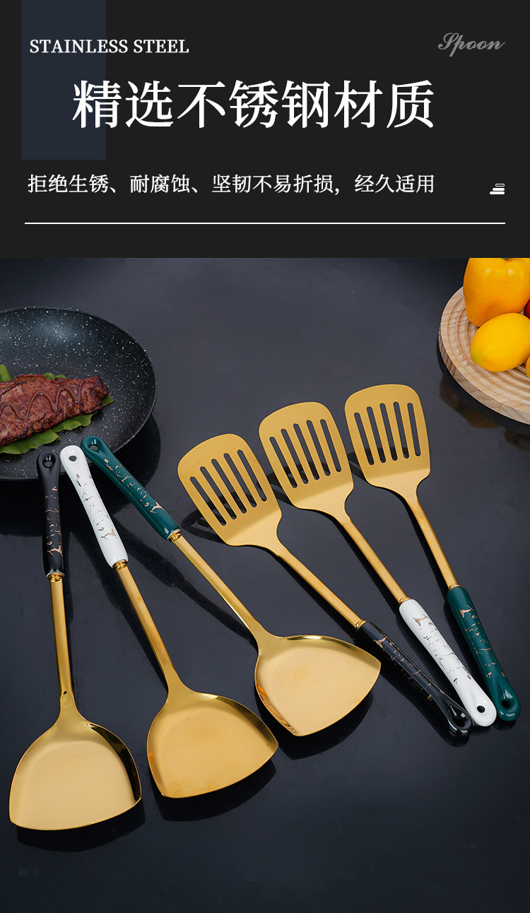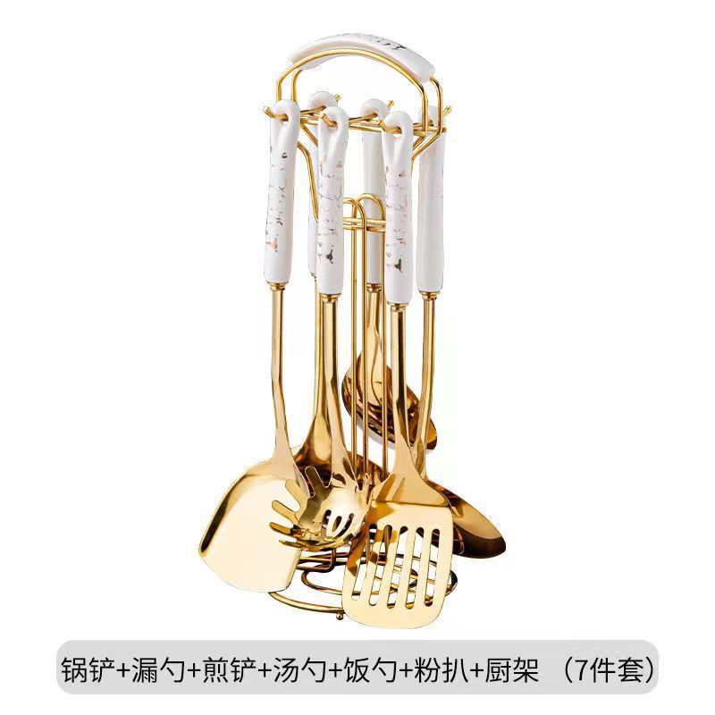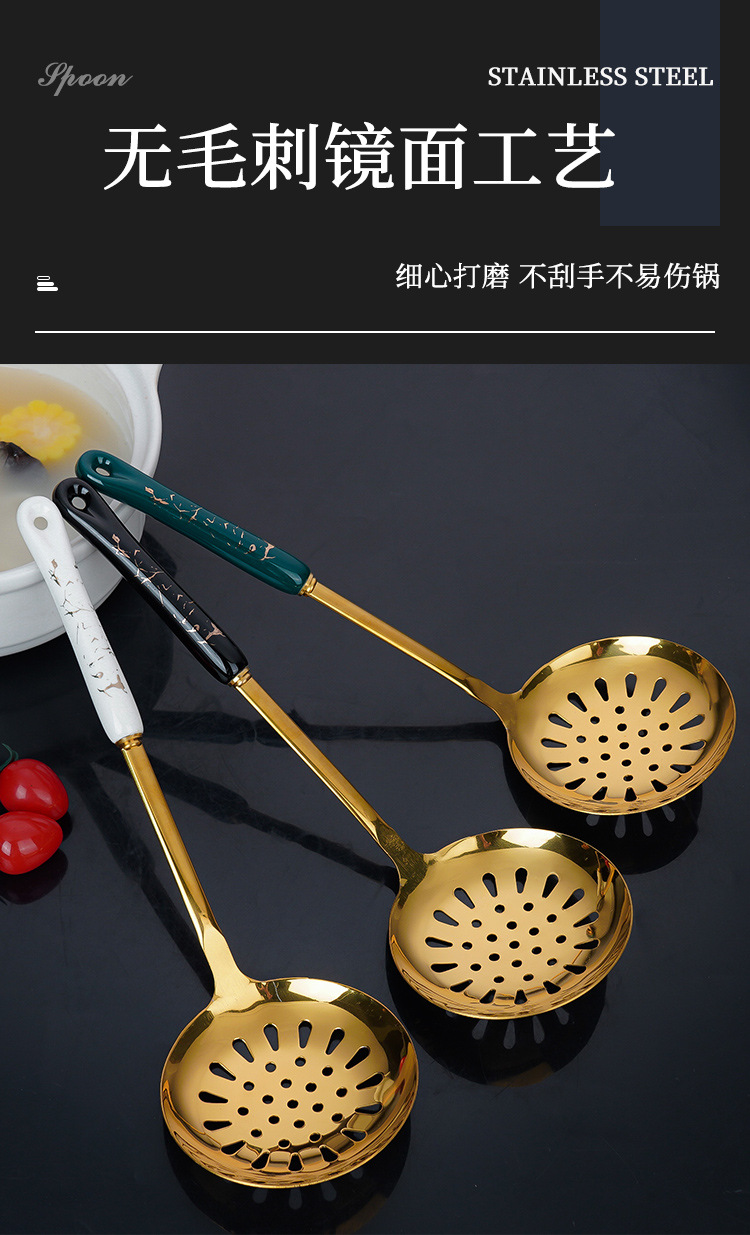 스테인레스 스틸 주걱 도매 수프 스푼 세트 주방 확장형 화상 방지 튀김 스푼 주방용품 주걱 7종 세트 세라믹 소쿠리스토어 가기