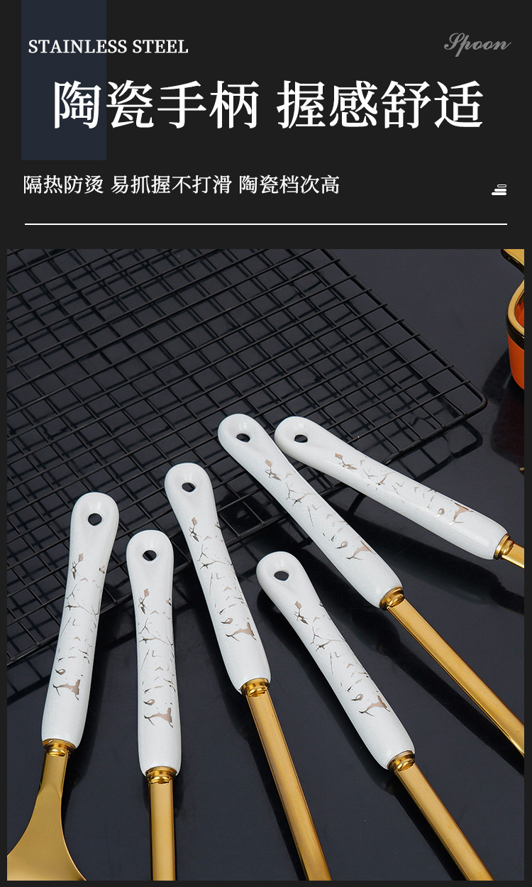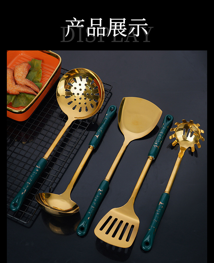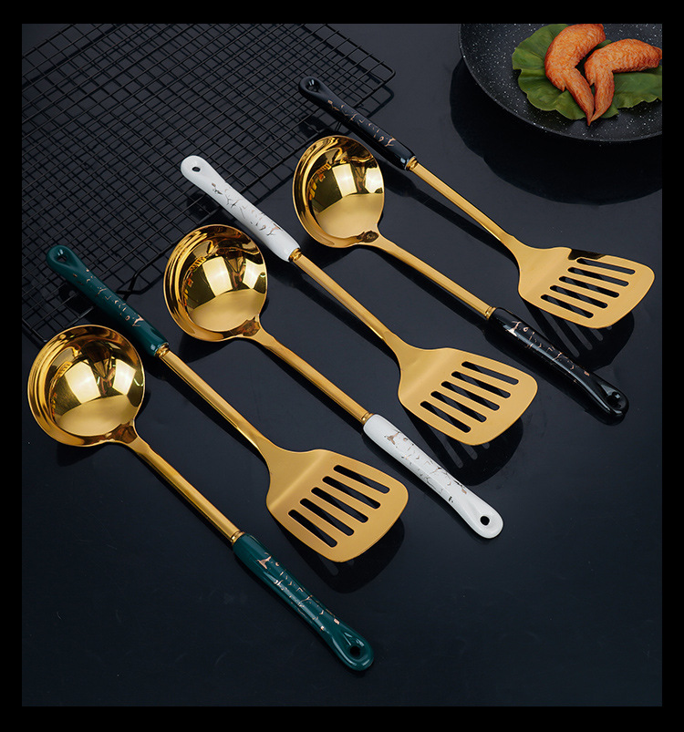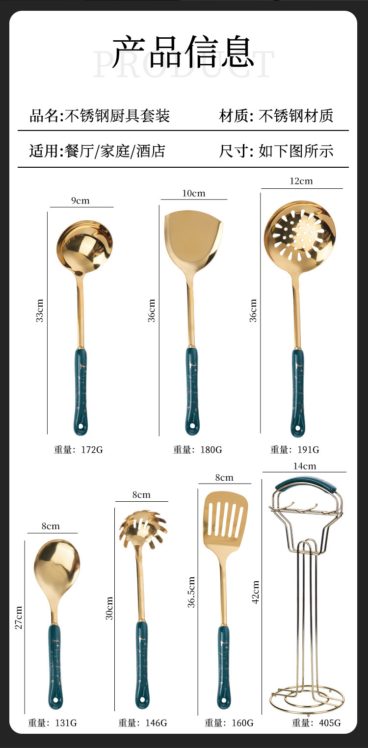 스테인레스 스틸 주걱 도매 수프 스푼 세트 주방 확장형 화상 방지 튀김 스푼 주방용품 주걱 7종 세트 세라믹 소쿠리스토어 가기
