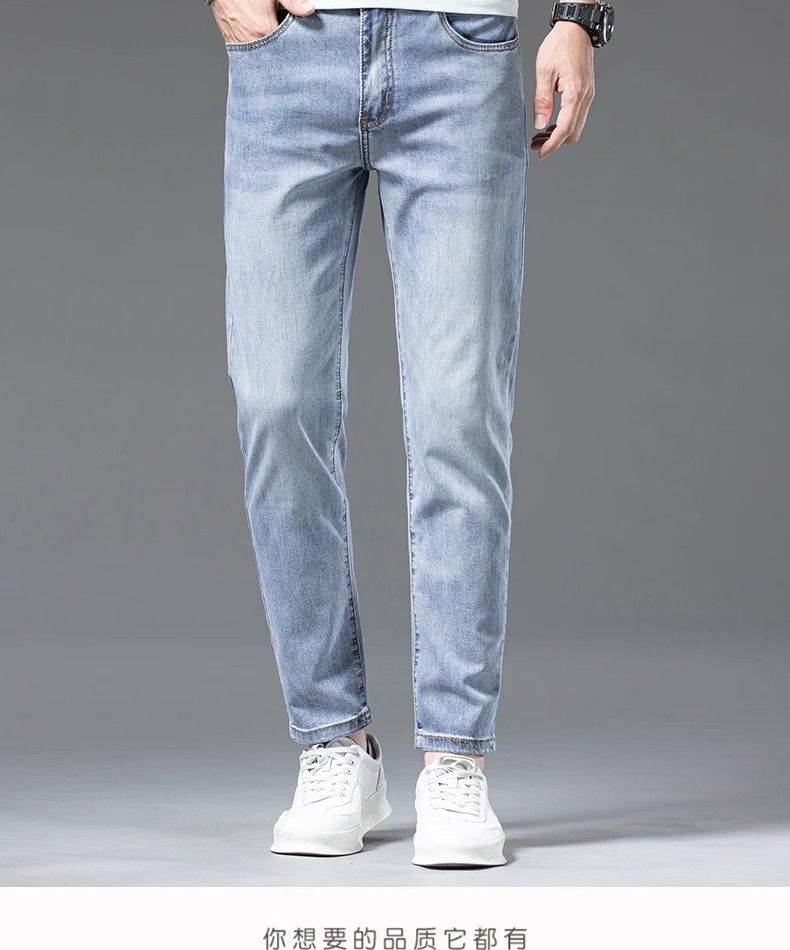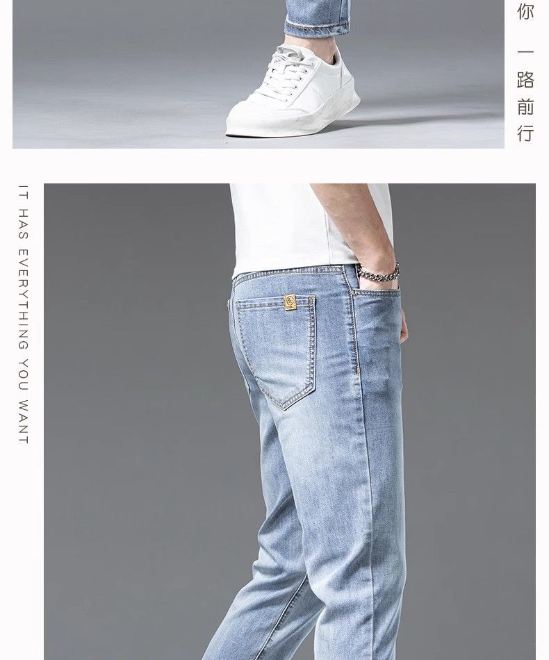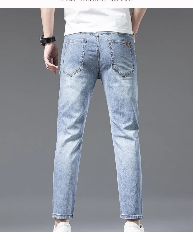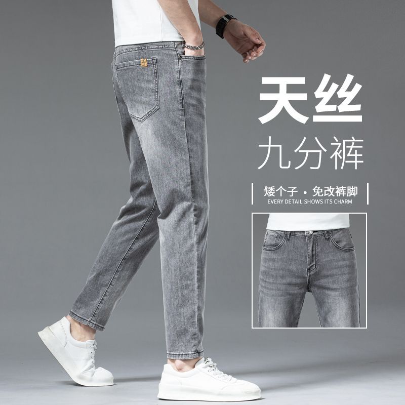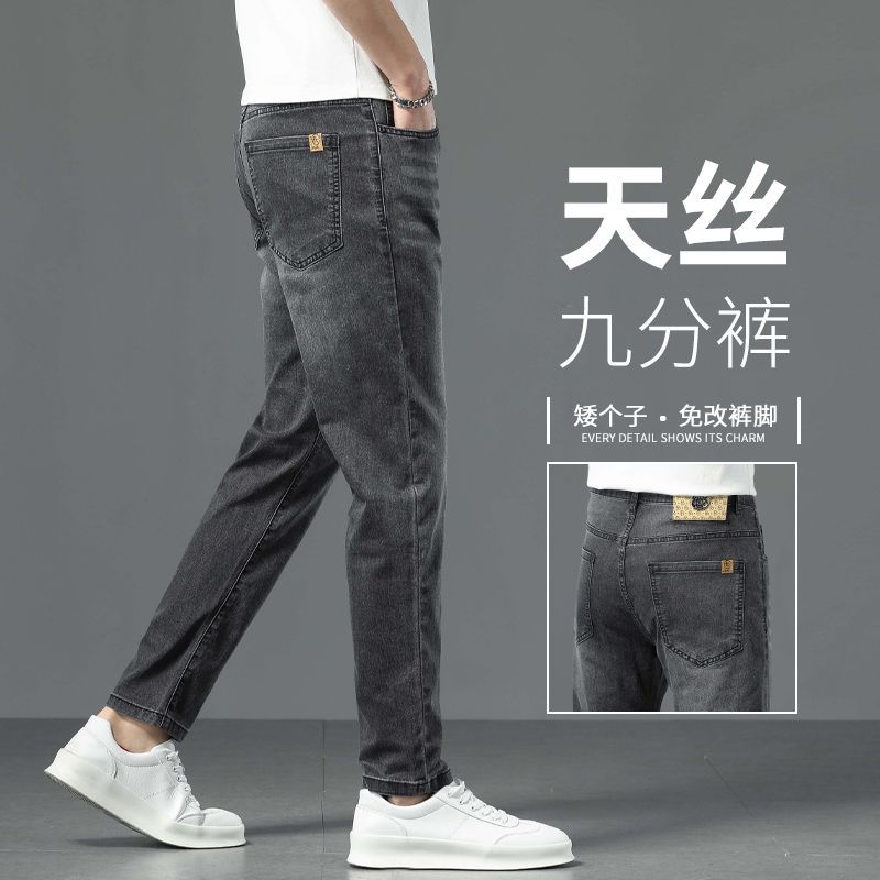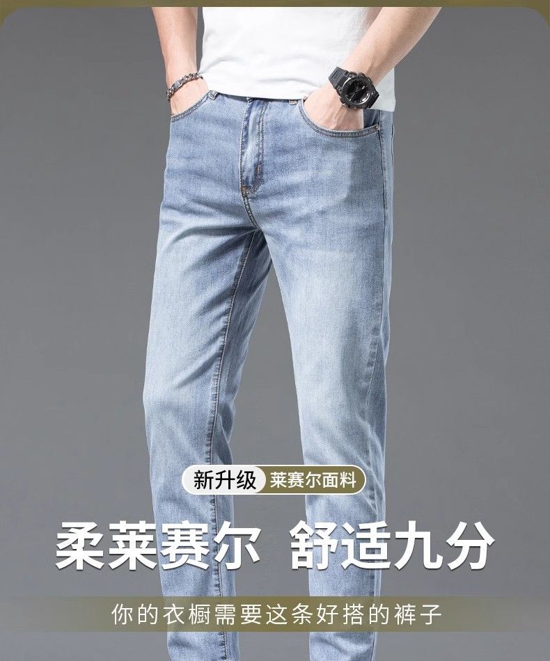 아이스 실크 청바지 남성용 여름 얇은 자른 바지 2024 새로운 스타일 스키니 바지 유행 브랜드 하이 엔드 텐셀 캐주얼 바지스토어 가기