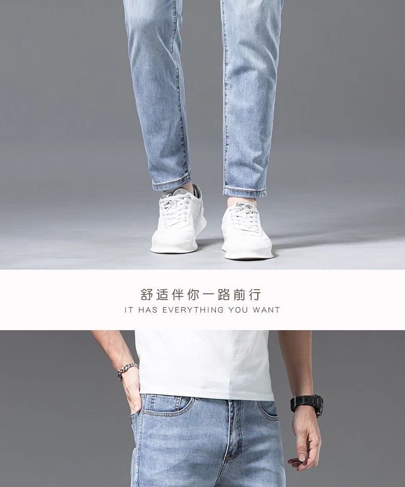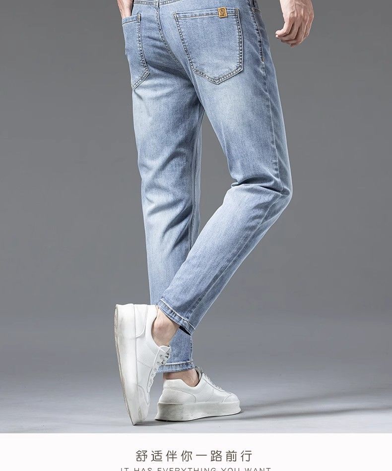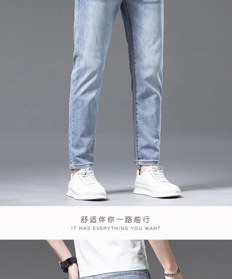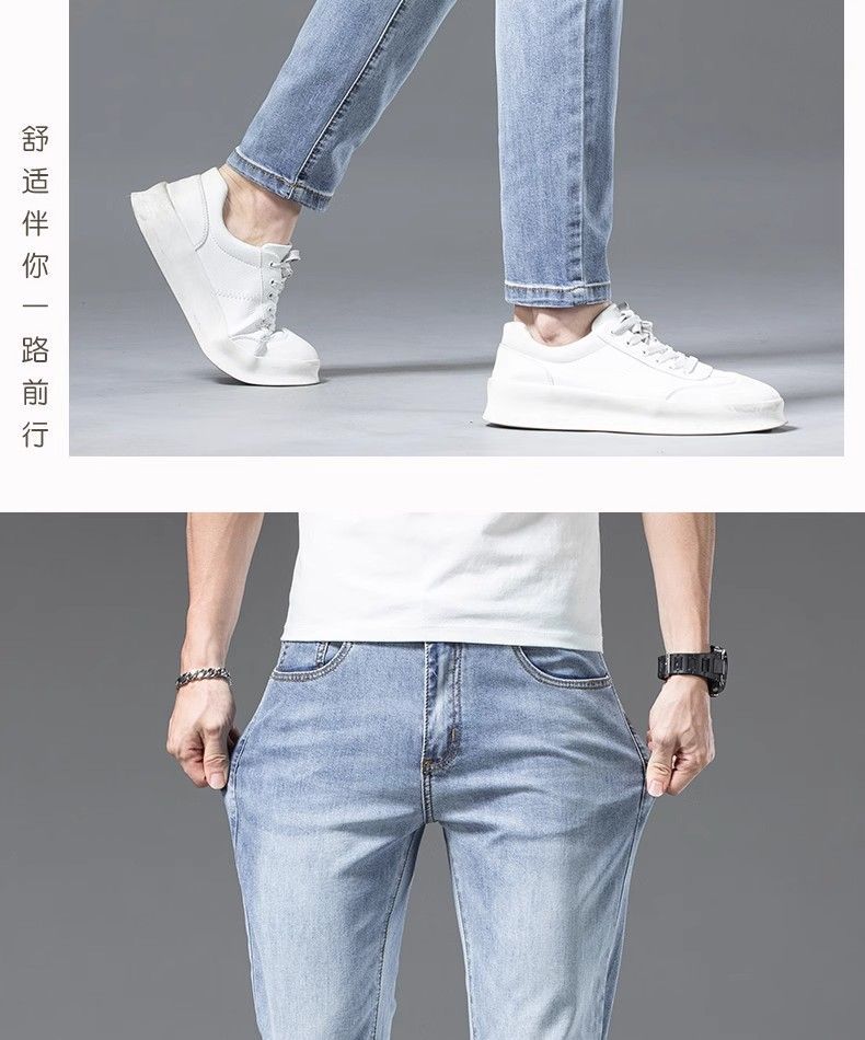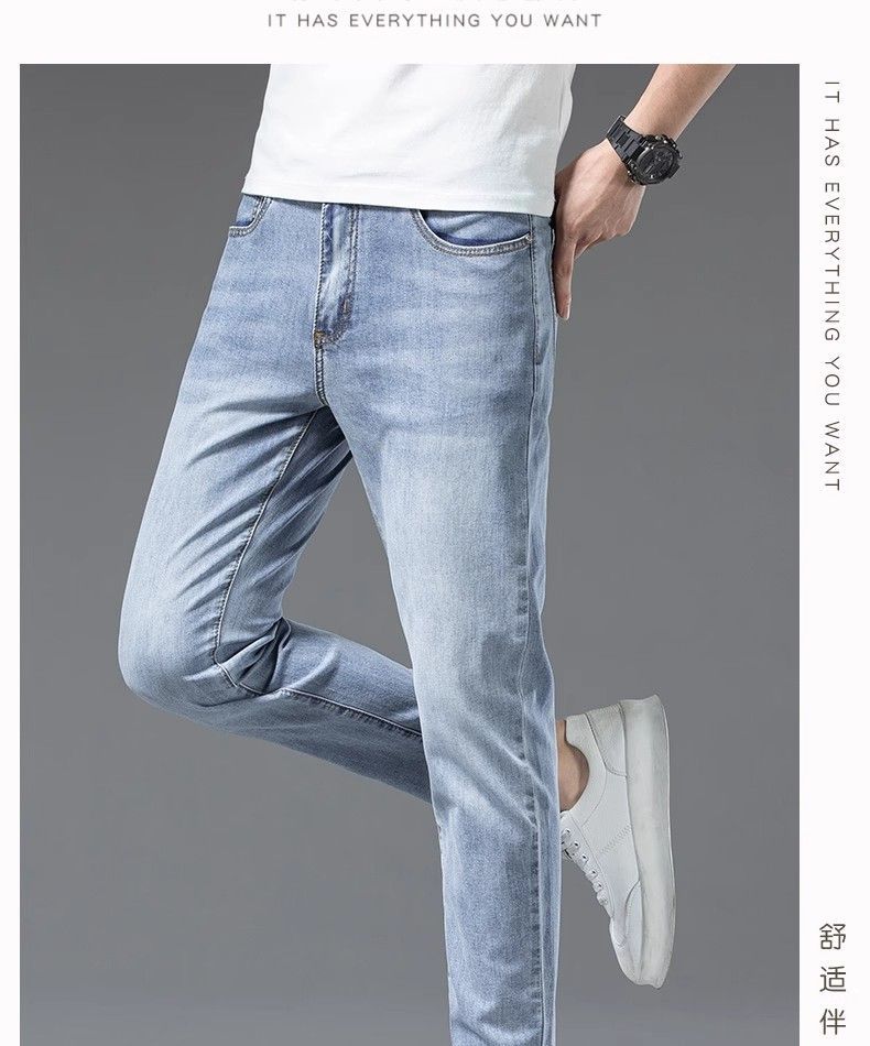 아이스 실크 청바지 남성용 여름 얇은 자른 바지 2024 새로운 스타일 스키니 바지 유행 브랜드 하이 엔드 텐셀 캐주얼 바지스토어 가기