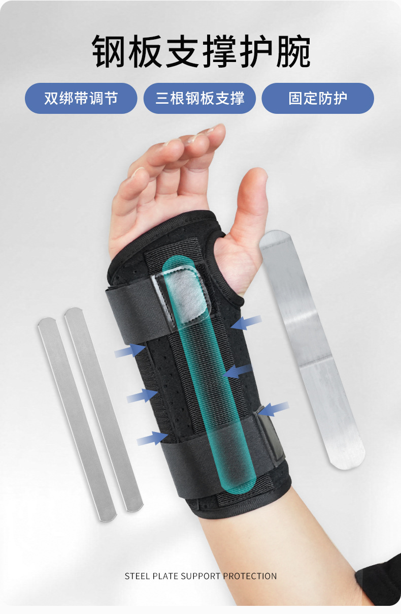 스틸 플레이트 지원 손목 가드 남성과 여성의 염좌 손목 가드 힘줄 시스 관절 고정 지원 통기성 얇은 손 가드