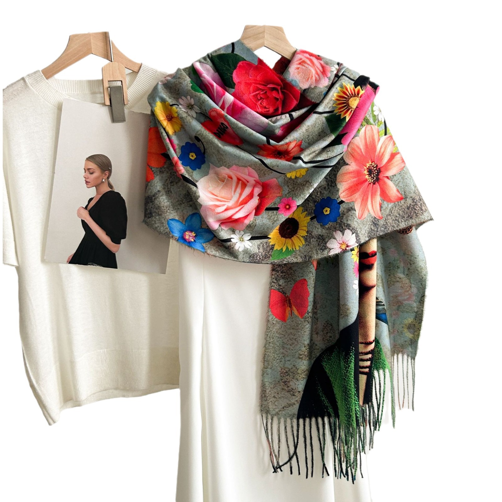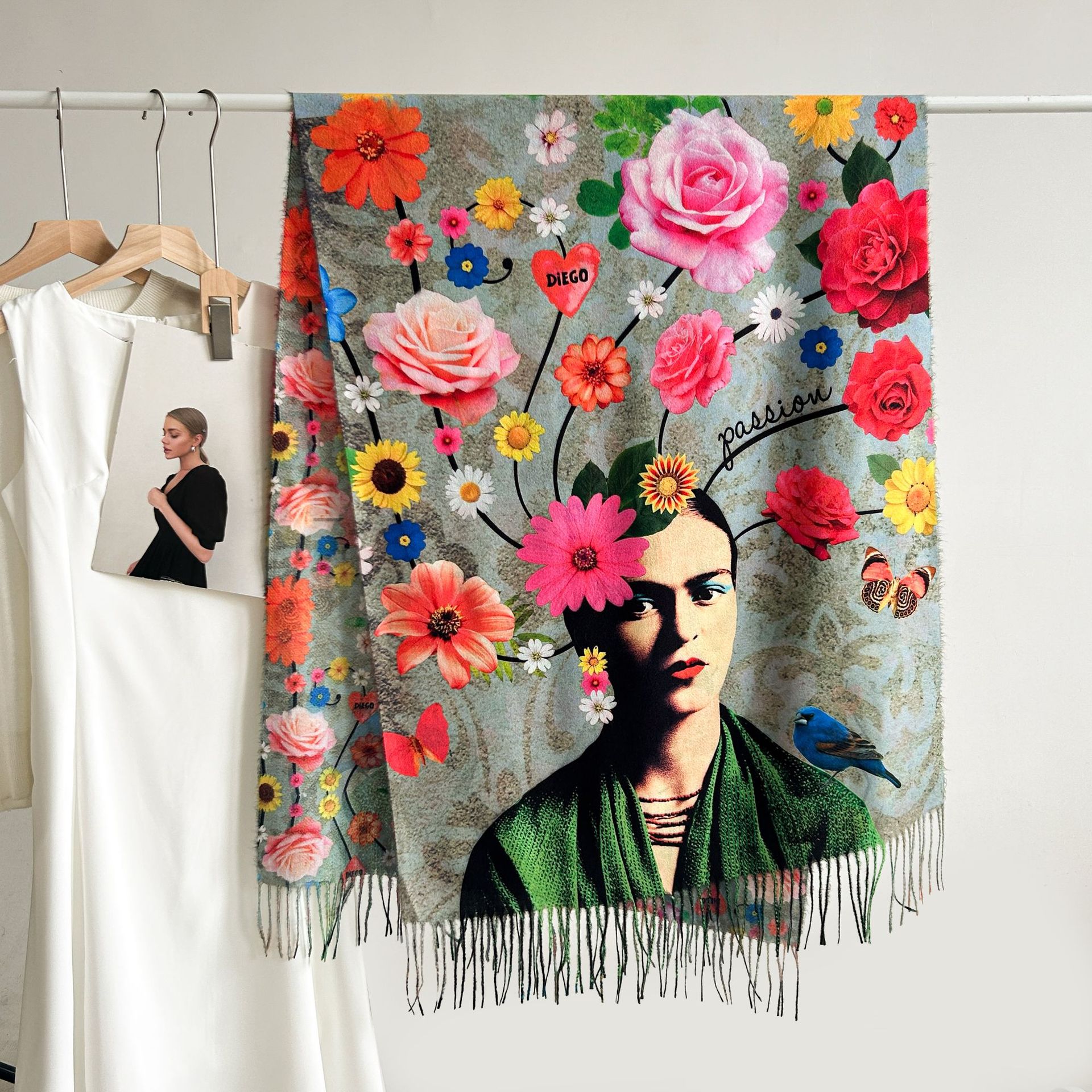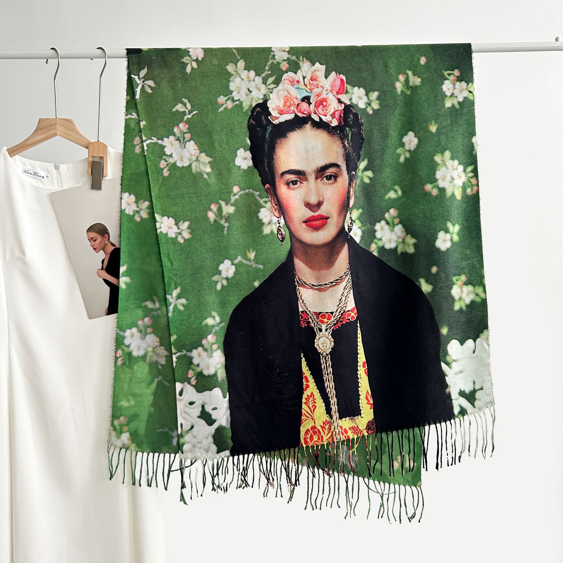 클래식 유화 스카프 프리다 모조 캐시미어 디지털 프린트 숄 여성용 해외판 스카프