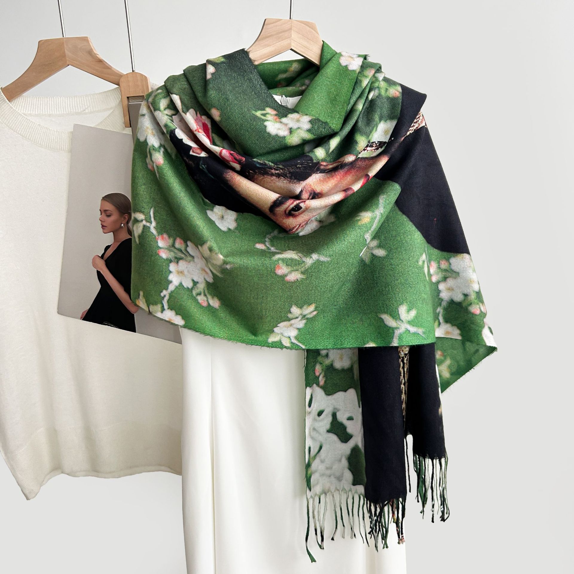 클래식 유화 스카프 프리다 모조 캐시미어 디지털 프린트 숄 여성용 해외판 스카프스토어 가기