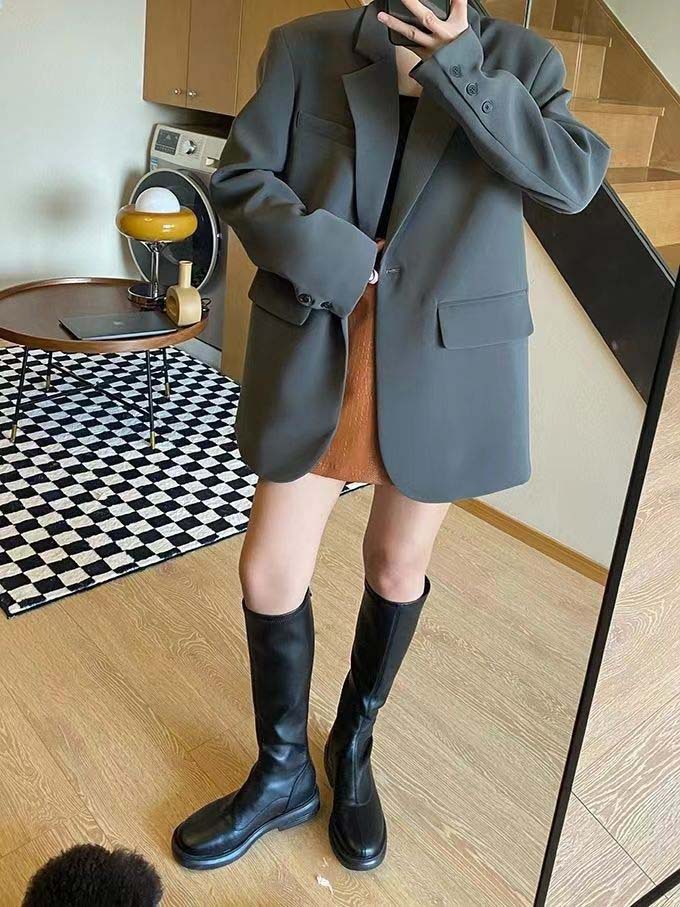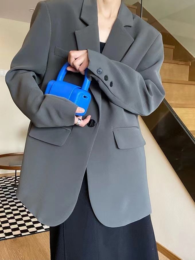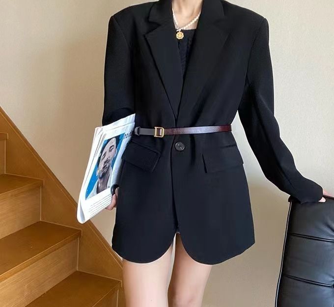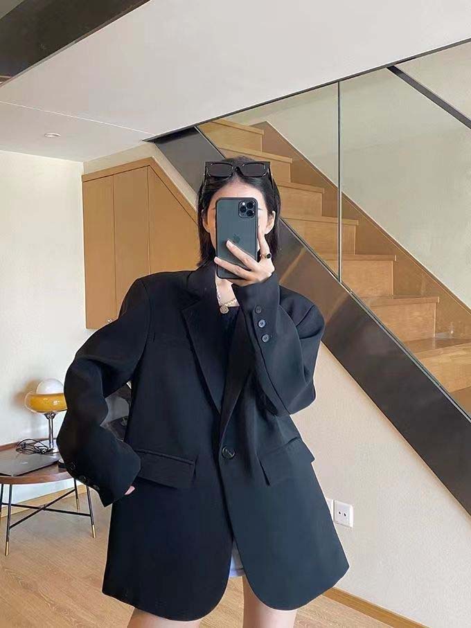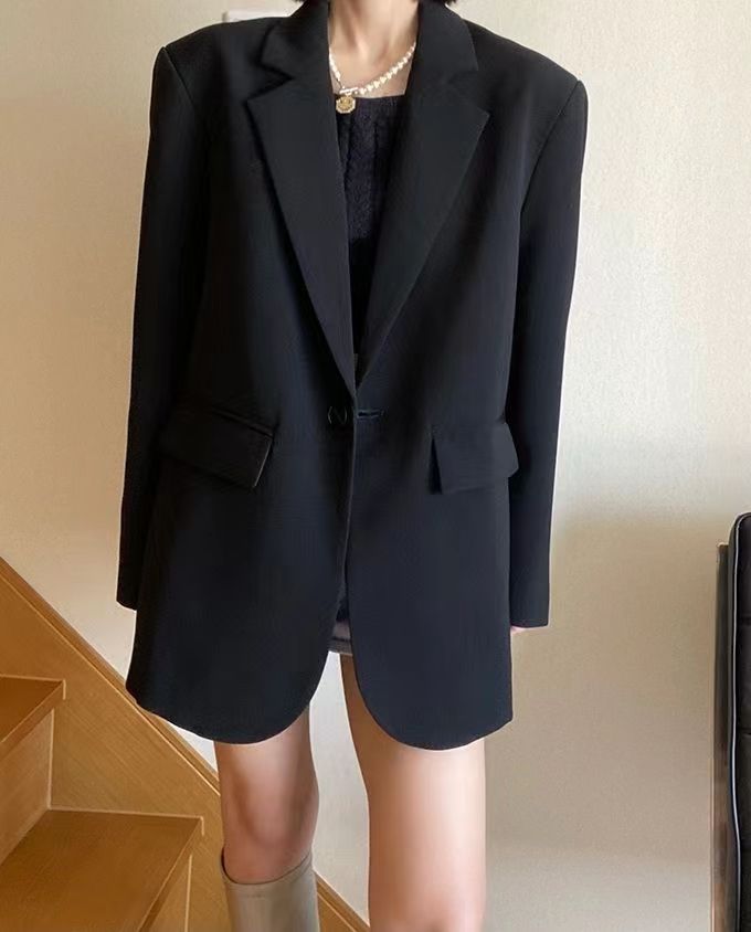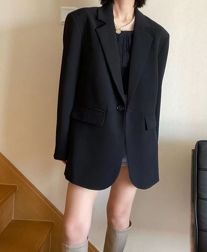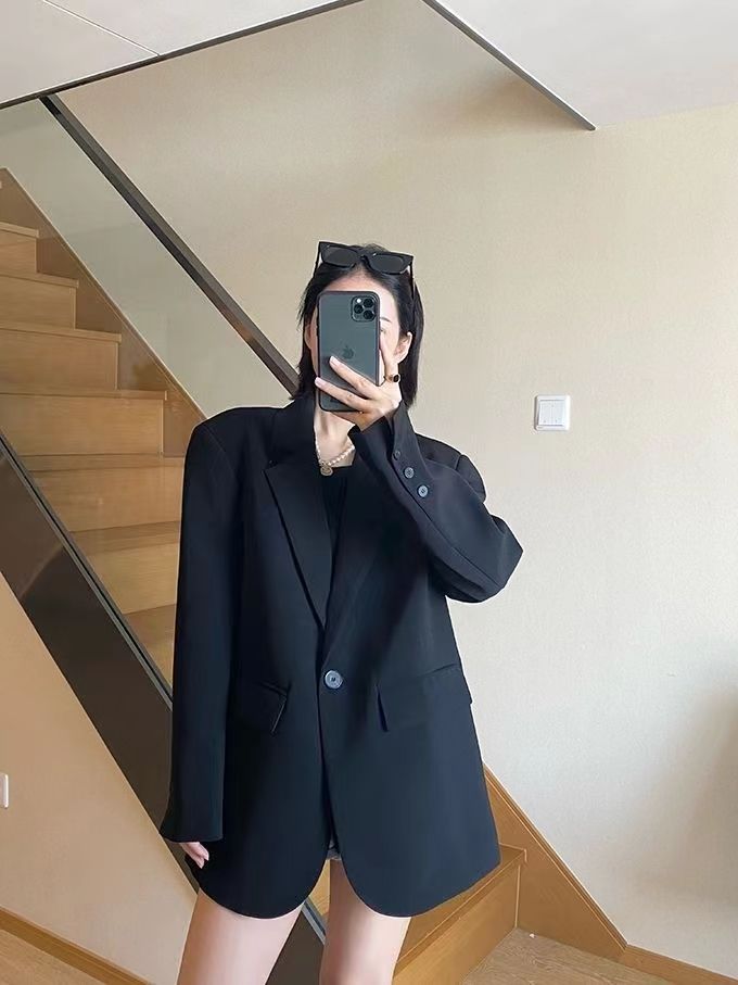 블랙 블레이저, 여성스러운 디자인, 한국 스타일 슈트, 루즈하고 캐주얼한 슬리밍 탑, 봄 가을 작은 슈트스토어 가기