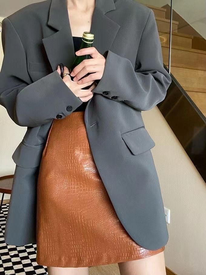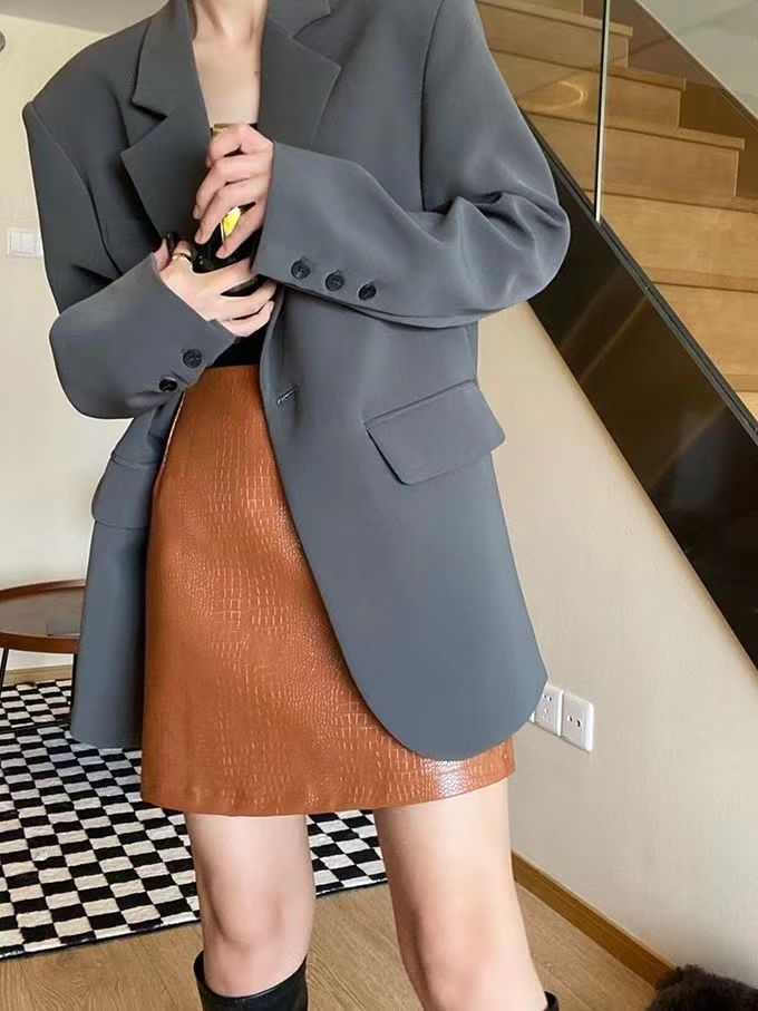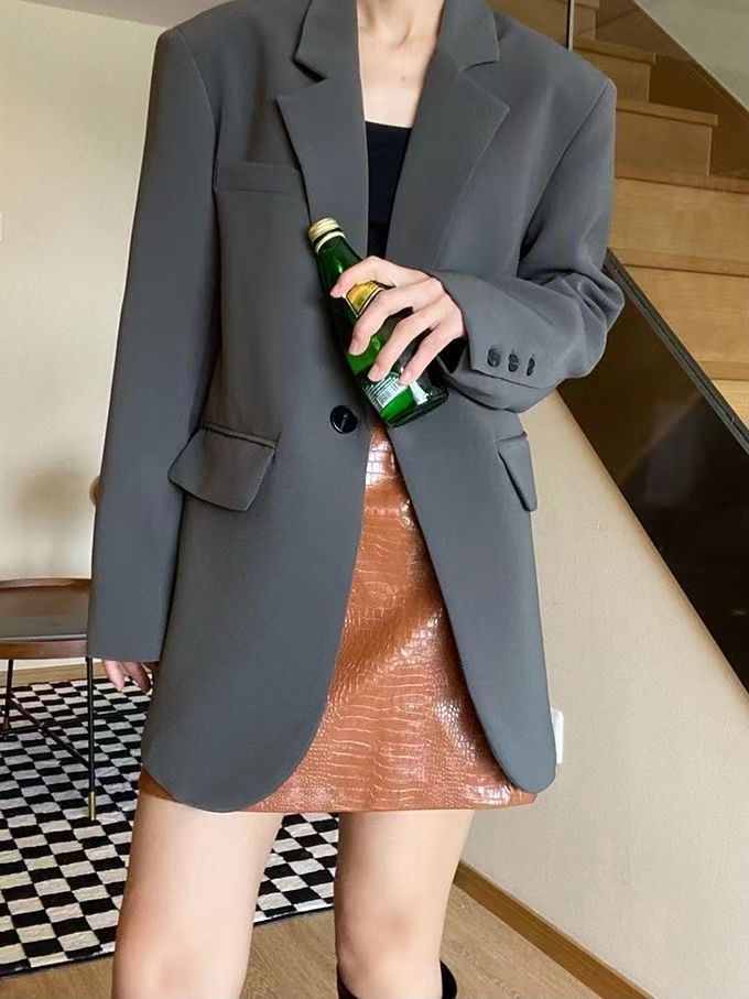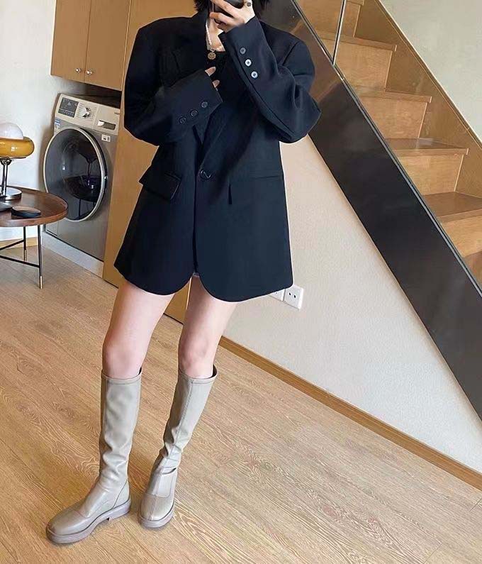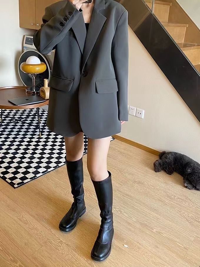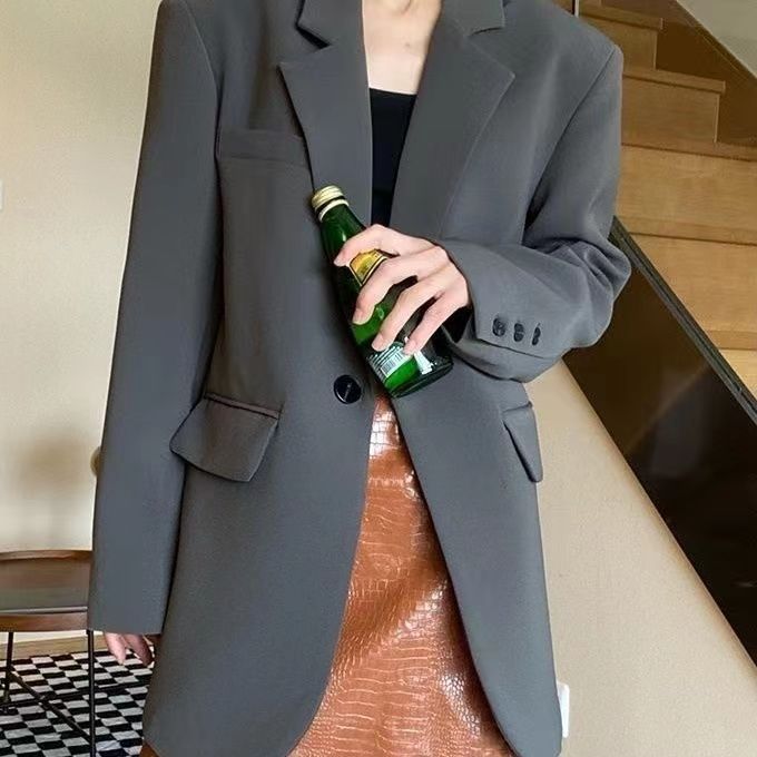 블랙 블레이저, 여성스러운 디자인, 한국 스타일 슈트, 루즈하고 캐주얼한 슬리밍 탑, 봄 가을 작은 슈트스토어 가기