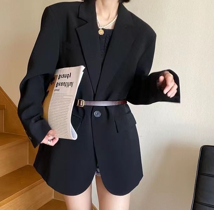 블랙 블레이저, 여성스러운 디자인, 한국 스타일 슈트, 루즈하고 캐주얼한 슬리밍 탑, 봄 가을 작은 슈트
