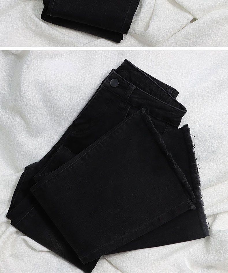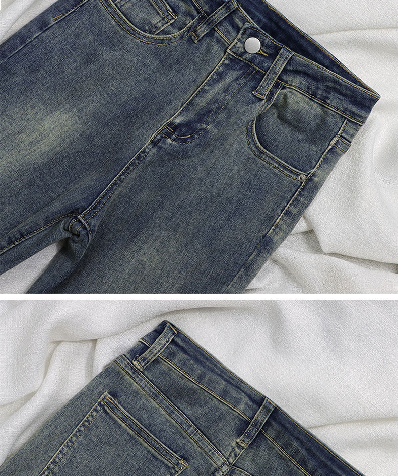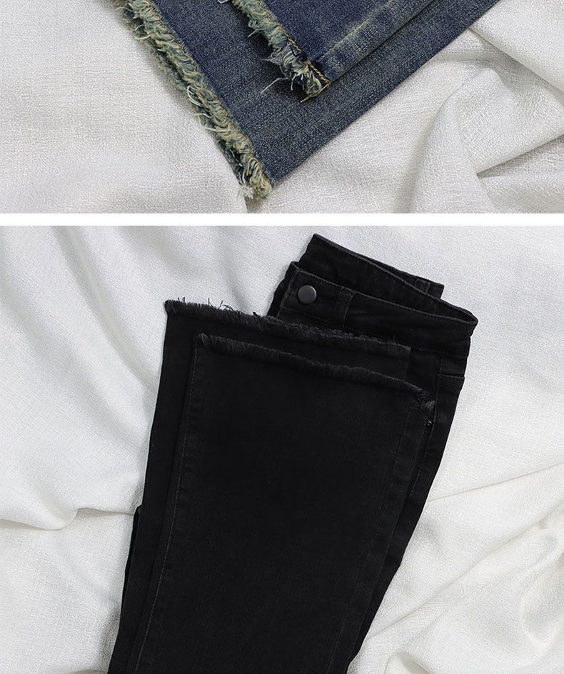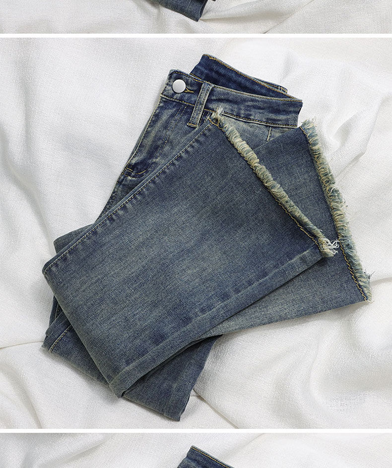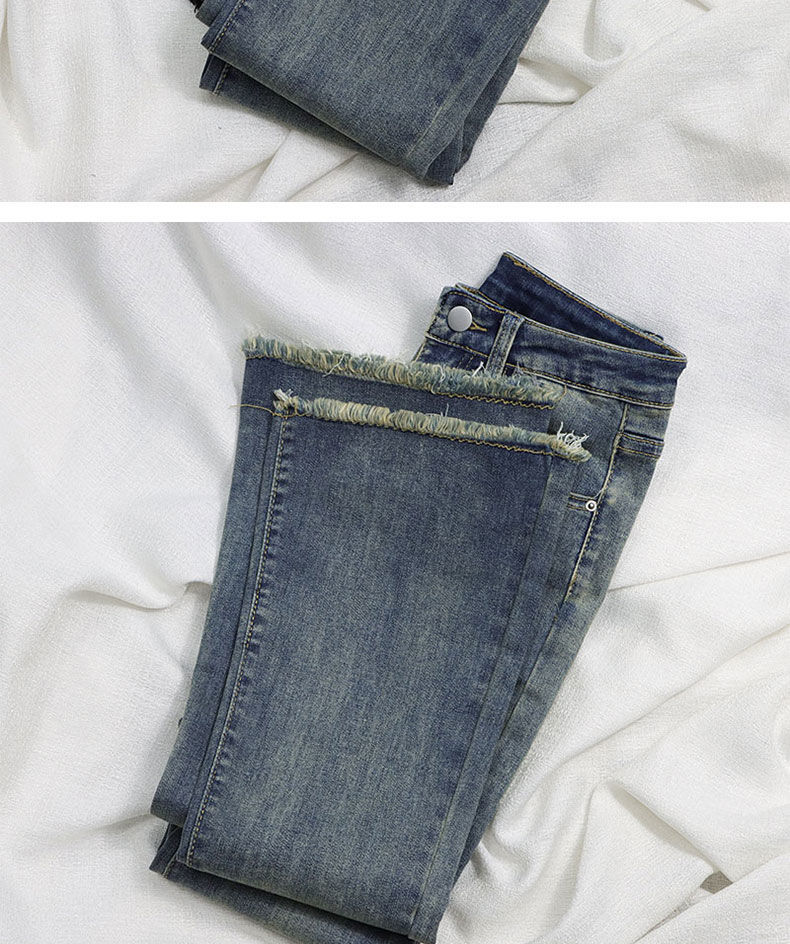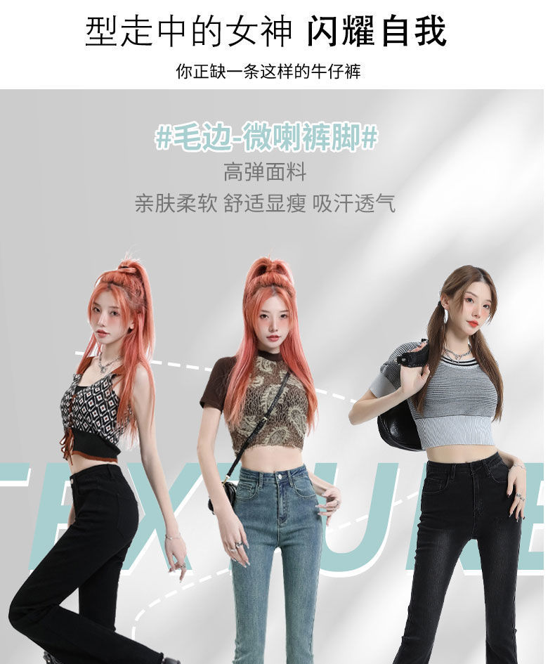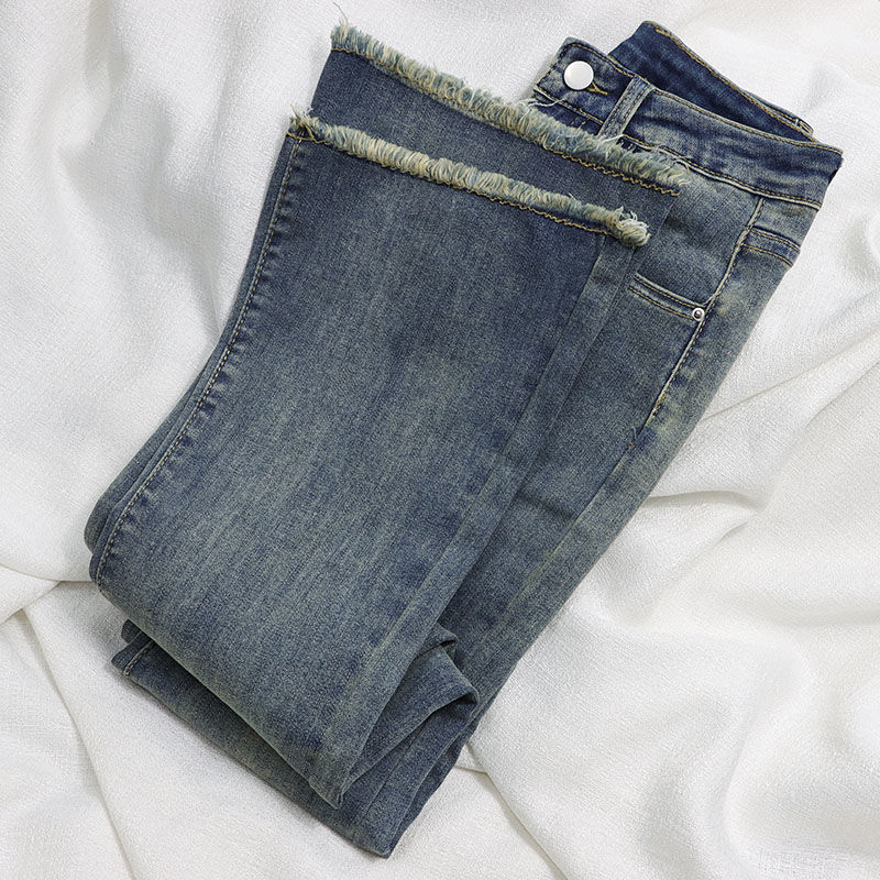 2024 봄과 가을 새로운 마이크로 라 청바지 여성의 높은 허리 슬림 9 포인트 작은 배 모양의 피겨 혼 바지스토어 가기